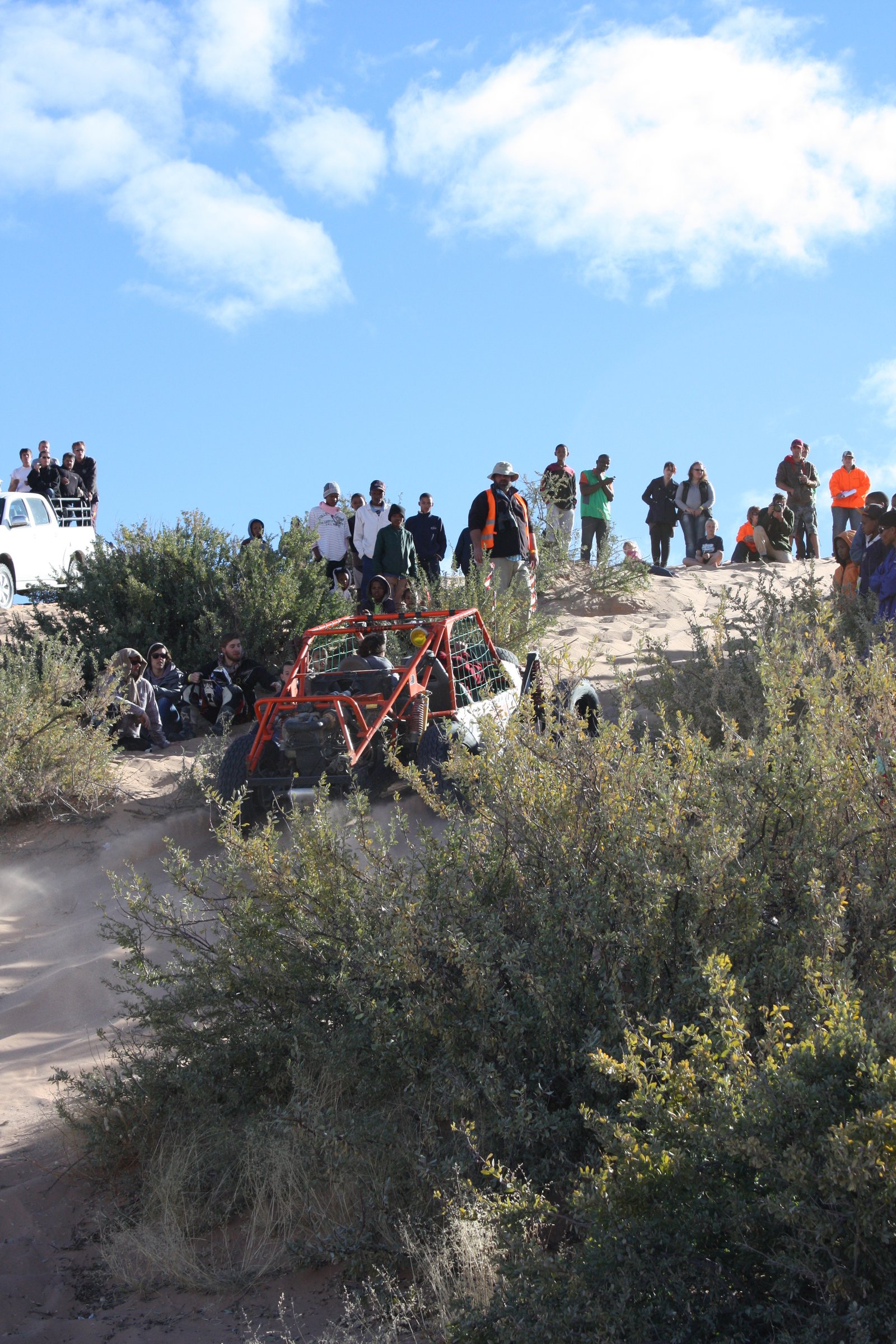 The Rally was a not exactly the scale of motor show that would attract the attention of Jeremy Clarkson, but it was a fun couple of days watching the amateur motor enthusiasts compete with their tuned-up dune buggies, quad-bikes and motor-cross bikes. Day one was a long endurance rally around the pan area. Day two was described as the ‘fun day’ with shorter rally routes, some drag-races across the pan, and some dune-climbing competitions. Spectators could watch from anywhere they wanted – the health and safety budget didn’t extend to providing barriers between the racing and the public.