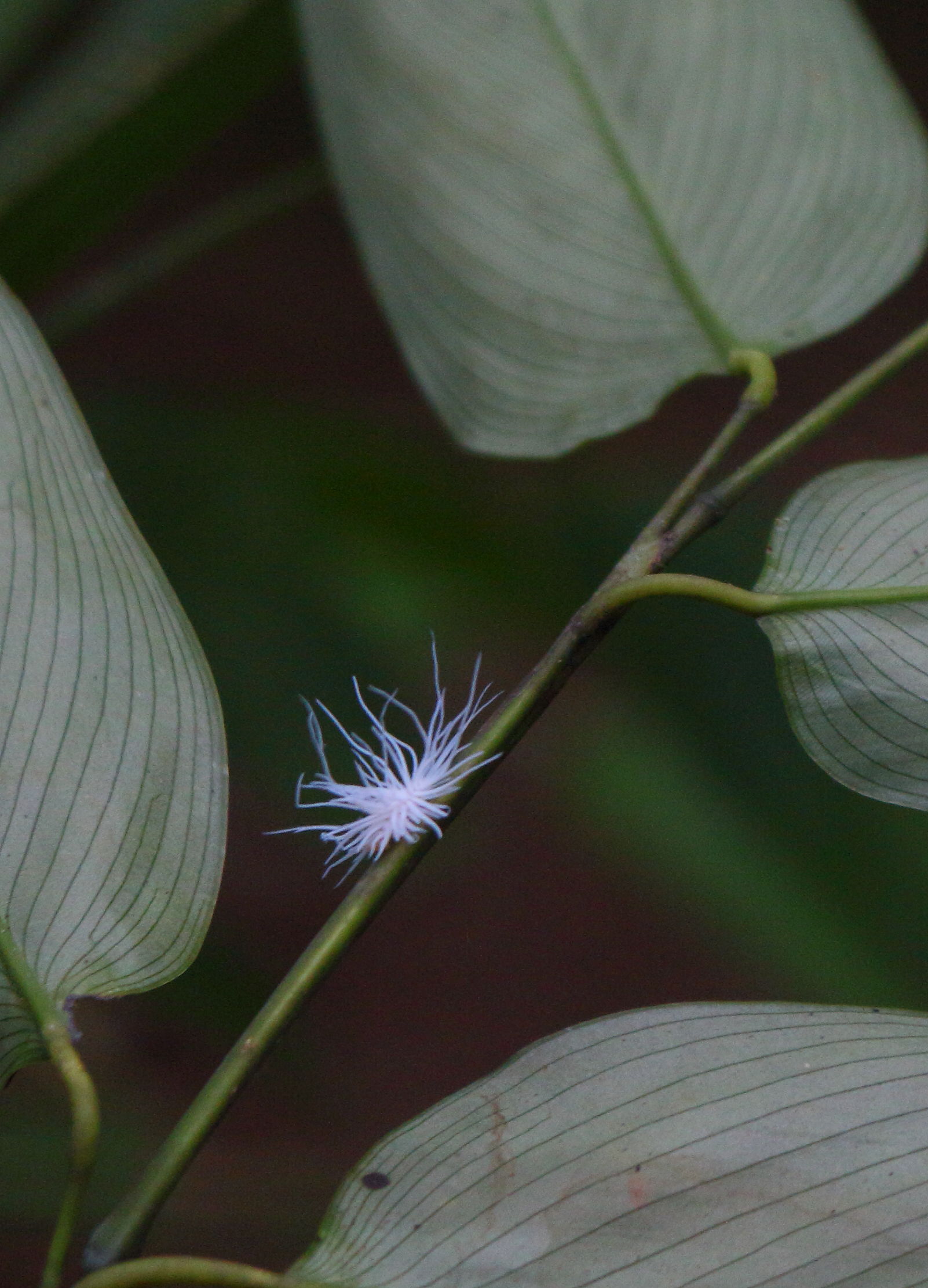 - The white fluff is an insect, crawling up the branch