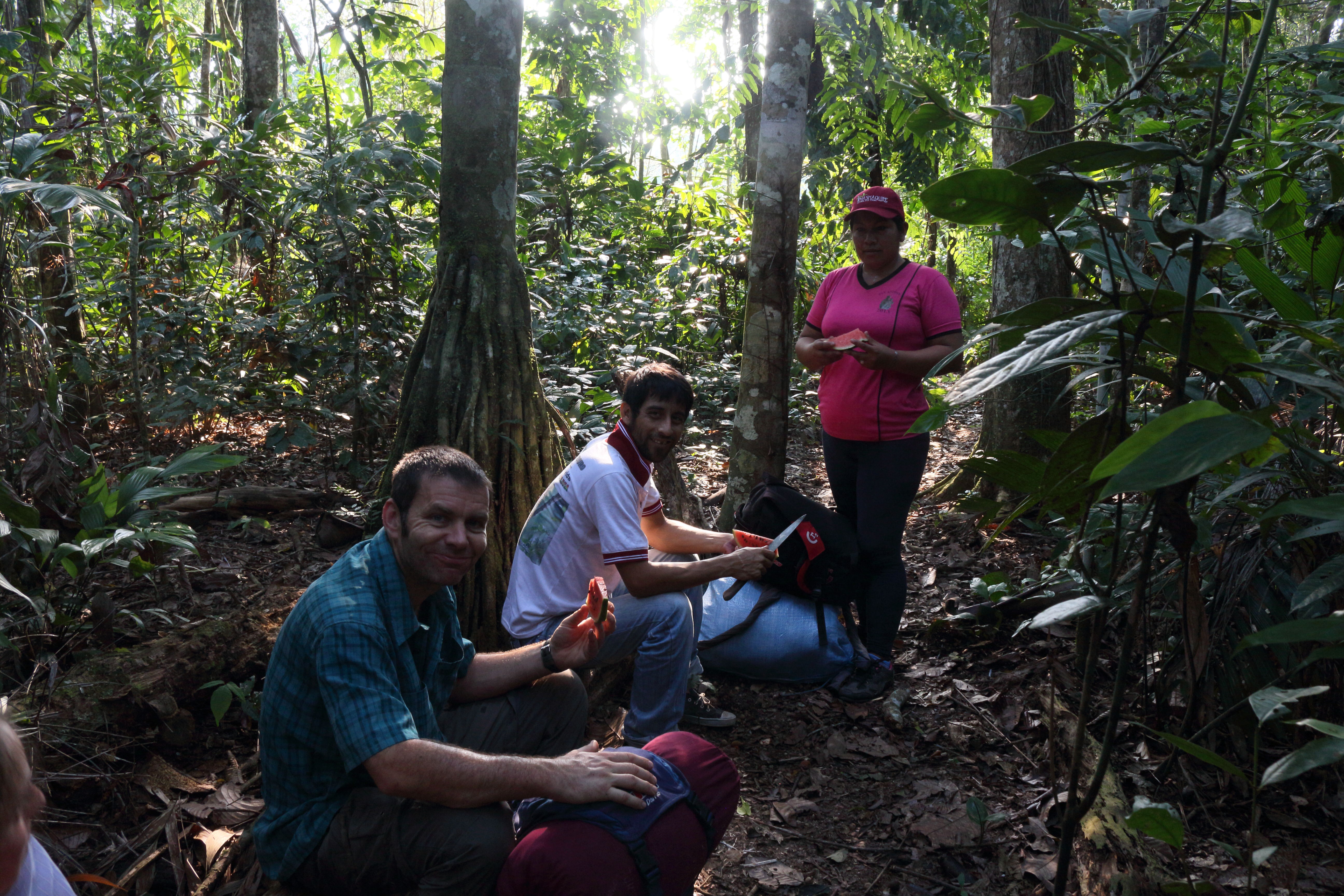 Our cook, Leni hiked dutifully behind us all the way around the trek and did a great job catering for us in very basic field-kitchen conditions. Her food was always good and plenty of it. Both Darwin and Leni really took care of us, doing everything they could to make things as comfortable and enjoyable for us as possible. The only caveat that we would add for anyone thinking of doing this trip is to consider the season: now is the driest time of the year. It’s quite humid, but the jungle floor is mostly firm and quite dry. We had only a couple of light showers of rain and the mosquitoes were (just about) tolerable. The wet season would be a very different story, requiring wellies, a waterproof poncho and a lot of extra mossie repellent! 🙂
