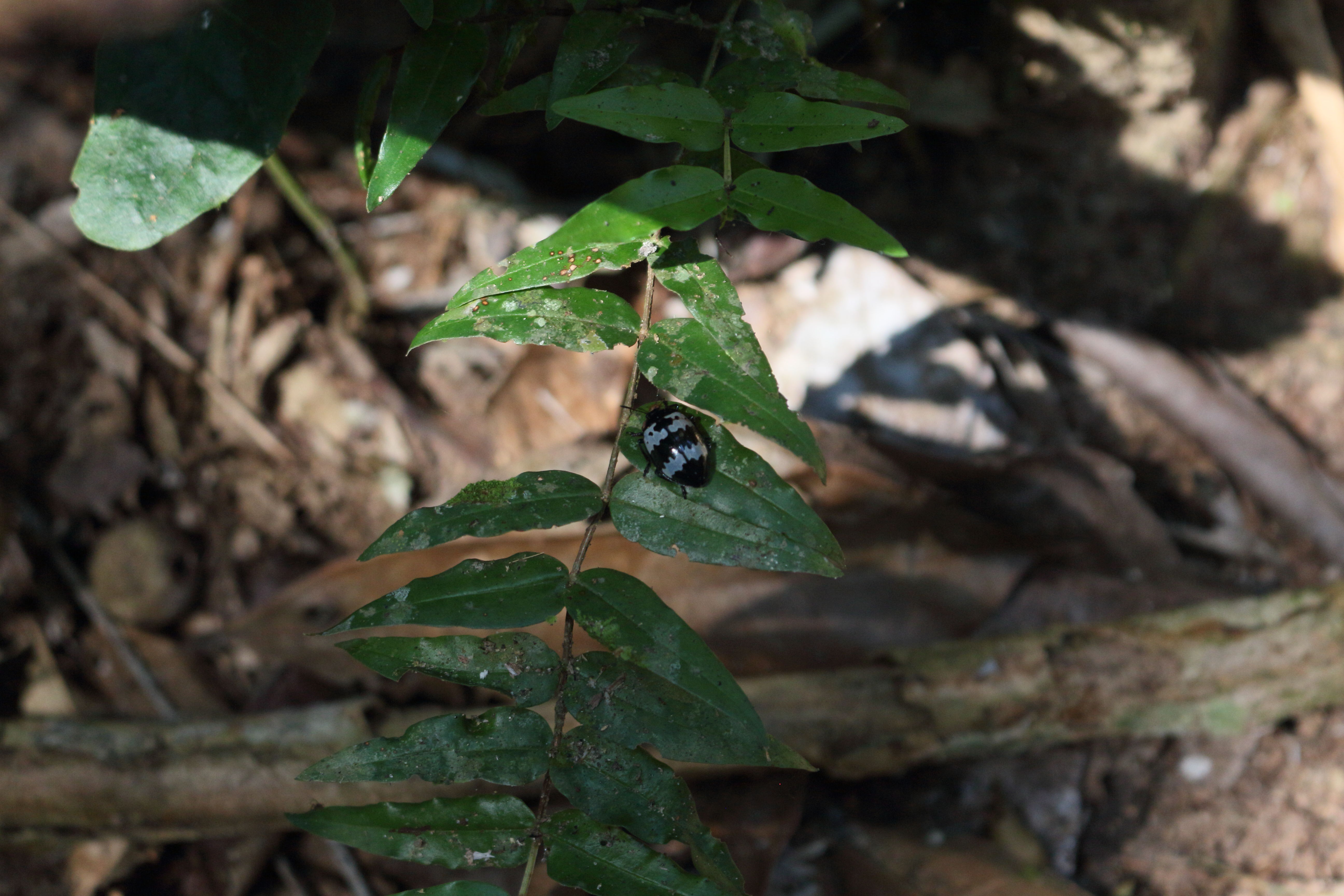 Twice whilst walking we could smell and hear wild pigs snuffling in the undergrowth not far away. We dropped our rucksacks in a pile and diverted from our course to look for them. Darwin moved expertly and almost silently through the bush towards them, but our comedy-like lack of stealth crashing clumsily through the jungle-floor debris behind him caused the pigs to scarper before we could get a proper sight of them. Not a wholly successful exercise, but we did catch a glimpse as scores of them scuttled off into the bush grunting, and it was fun trying to track them down.