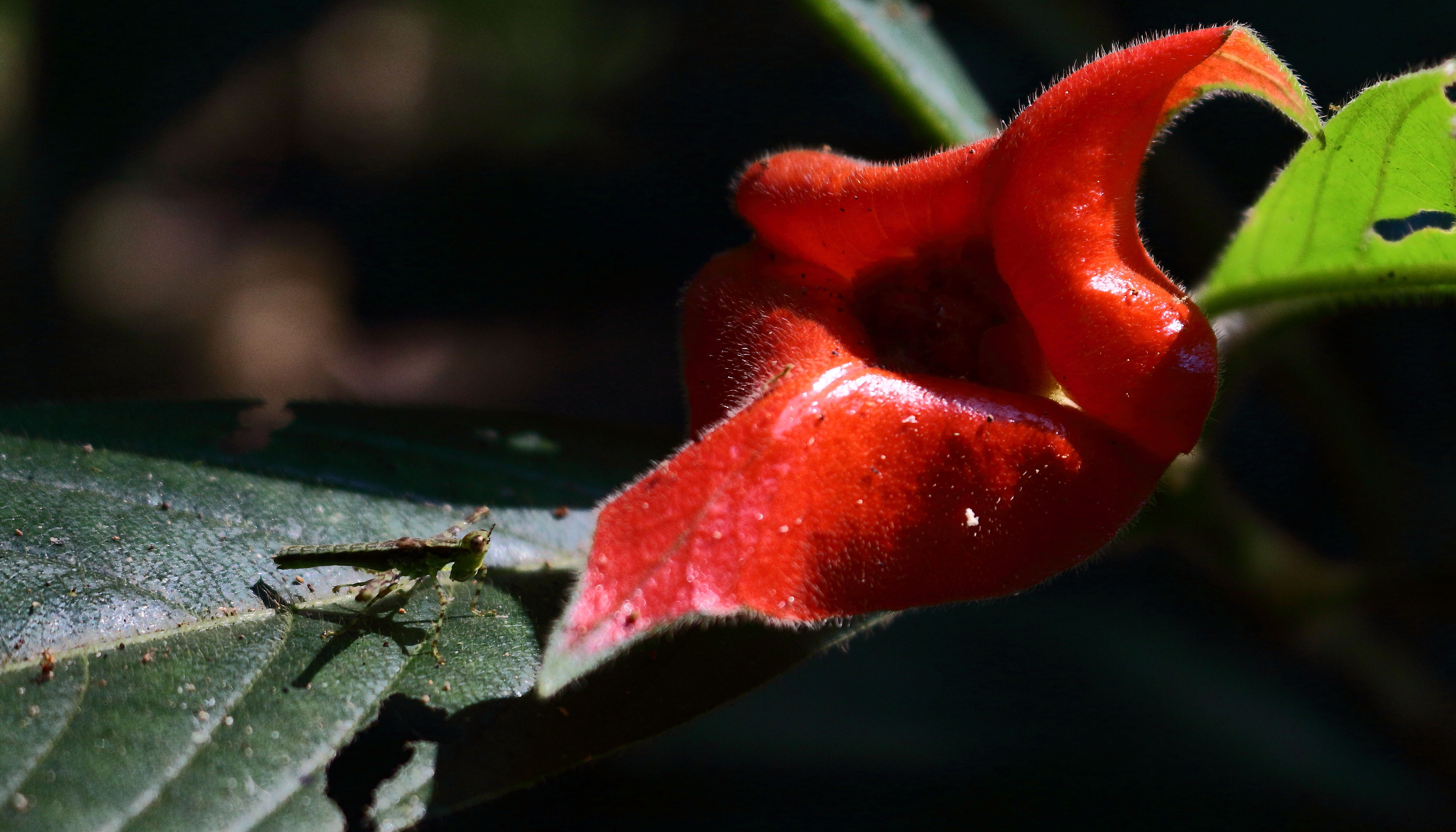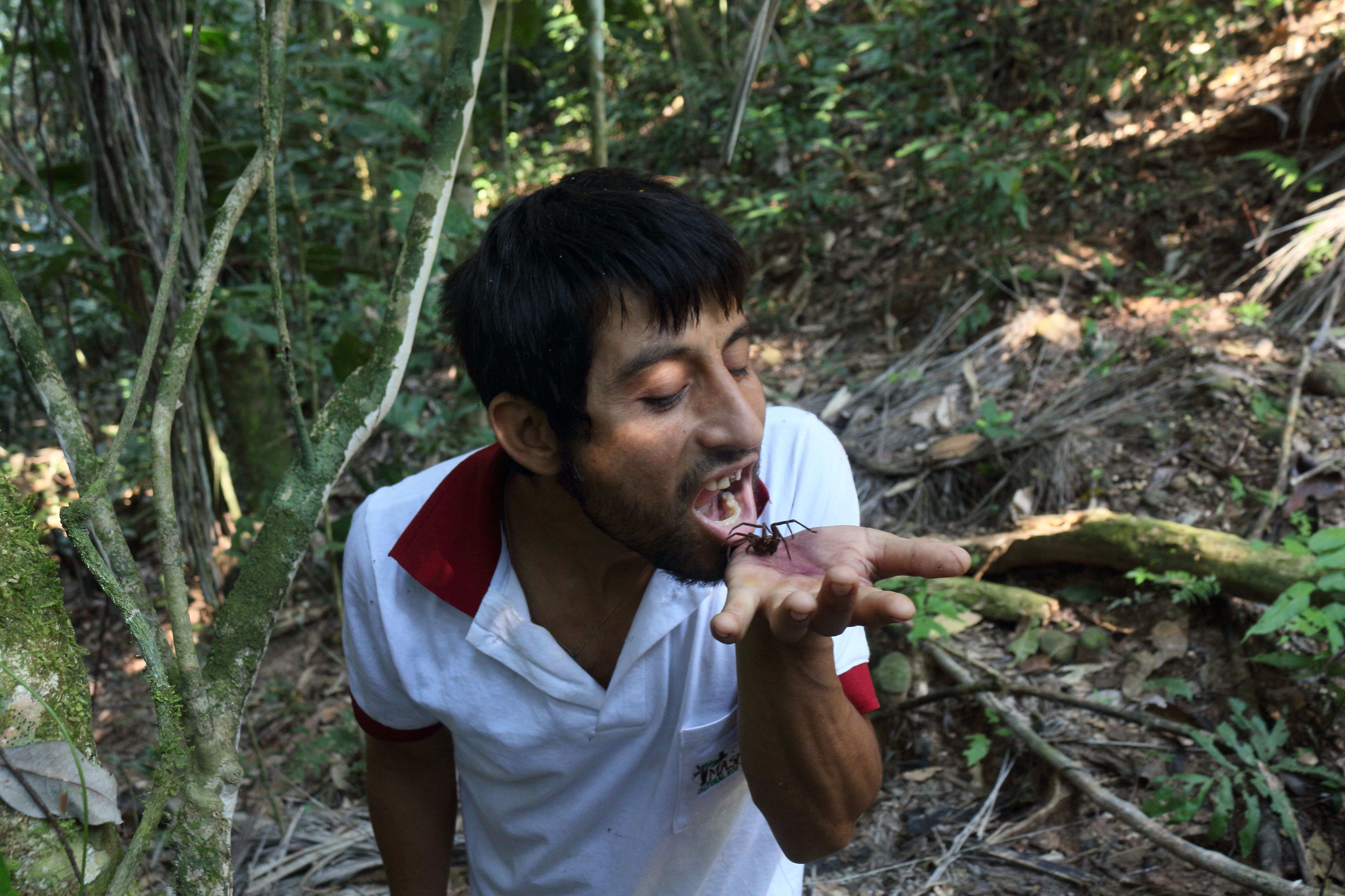 We stopped for frequent breaks where Darwin explained about the insects, the plants and their uses by the indigenous people. Marcus was even brave enough to sample some of the live ants and termites (the witchetty-grub scene from Crocodile Dundee movie sprang to my mind 🙂 ). On the way we also collected leaves, tree bark and berries to make traditional teas and fruit juices when we arrived at the camps. Of wildlife, we saw many brightly coloured birds, butterflies, insects, spiders (tarantulas!) and occasionally the odd monkey swinging above us in the canopy (all of which, incidentally, pose a frustrating challenge to photograph in the jungle canopy!) but as we had been warned, we heard far more animals than we saw. These sounds are particularly exciting at dawn, lying under the mosquito net watching the sky lighten above the tree-tops and listening to the rainforest come to life.
