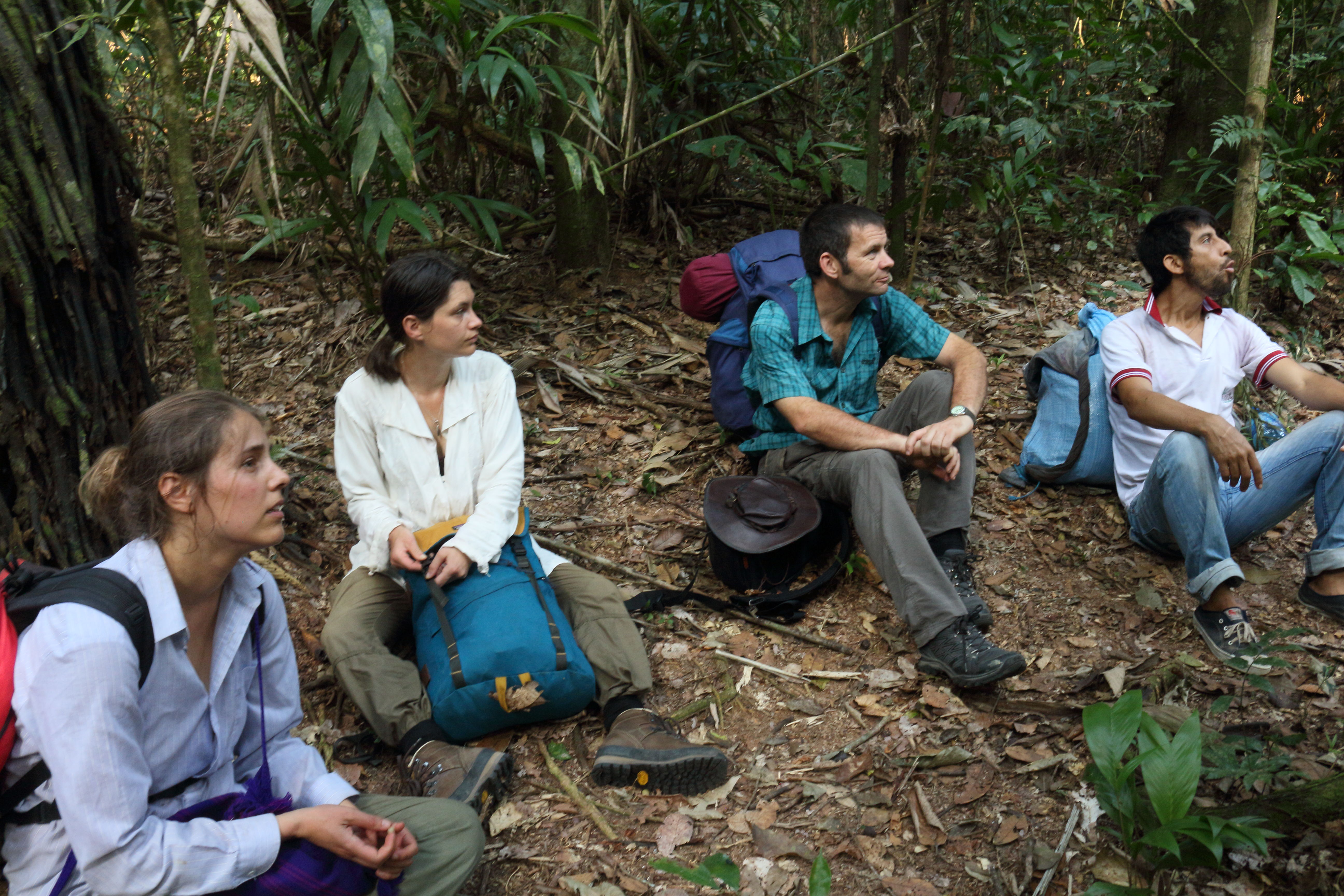 The distances that we covered between camps were not huge, but carrying our stuff in the heat and humidity over sometimes rough jungle paths, climbing over huge fallen trees and crossing streams, it wasn’t easy going. Sometimes we walked for a few hours through dense trees and Tarzan vines, then suddenly reached an open point on a hill-top to see the most amazing view of jungle into the distance, with parrots and macaws swooping above the tree-top canopy below us.