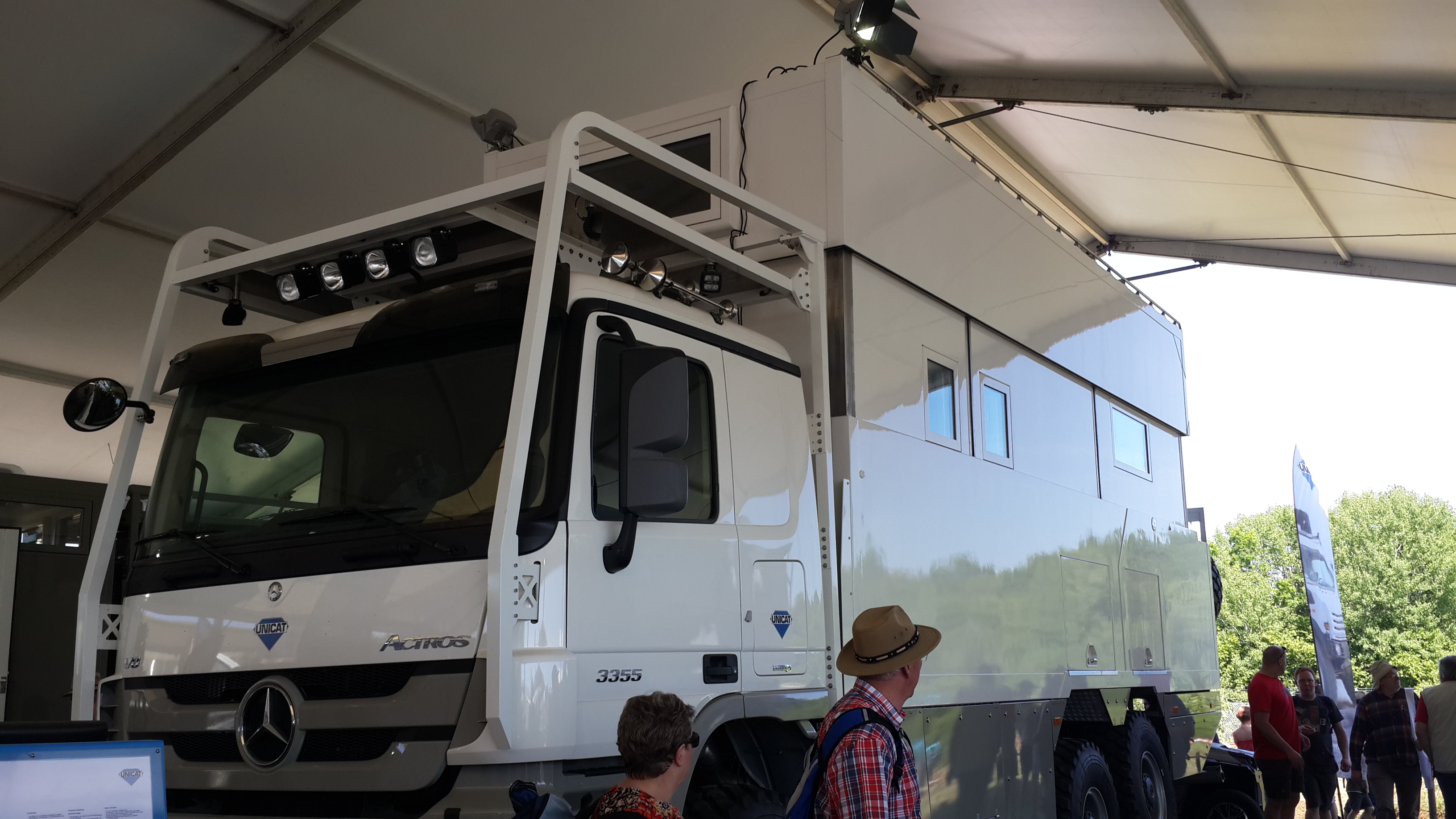 We had a great four days both at the show and at the very sociable camp-ground populated with like-minded overlanders. The weather was fabulous and we made lots of new friends. First we met up with our friends Peter & Heike (drivers of a Cuthbert sibling truck, the original Iveco Daily 4×4 camper-truck from Bocklet), then Roger & Sue from the Silk Route Club (Sue freshly arrived from a stupendous overland cycle from Cairo to Cape Town – big respect!). The next day Darren and Clare from Bimobil UK parked up next to us and proved to be a poor influence on our alcohol consumption over the next 3 days! On the Friday evening, relaxing with a beer outside Cuthbert, a friendly voice came from behind us: “Allo… Markuus?” Some very nice Cuthbert fans from France, Co and Eric have recently bought a camper-truck similar to Cuthbert for a forthcoming trip around Africa and been following our travel blog over the last year. We were very pleased to meet them and have arranged to visit them in Reims later this summer. Very sociable this overlanding stuff!! 🙂