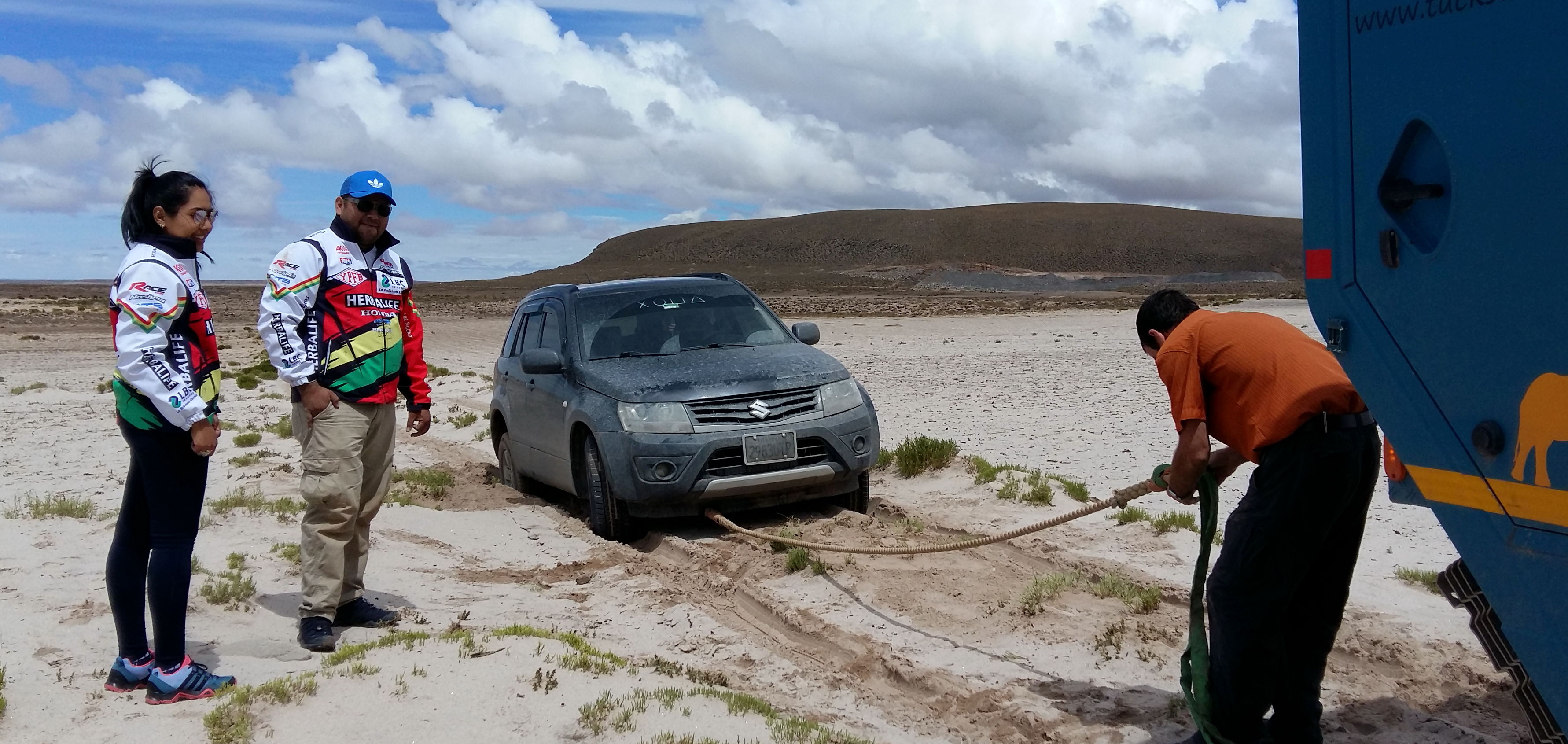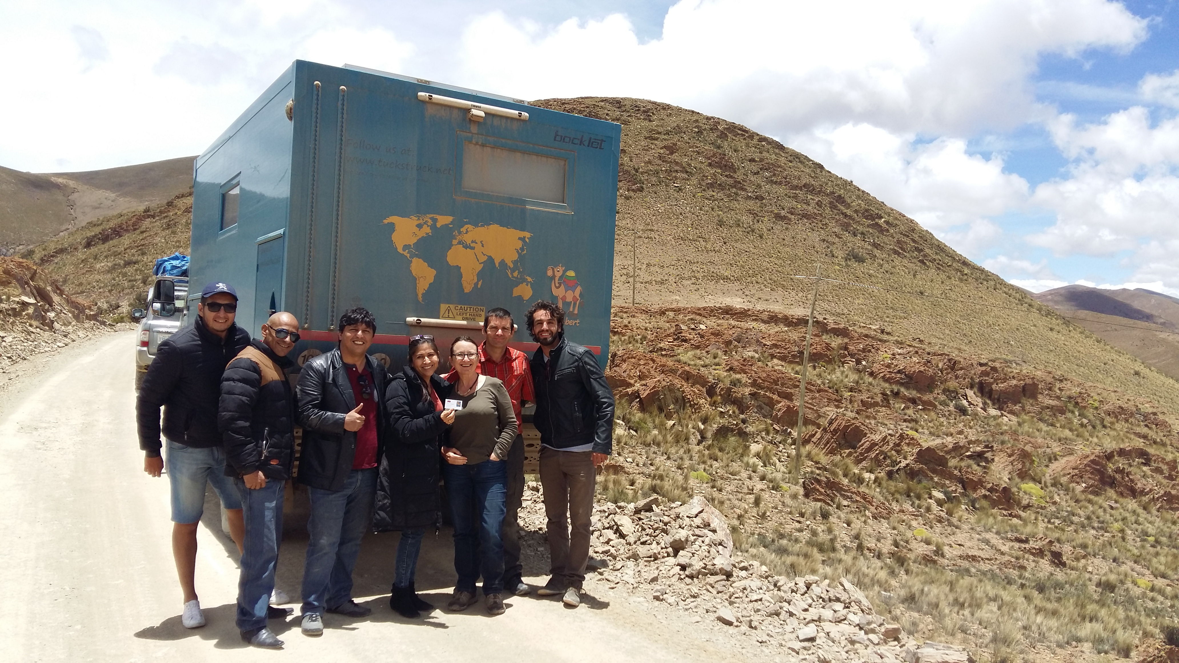 Anyway… all that is just a bit of a lead-in to the real story of the day… it turns out that these stranded souls are bona-fide, big-time, Bolivan television celebrities! They are the cast of Bolivia’s most popular prime-time t.v. sit-com ‘Familia Los Serrano’, describing themselves as Bolivia’s version of ‘Friends’. The creator, writer, director and lead actress Jenni Serrano is there with her real-life husband, her on-screen husband and several cast members. They’re on-tour with a series of live shows around Bolivia. Apparently it’s not often that they go unrecognised in Bolivia and to prove their credentials to us ‘johnny foreigners’, they eagerly pull-our their iPads to show us recordings of their TV programmes and their live stage show. They’re lovely people and we spend a while chatting, eating tamales and swapping family stories before heading on our way. Later when we reach the land of internet-connectivity, an enquiry with Mr Google confirms their story and we watch our ‘rescuees’ in action on a few You-Tube clips. Oh we’re so proud of Cuthbert the Celebrity Rescuer! 🙂