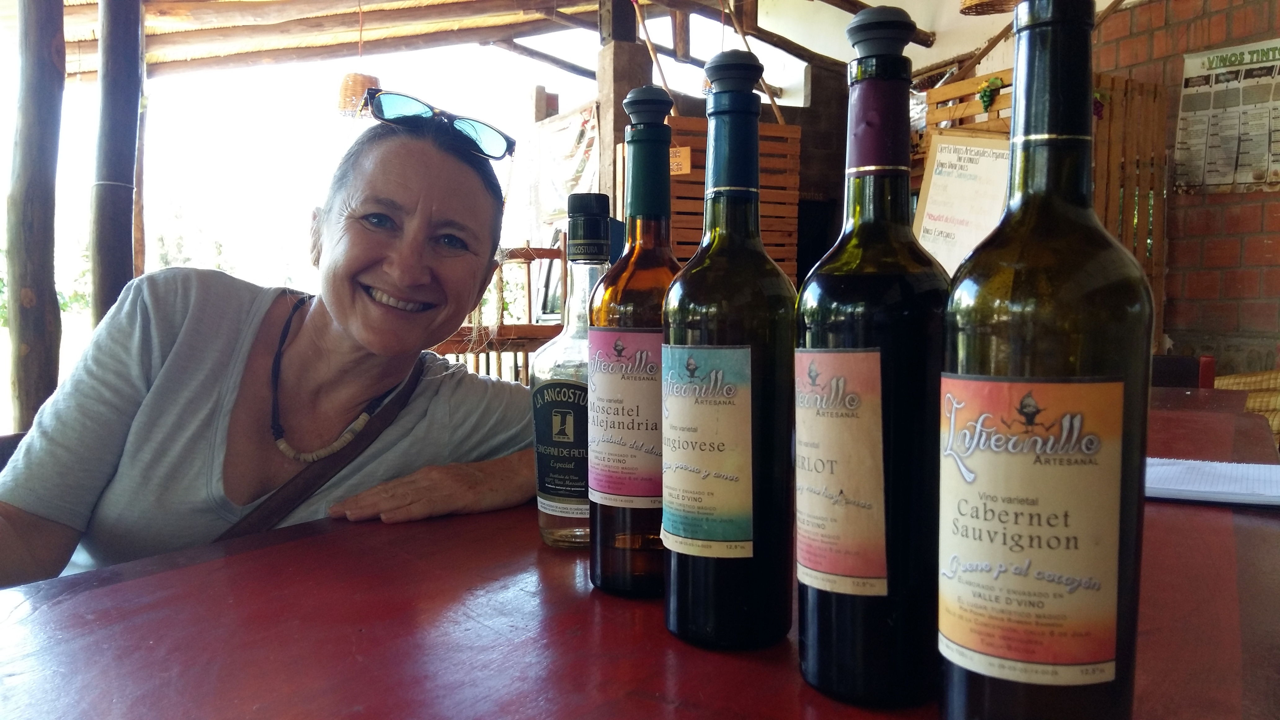 At winery No.1 Casa Vieja we test our first local ‘artesan’ wines… hmmm… rather sweet. And the ‘dry’ that we ask for is a bit… shall we say… ‘sharp’. Nevertheless, we have lovely traditional local Sunday lunch of roast suckling pig and move on to winery No.2 Casa de la Abuela’. Okay… so they seem to like their sweet reds ‘round here. Not exactly to our taste, they’re almost port-like in their syrupy sweetness, but they go down well with the locals who are drinking the stuff, literally, by the jug-load all through the afternoon. Not yet deterred (we can’t give up on ‘Wine Tasting Sunday’ that easily) we decide to give one more winery a try. Our Winery No.3 is Vino D’Valle where Daniel gives us a great tour of the vinyards, explaining in excellent English their processes and ethos of organic wine production. It’s an entertaining afternoon as we are joined by many locals enjoying a Sunday trip out of town. We really have no claim whatsoever to be wine-experts, but even we can spot the local penchant for the sweet. Very few of the regional wines are dry and those which they claim to be dry have a certain sharp ‘edge’ to them. It’s no surprise that Bolivia exports very little of it’s wine production, but for us it is an interesting and entertaining insight into yet another side of Bolivian culture. As a courtesy for the otherwise free tours and tastings, we buy a few bottles of the best plonk we can find. If we chill it well enough in the fridge, we’ll probably find an excuse to drink it at some point 🙂