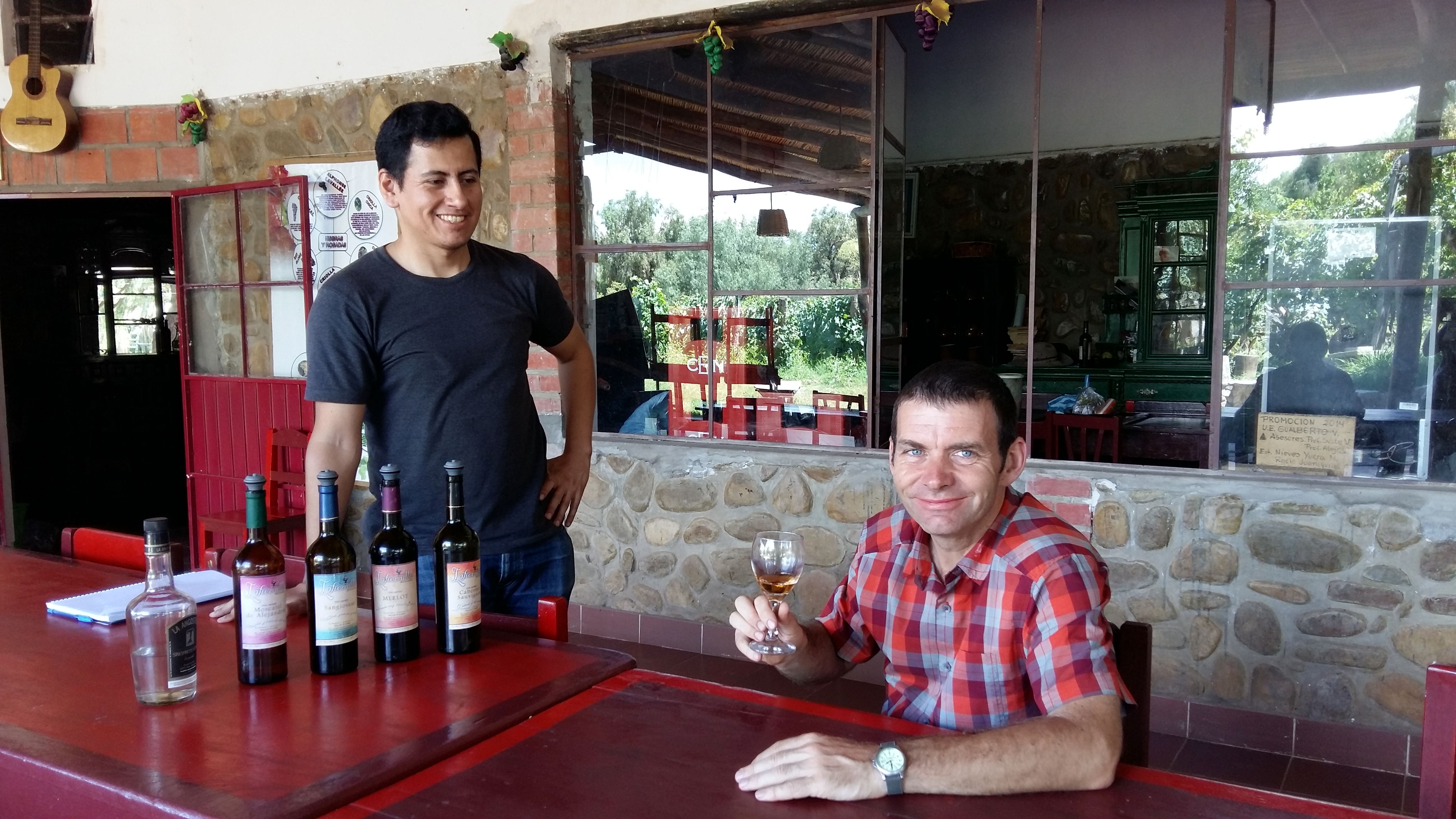 Roughly mid-way across the far south of Bolivia is the town and wine region of Tarija. “Err… Excuse me… did you just say wine region? In Boliva?” Well… admittedly it’s not the most internationally renouned wine region of the world (the quality of the wine is probably one of the main reasons for that!) but it is nevertheless a wine region and at around 2,000m these are amongst the highest vinyards in the world. The area has several large production wineries plus some smaller ‘artesan’ wine makers; the government’s import duties ensure that these are really the only affordable wines available in stores and restaurants across the country. During our time in Bolivia we have found the Aranjuez Terruño to be the most quaffable of the Bolivian plonks available. Unfortunatlely they’re not doing public tours at the moment so we move on to explore the smaller ones.