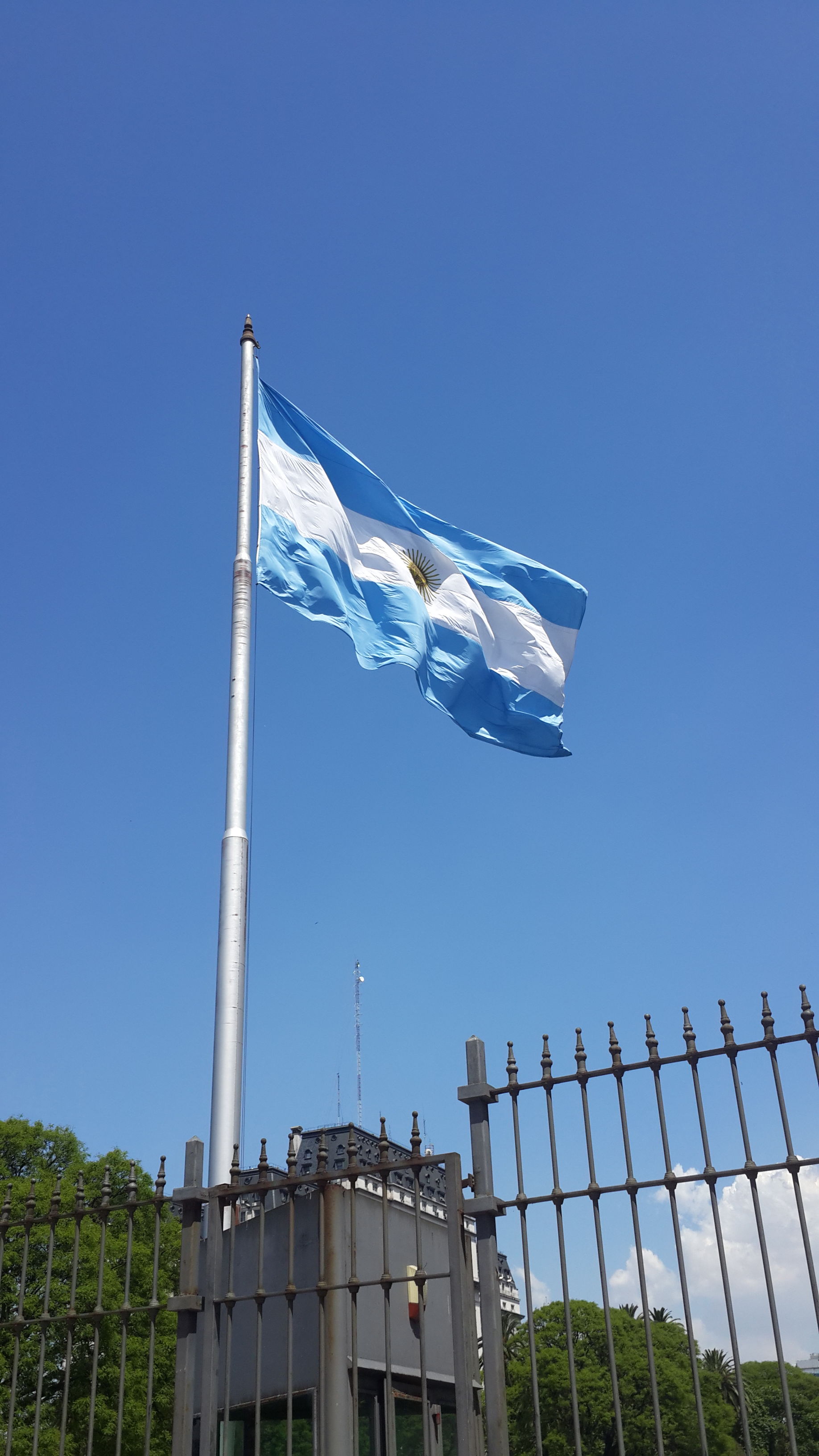 The Casa Rosada now houses the government offices and outside in the Plaza de Mayo the Argentinian flag is raised and lowered at dawn and dusk each day by a ceremonial guard. At dusk we watched the team of soldiers march smartly out for the duty. The whistles blew and as a single soldier marched forward from the ranks to lower the flag, the lone trumpeter sounded. The soldier untied the lanyard and fiddled with it, but it was stuck. The trumpeter sounded again and the soldier juggled with the lines some more – still stuck. Now getting a bit comical, the trumpeter sounded a third time as the soldier continued to struggle with the caught cables. It was no use, it wouldn’t budge. It was all a bit embarrassing for them with scores of tourists stood watching, but the funniest bit was that the soldier, unable to contain his frustration, rather than smartly doing an about-turn and marching to re-join the ranks, threw his hands up in despair, shrugged his shoulders and sauntered in a most un-military fashion back to his colleagues. The flag remained hoisted as they all marched back to barracks. We guess it can happen to anyone 🙂