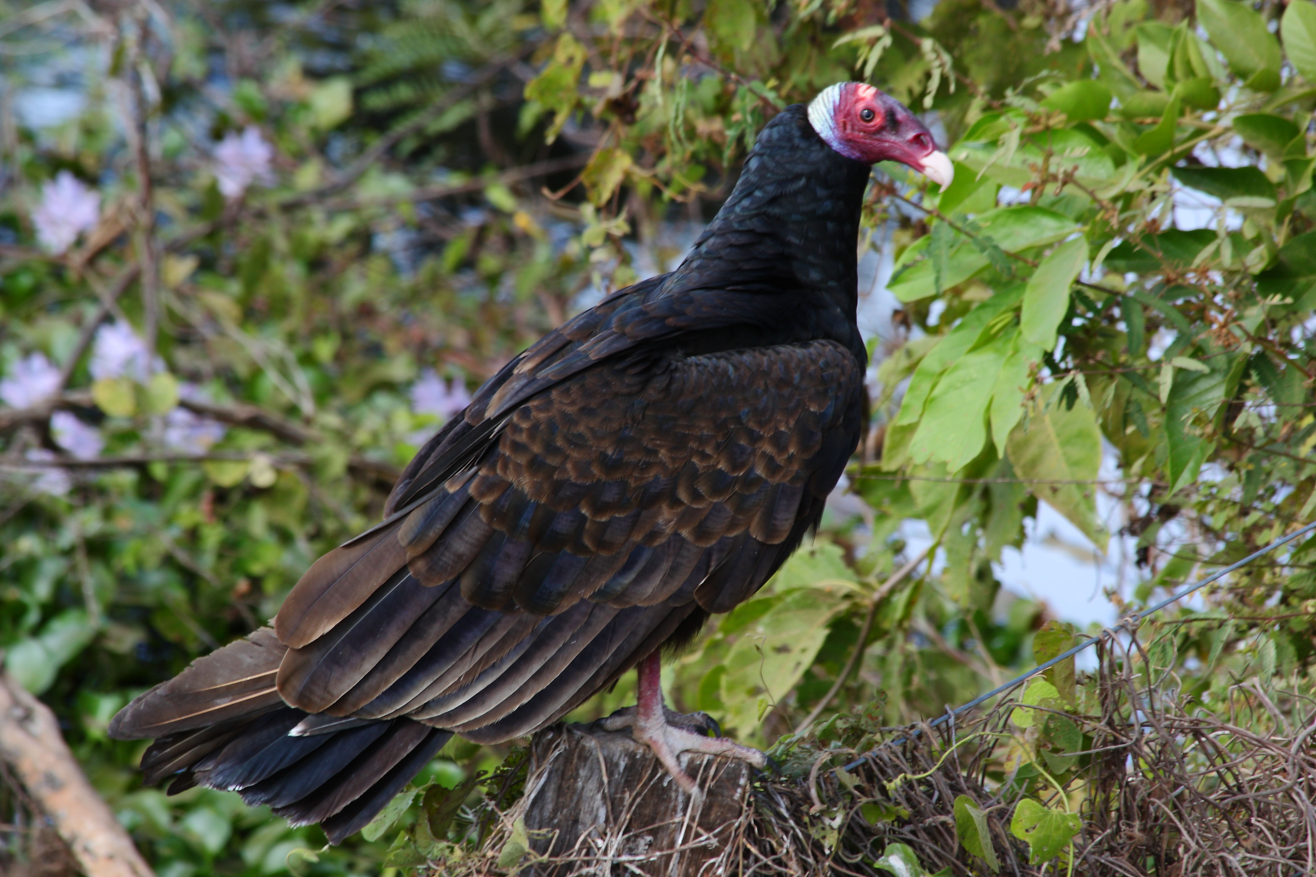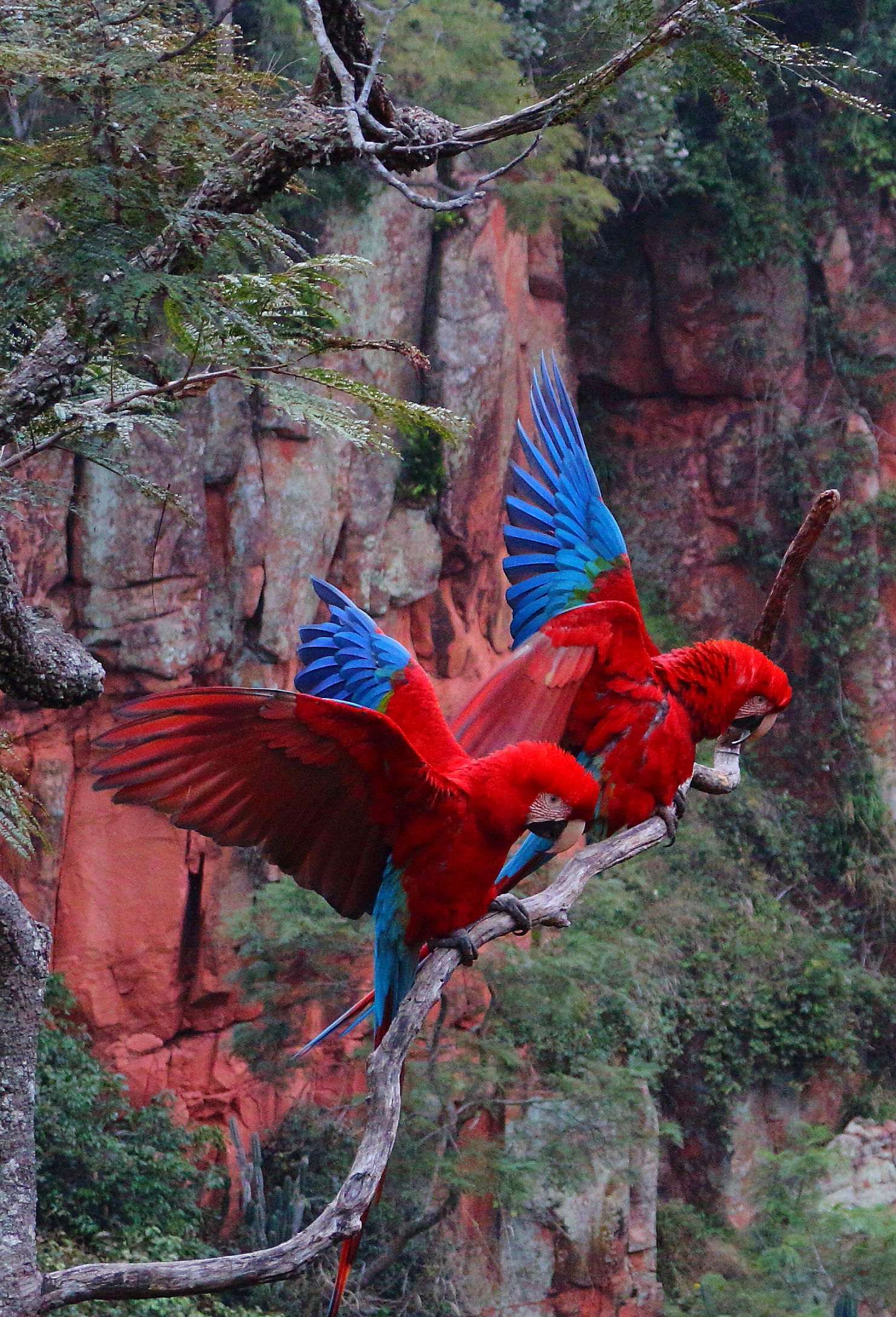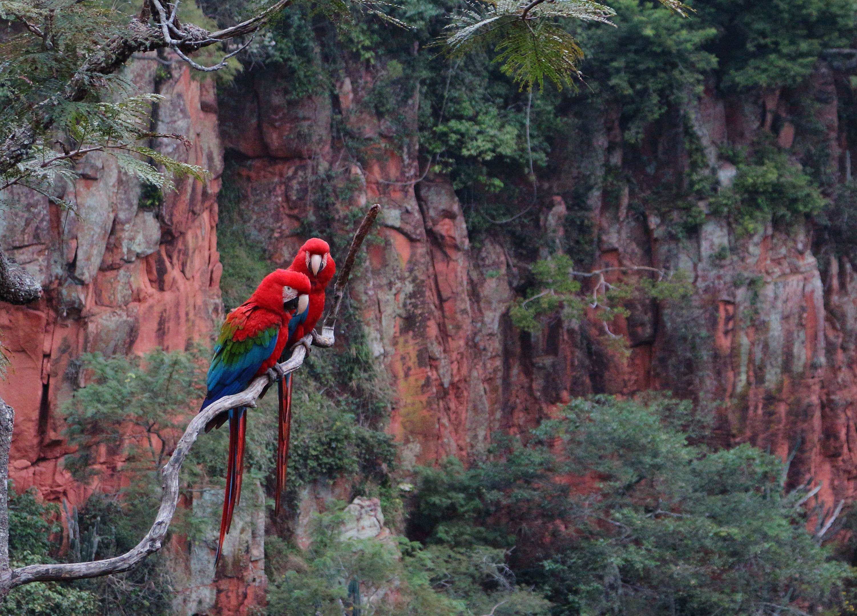 Pig adventure over, we went down the road to visit a huge sink-hole, over 100m deep with a resident colony of parrots and macaws. With their beaks they chip-out holes in the rock-face to build their nests, and the tell-tale sign of a nest location is a substantial dribble of white pooh running down the red cliff-face 😛 ! The birds are stunningly colourful. They pair for life and each couple is so synchronised that when they take flight, they spread their wings and take to the air in perfectly timed coordination. Beautiful.