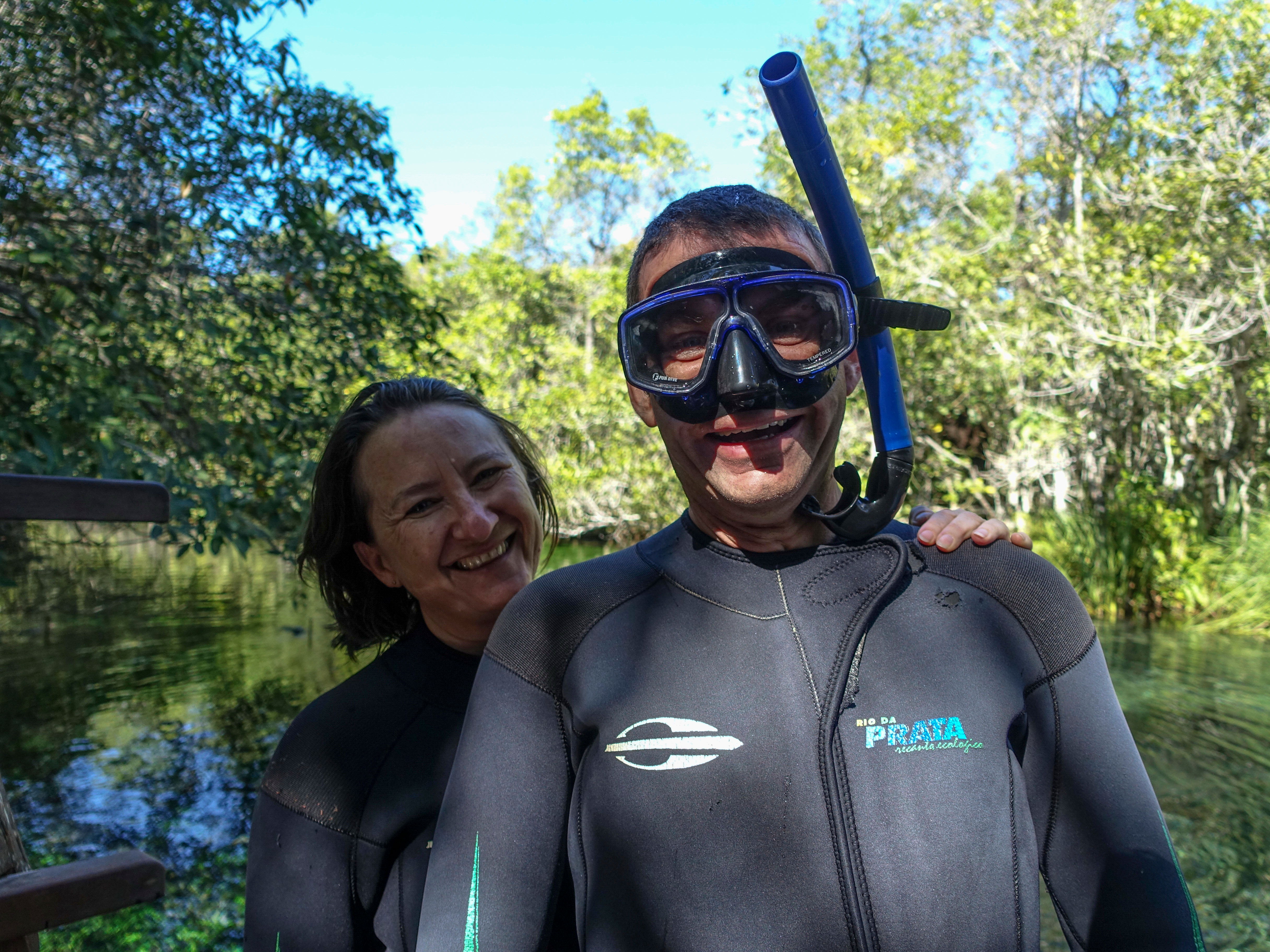 Next mission in Bonito was snorkelling with tropical river fish. We are still travelling with our Swiss friends Oliver and Jeannine who have a Bremach camper-truck (similar to Cuthbert) and have coincidentally planned a similar route to us in Brazil, so the four of us booked to snorkel down a tributary to join the main Río do Prata.