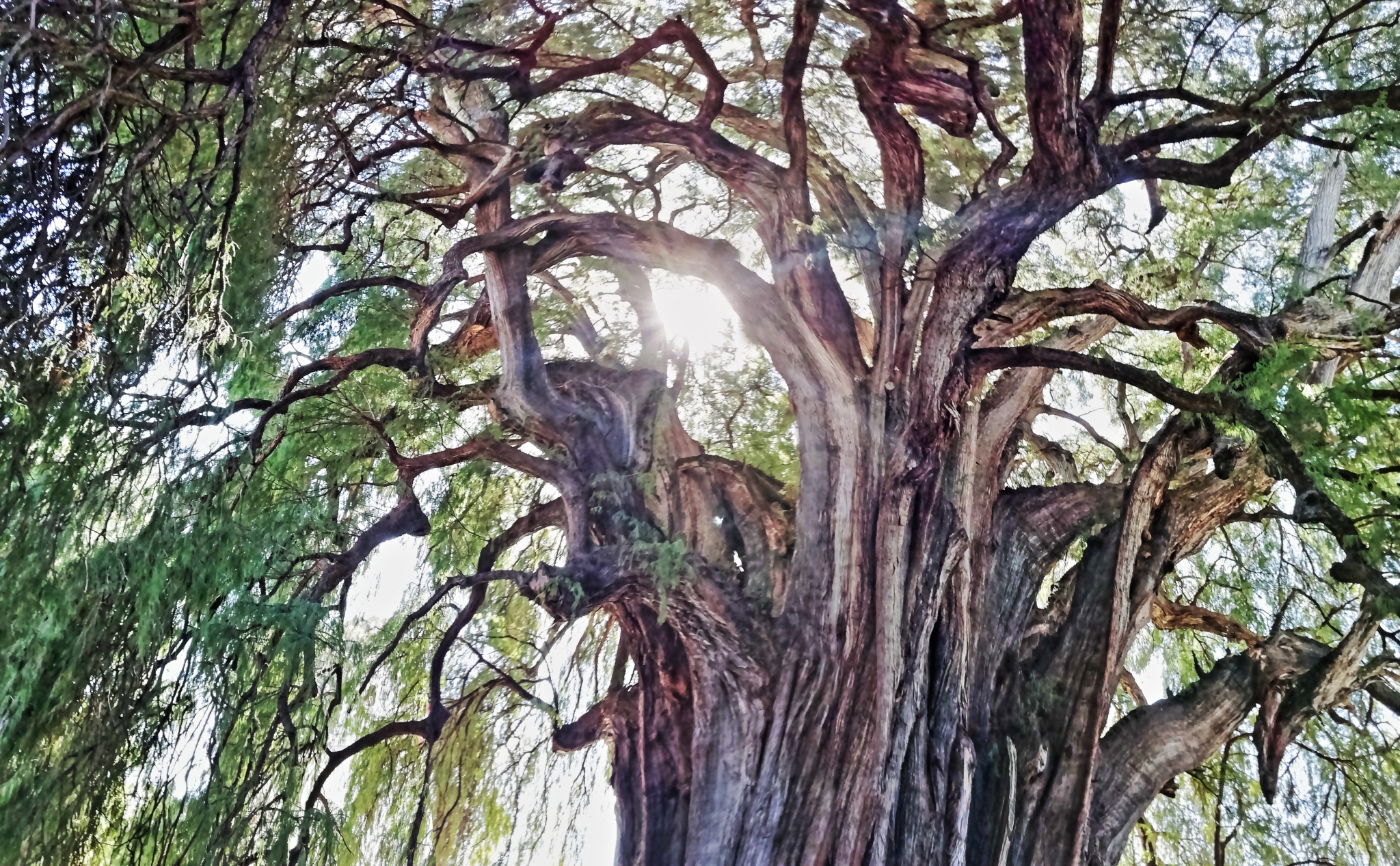 The tree at the other end of the scale-spectrum is in the village of El Tule: the largest tree in the world. Well to be precise… the claim, I think, is the tree-trunk with the largest circumference. In any case, it’s chuffin’ big. It’s over 2000 years old. You get the scale-thing with the tree dwarfing the church next to it.