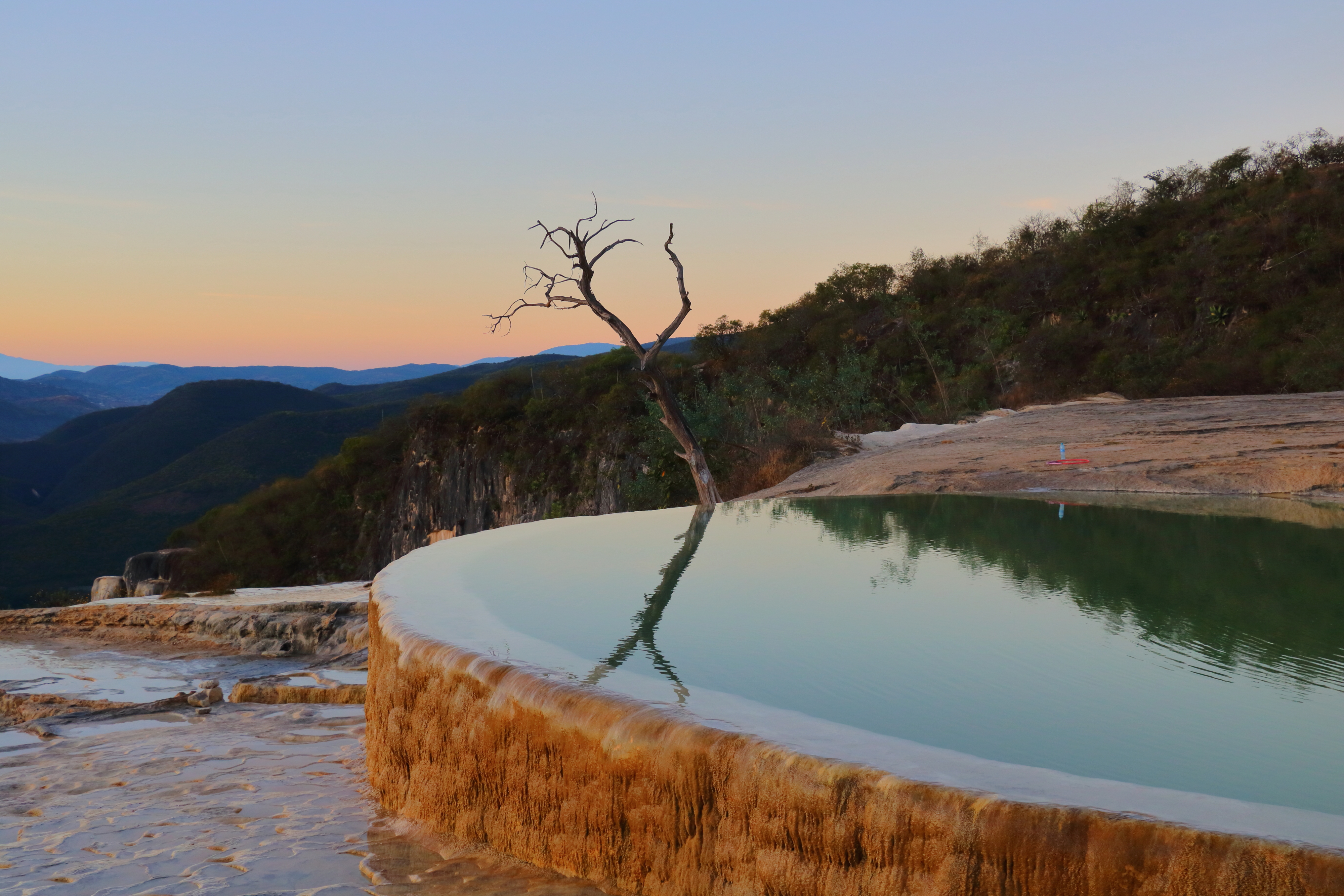 Two of the many things to do around Oaxaca involve trees at the opposite ends of the scale-spectrum. Hierve El Agua is a petrified waterfall with a natural infinity pools and, just for that little extra visual impact, there’s a small, stark skeleton of a tree perched on the edge. Quite a photogenic spot, but anyone thinking they can just turn up at any old time of the day and take pics like these will be sadly miffed. To get these shots I had to drag myself out of bed at stupidly early o’clock. Believe me, I really don’t do this often these days. First, it’s to avoid the many other visitors that hang around for most of the day. Secondly, it’s to catch the still water before the wind gets-up and creates ripples on the surface. Oh, how I suffer for my art 😂 Anyway… worth it d’ya think?