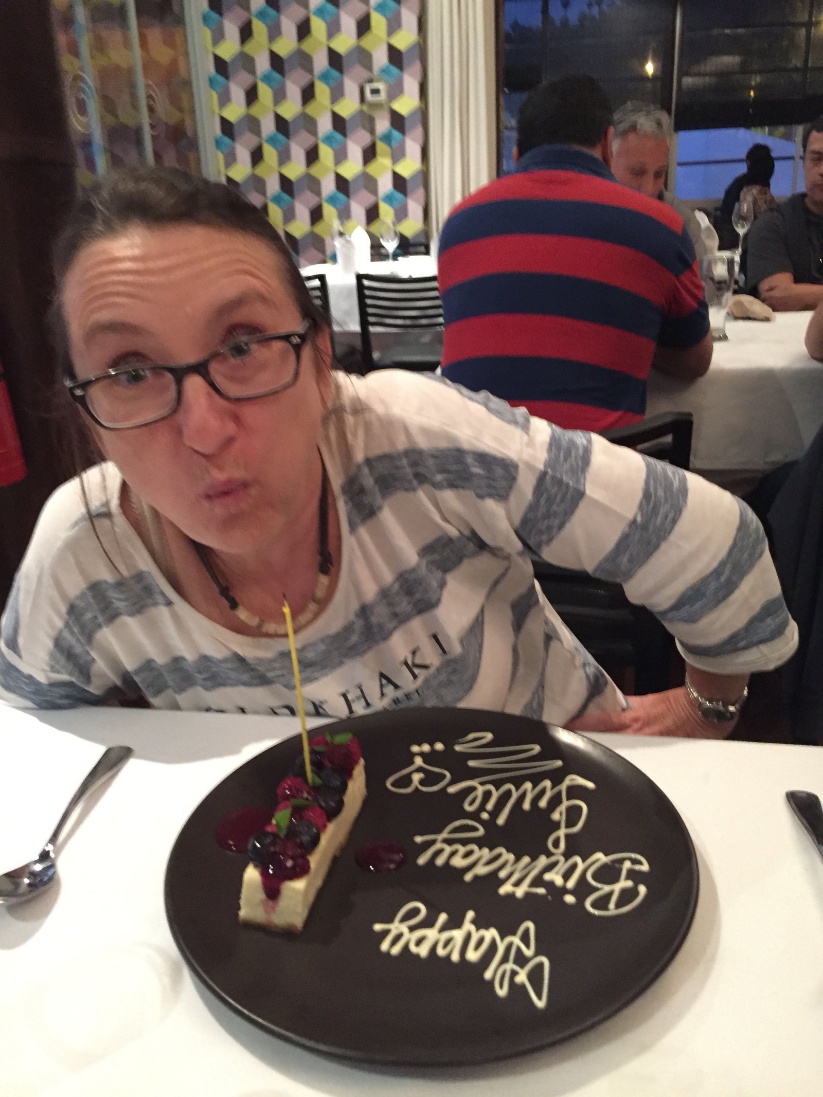 It’s just a few hours from Paracas up to Lima. We’re interested to explore our next capital city, but we’re not here on just any old routine sight-seeing mission… No Sir! We’re here to meet our co-investigators Jimmy and Karen, to research some of the city’s pisco sour cocktails. The four of us had a great time together up in Cusco, but one of the disadvantages of high altitude can be a reduced tolerance of alcohol. Now, not only can we do justice to a sampling of Lima’s finest pisco sours, but we have the small matter of someone’s (well, mine actually 🙂 ) birthday to celebrate. Jimmy and Karen most kindly treat us to splendid pisco sours and a fabulous lunch in one of Lima’s best restaurants, overlooking the ocean. There is really nothing better for a birthday than to share it with great friends, delicious food, some pisco sours… oh… and the obligatory bubbly too!! Blessed!