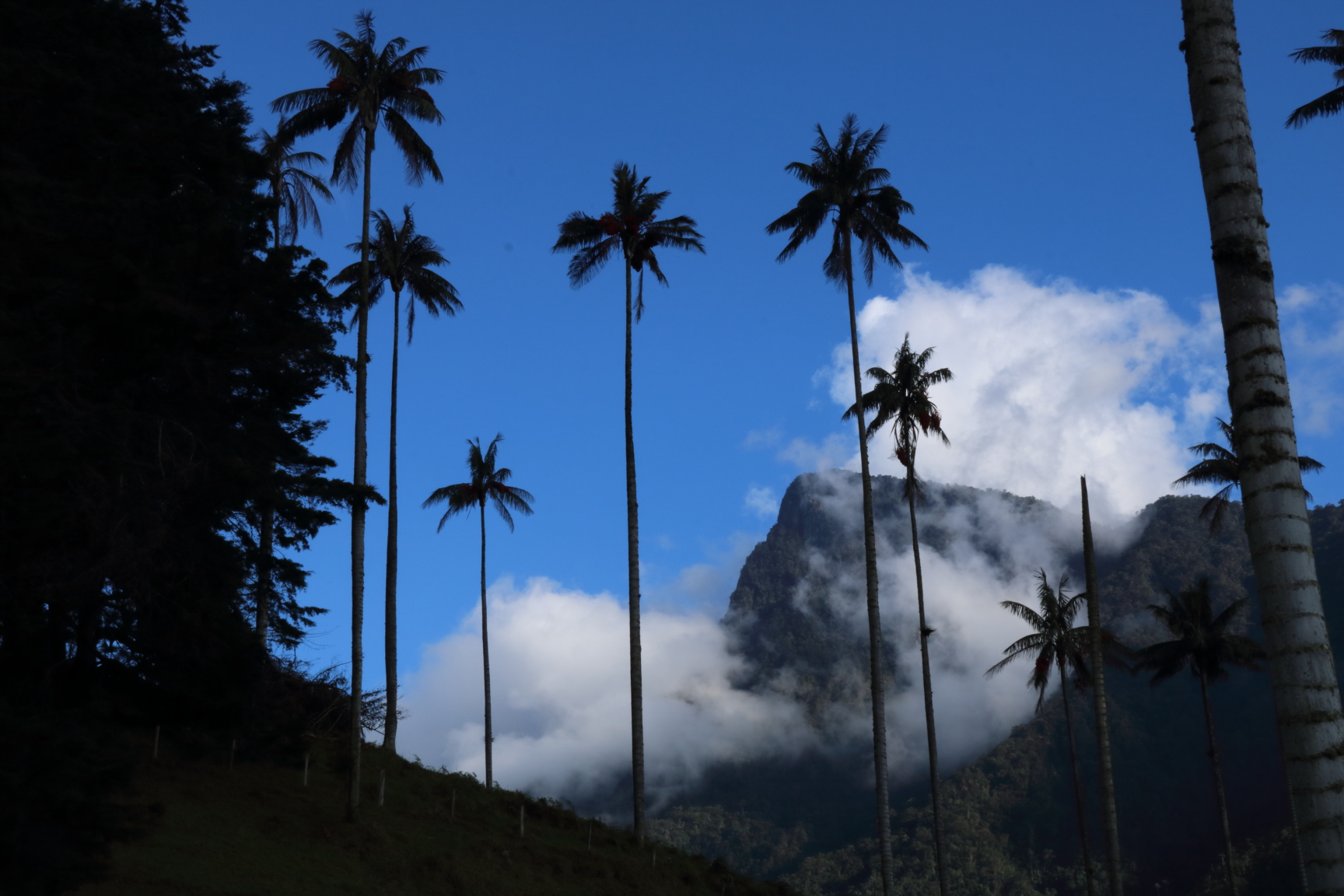 Hiking the stunning Cocora Valley with its towering wax-palms was a lovely day; we did a short drone video of that. Ooooh… and check out the short video-clip of dawn at one of our camp-spots outside a friendly hill-top café….. and the pics of the first suspension bridge in the Americas (which is still in operation today for light vehicles). Cool huh?