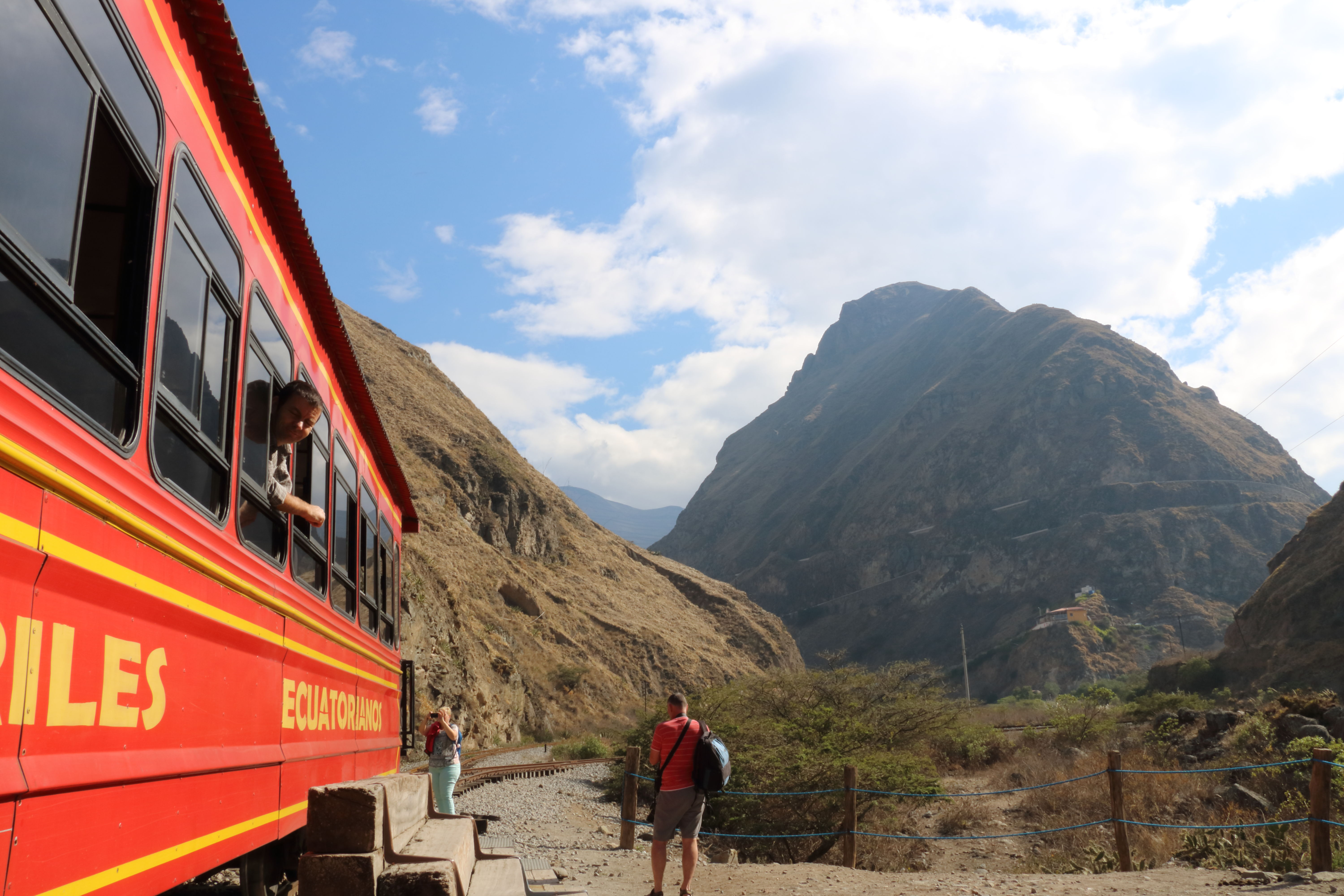 The landscape is looking a bit parched as we head south to the small town of Alausí where we want to do the Devil’s Nose train trip. The rail-road was originally cut out of the rock-face in the early 20th Century to link the inland towns with the coastal port of Guayaquil. It latterly fell into disrepair but is now restored as a tourist attraction, taking a zig-zag route around the fabled Devil’s Nose mountainside. It can’t really be described as ‘hair-raising’ or even ‘exciting’ experience, but nevertheless it’s a nice trip with some lovely views and a few steep drops off the track-side to create a little ‘oooh factor’.