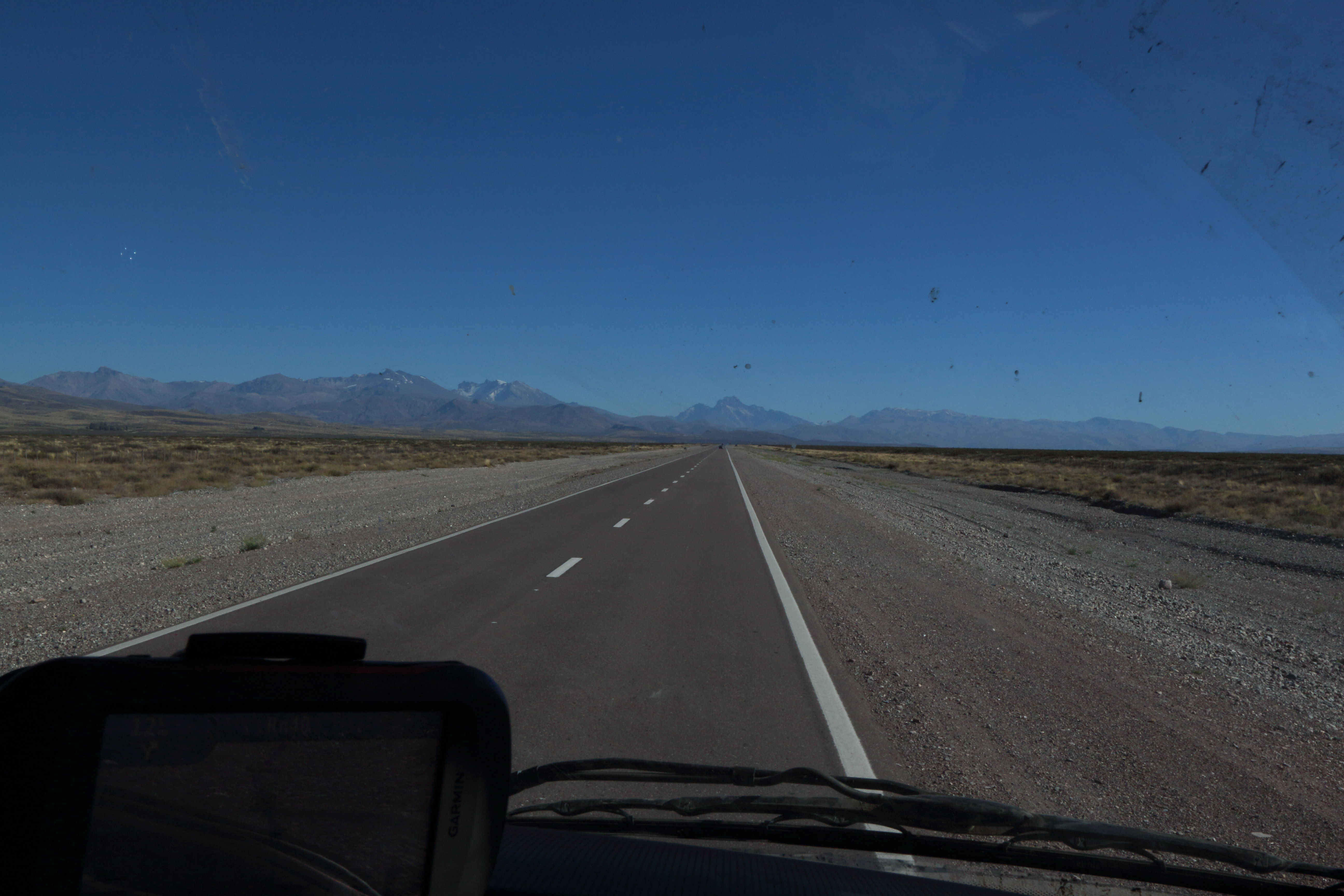 Anyway⌠weâre on the road, re-joining Ruta 40 and heading north. This section of the Route 40 is tarred, so we shouldnât have any repetition of the mud story that we had further south. The road more or less forms the line where the Andes mountains meet the pampas plains, which makes for an ever-changing view as we settle down in Cuthbert to cover a bit of distance.