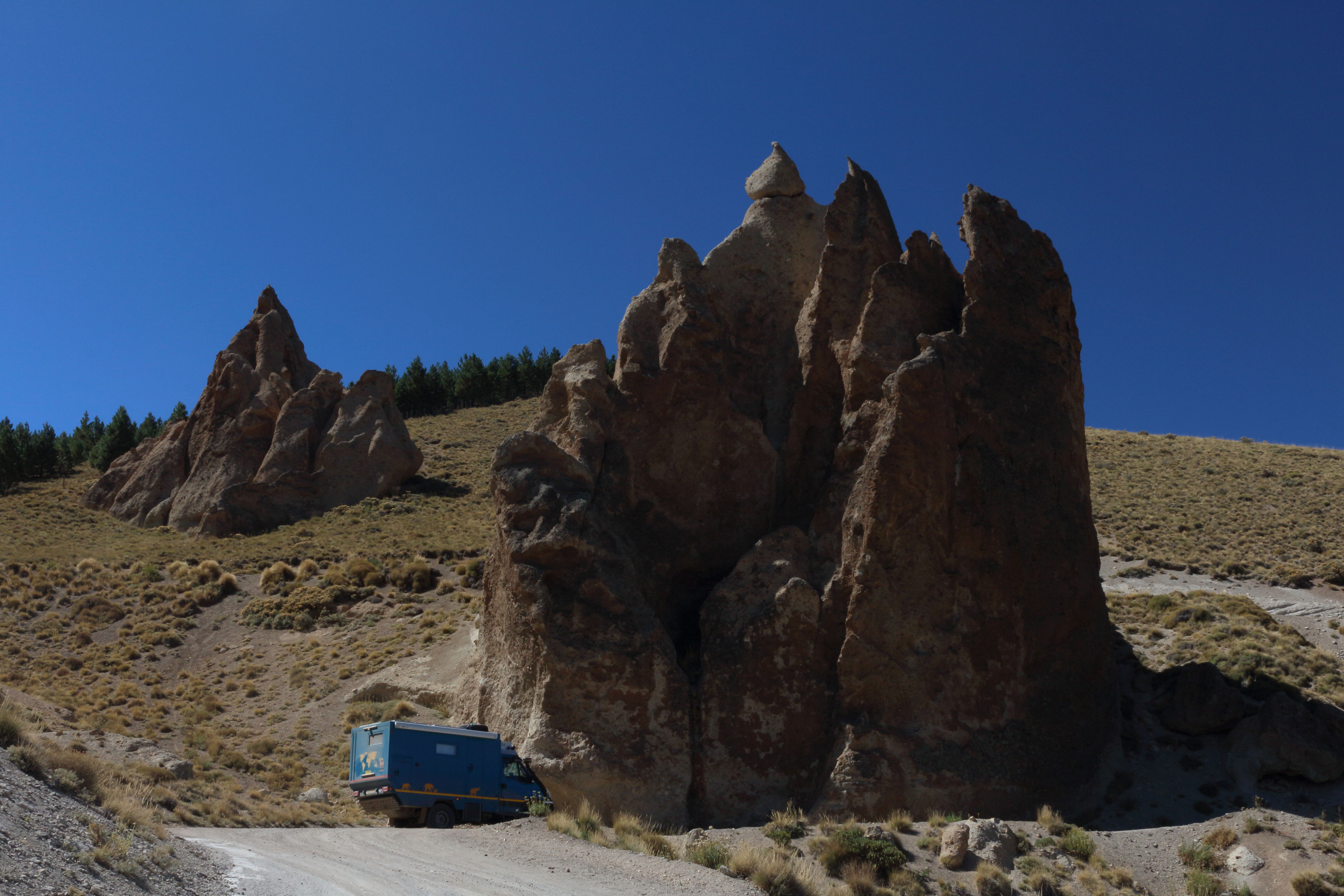 After the marvellous Aguas Calientes, we decided to try a possible dirt-track route to the north, to rejoin the Ruta 40 at Barrancas. Note: âpossibleâ because although the track is clear on two of our paper maps, it doesnât appear on our sat-nav. Hmmm⌠would the track go through? The alternative was to back-track around 150km to Chos Malal to re-join Ruta 40 where we left it a few days ago to the south. Taking a âglass half-fullâ type of approach here, we decided to give the northerly track a try.