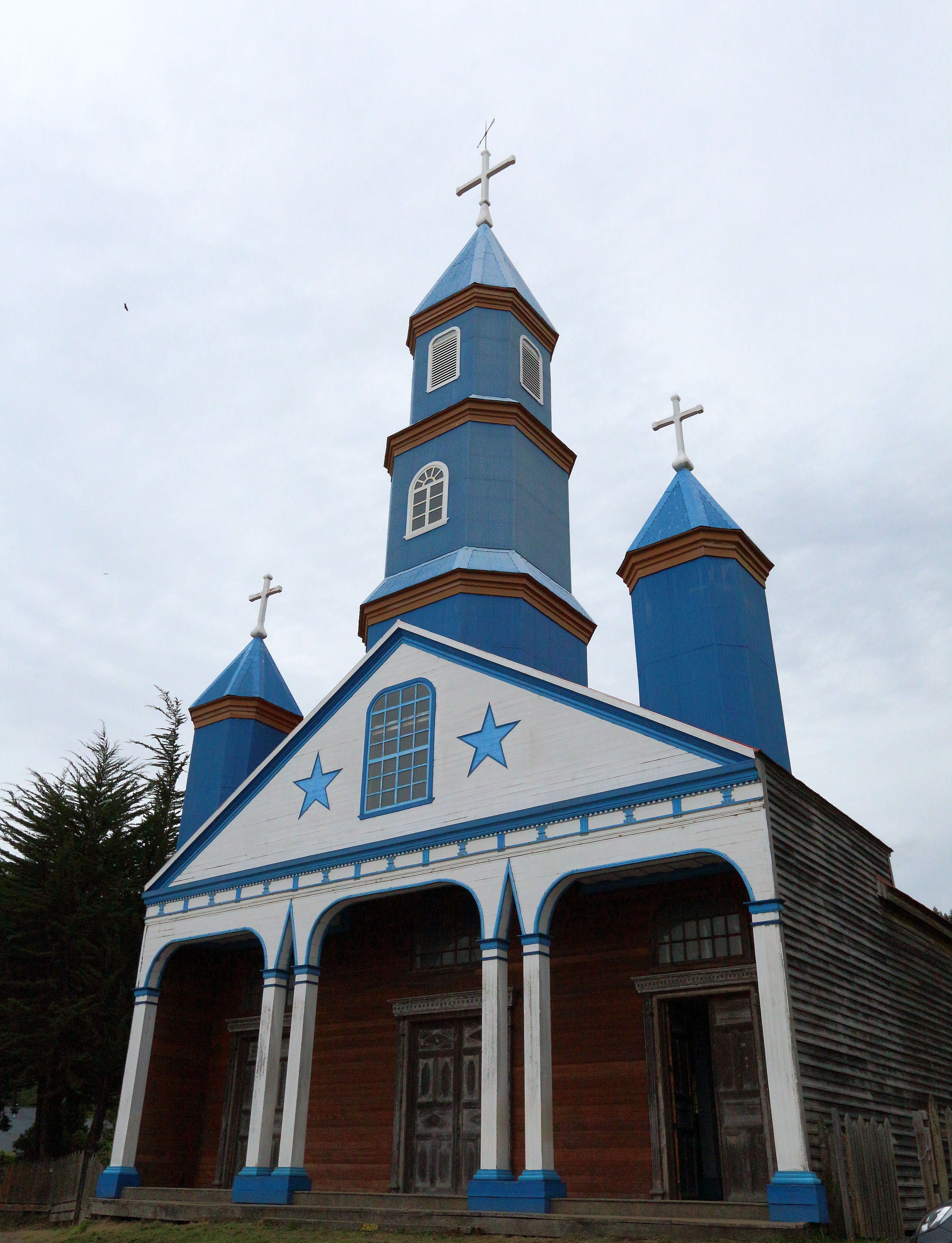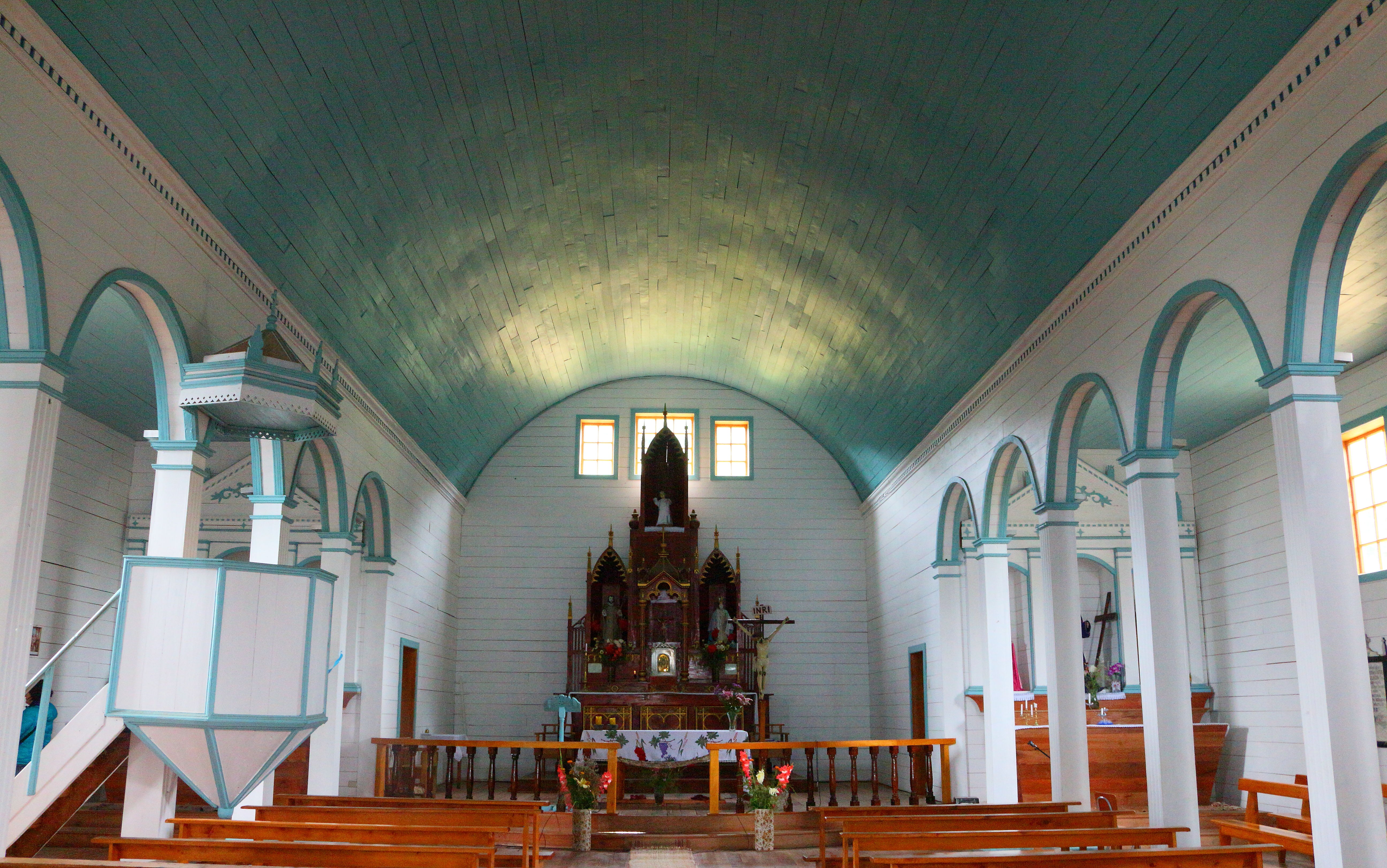 After a few nights parked-up by wild, beautiful beaches on the west coast of Chiloé facing out onto the Pacific’s rolling breakers, we drove through rolling green hillsides – which could incidentally, easily be mistaken for views of rural England – to the less wind-battered east coast of the island to start the ‘Ruta de Las Iglesias’ (Route of the Churches). There are countless small wooden churches across Chiloé island; you’re nobody in the social circles of Chilotean villages if you can’t boast of a small hand-built wooden place of worship sitting on your central square.