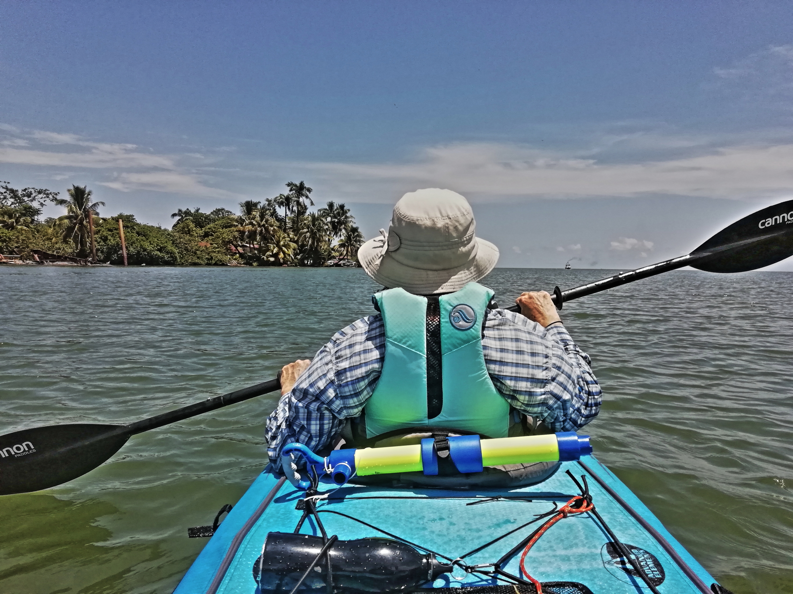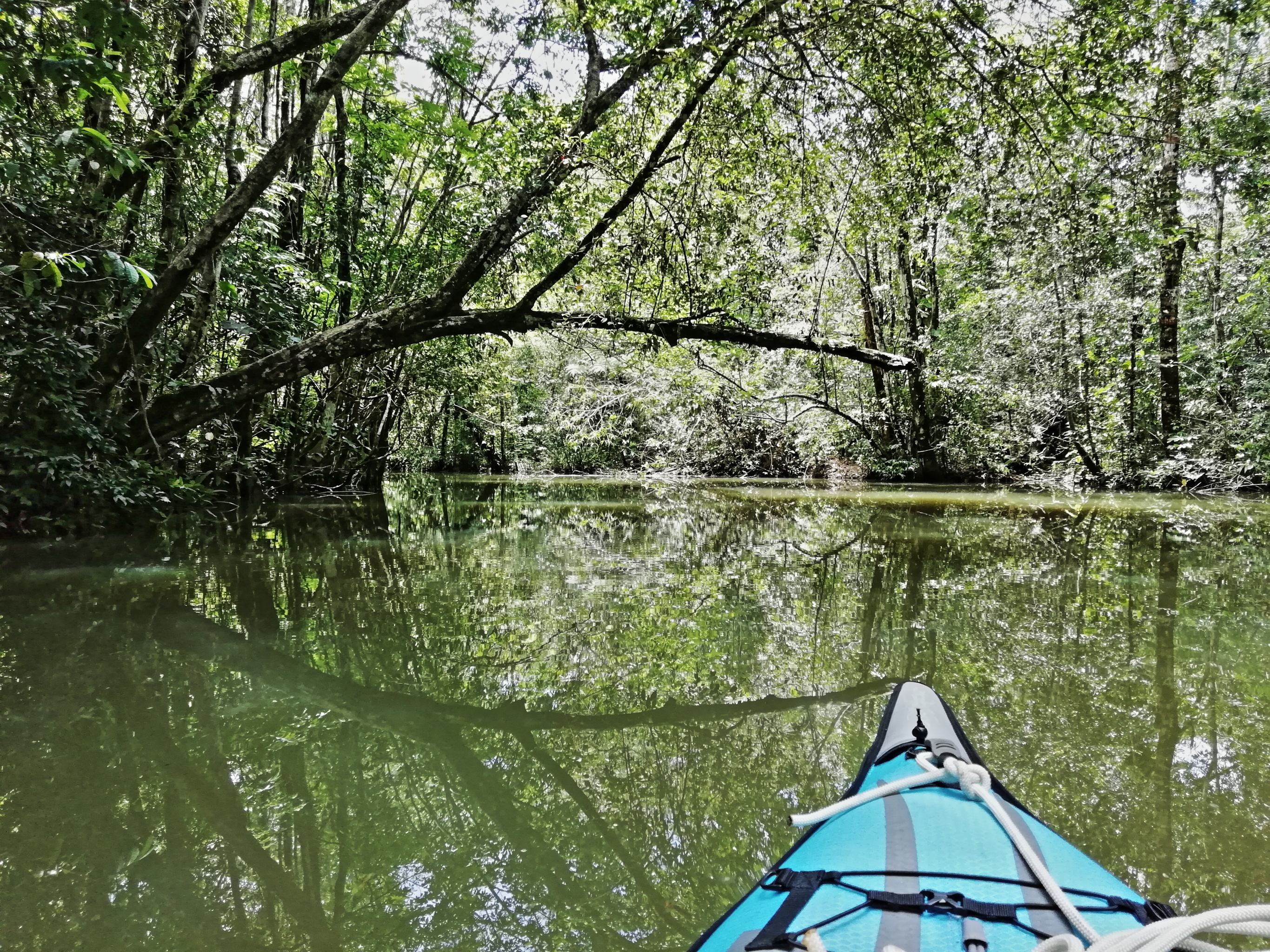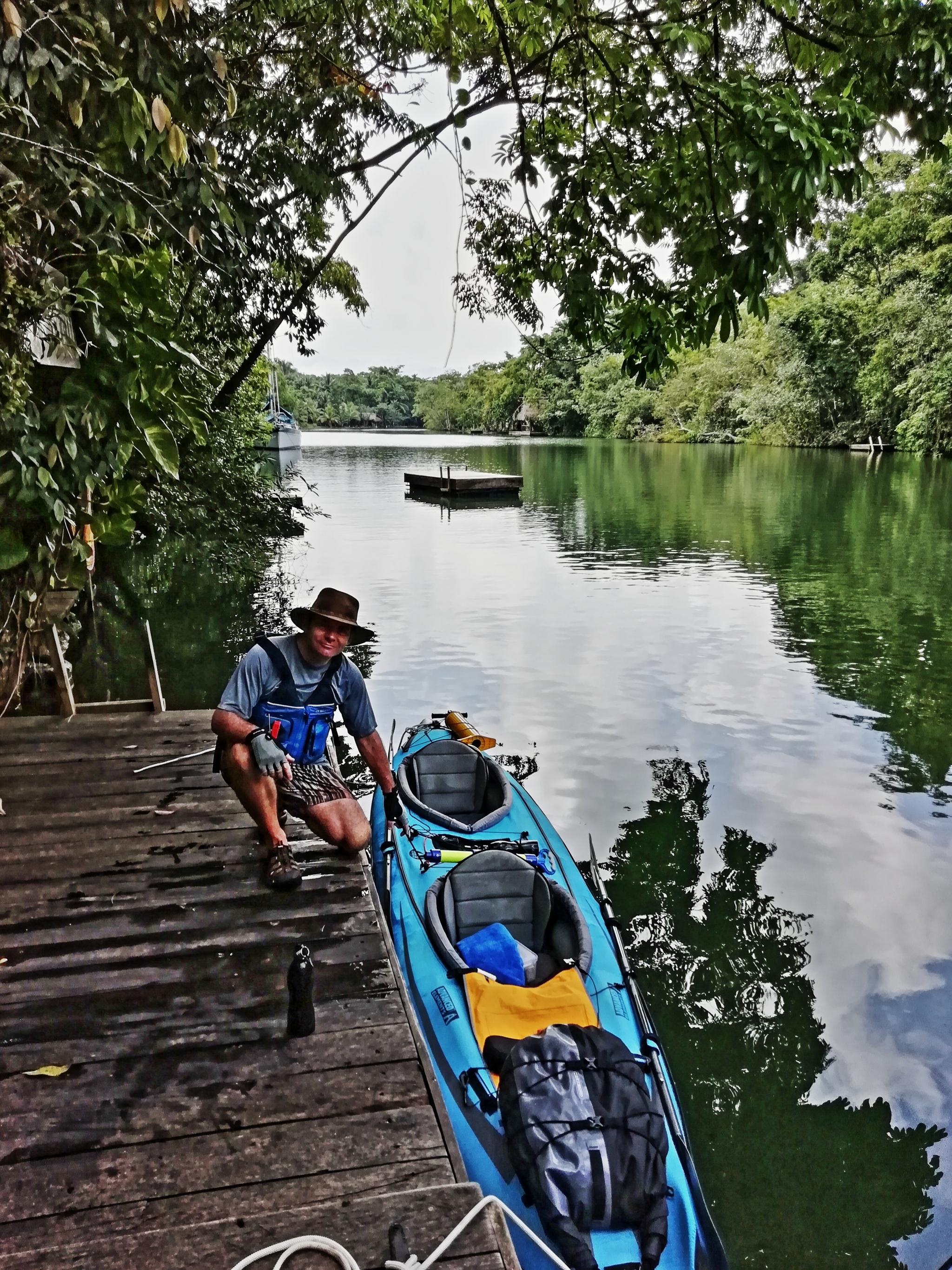 Rio Dulce is the name of both a town and the river that leads from Lake Izabal down to Livingston on the Caribbean. About half-way between Rio Dulce town and the coast, the river snakes sharply and cuts through a steep gorge with the cliff-sides covered in dense jungle. It’s where the Johnny Weissmuller Tarzan movies were filmed in the 1930s, so you get the idea! We wanted to explore the area with our Boaty McBoatface kayak.
