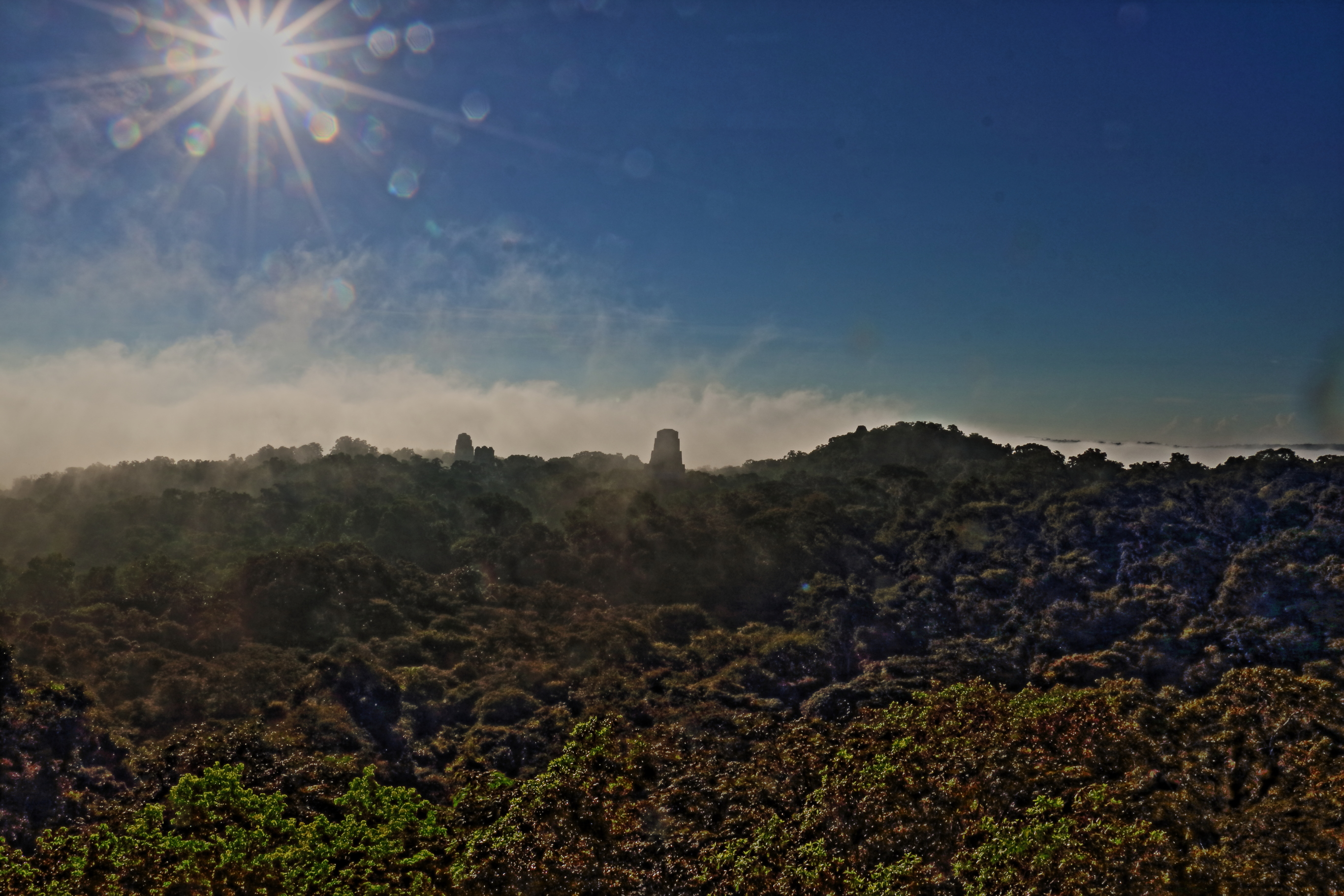 - Mist clearing over Tikal