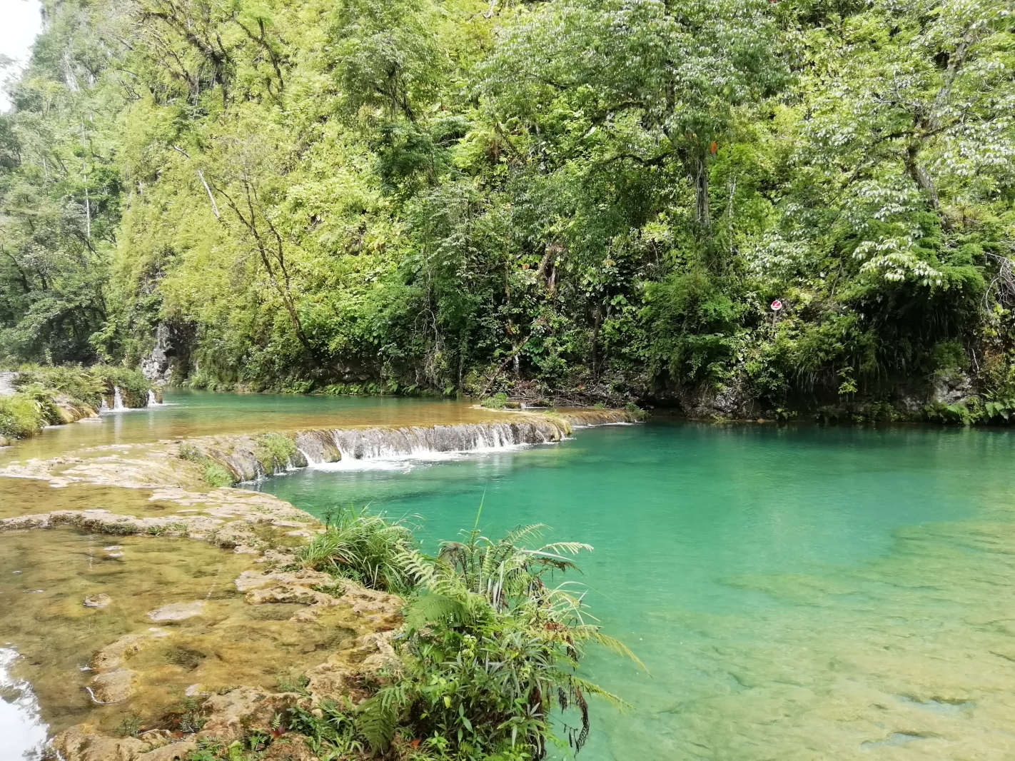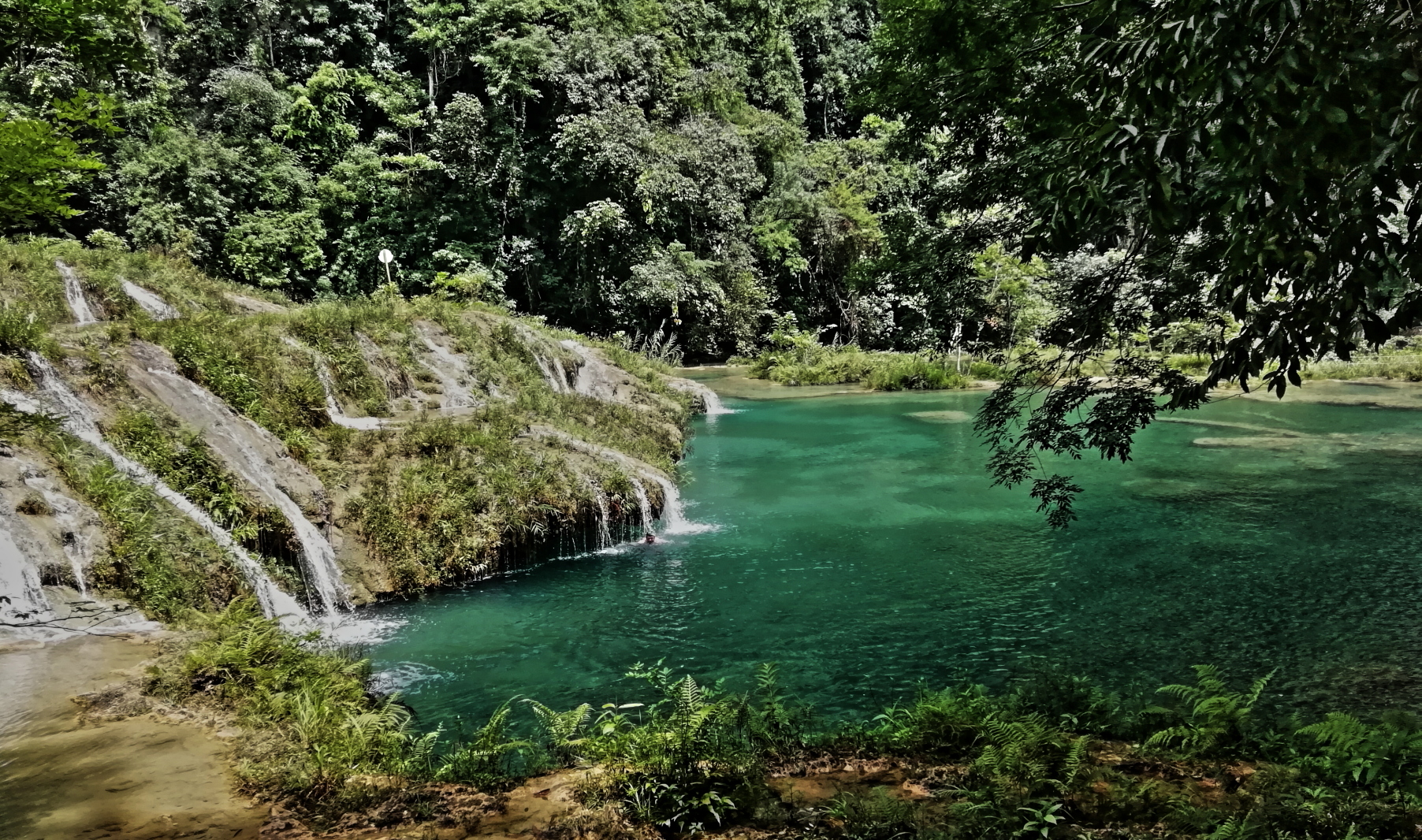 - marvelling at the pristine multi-tiered aquamarine pools of Semuc Champey……