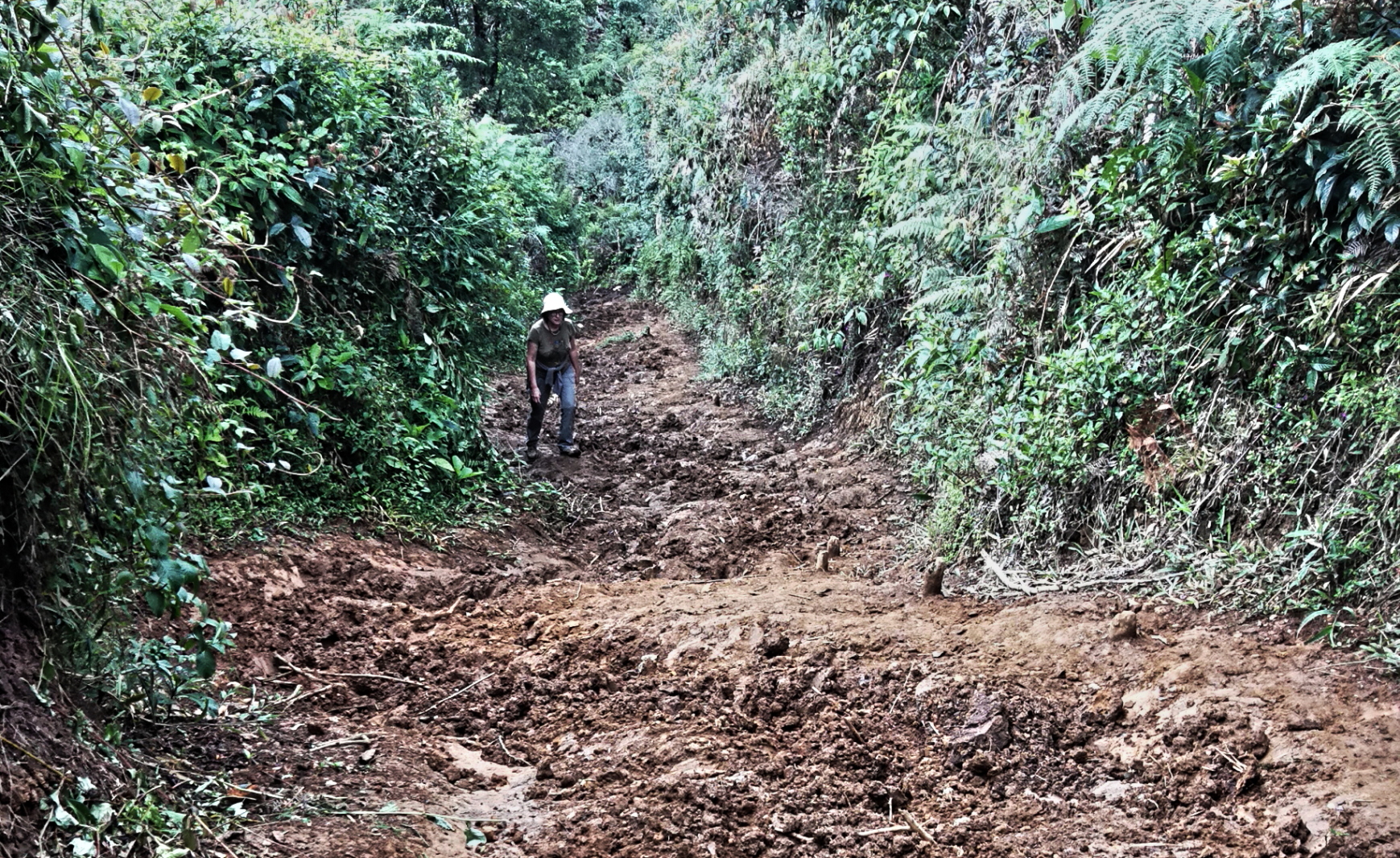 On the steep hillsides of this route we struggled to find a level park-up spot for the night. All the roadside pull-offs we could find were either steep, or uneven, or both. A lovely Maya family kindly offered us the opportunity to share a flat spot in their garden. A typical example of warm, generous hospitality of the Maya people. It was our last night in the beautiful, cool highlands for a while, so we savoured our last night up there and had an interesting time with the friendly family.