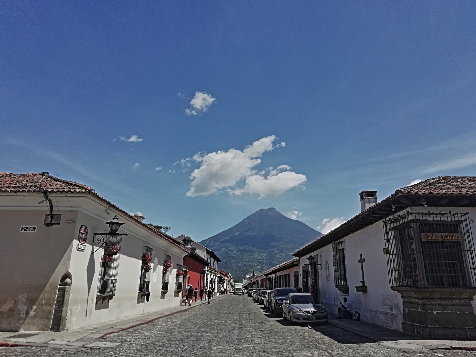 Antigua is the kind of place travellers get stuck for days, or even weeks. It’s not to small, not too big. Touristy without being overwhelmingly so. Super-picturesque with a fabulously sunny but not too hot climate. Lots of nice shops, cafes and restaurants. A nice plaza. And for the well-equipped overlander… a free campsite. Yes, if you have your own bathroom on board, the tourist police will allow you to park-up in their grassy, shady compound for free. Brilliant idea! What’s not to like?