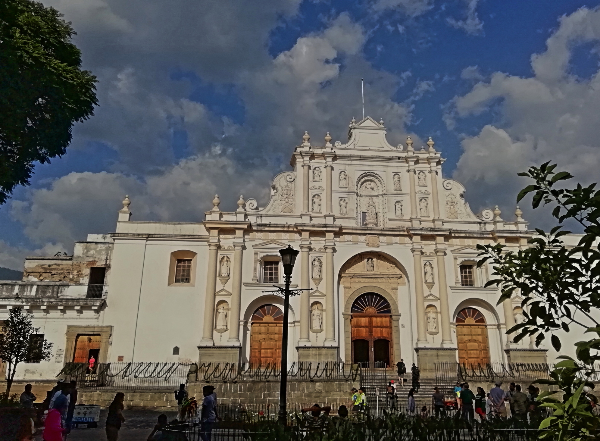 Today the plaza is really the heart of every city, town or village. It’s where everyone gathers. It’s where street-vendors sell cheap food, kids ride their bikes, teenagers take their first dates, old folk sit to ‘chew the fat’, shoe-shiners polish shoes, and it seems still in Guate City, the local farmer walks his goats! The plaza central is always a good place to start in a town and Guate is no exception with its cathedral and national palace.