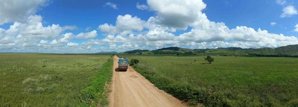Onwards again, the jungle seems never-ending until suddenly, some 100km south of the Kurukupari river crossing, the scenery suddenly gives way to vast, wide-open savannah land. Cor blimey!! We can suddenly see for miles across the plains to the Kanuku Mountains in the distance. It’s a real shock to the senses after the miles of limited visibility in the jungle.
