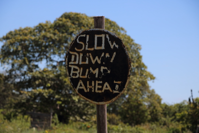 Another thing we notice south of the jungle is that in all the villages, we are to all intents and purposes, more in Brazil than Guyana. Technically we are of course still in Guyana, but the road signs are now often in Portugese, the shops are called ‘lojas’ and the bars sell Brazilian beer. Another sign that we are ‘in’ Brazil is the bowl of beans that we are served with our fried chicken in a small road-side café (tasty… but very Brazilian). And if final proof of the situation is required, only in Brazil does one find racks of flip-flops for sale in every shop in town 🙂 .