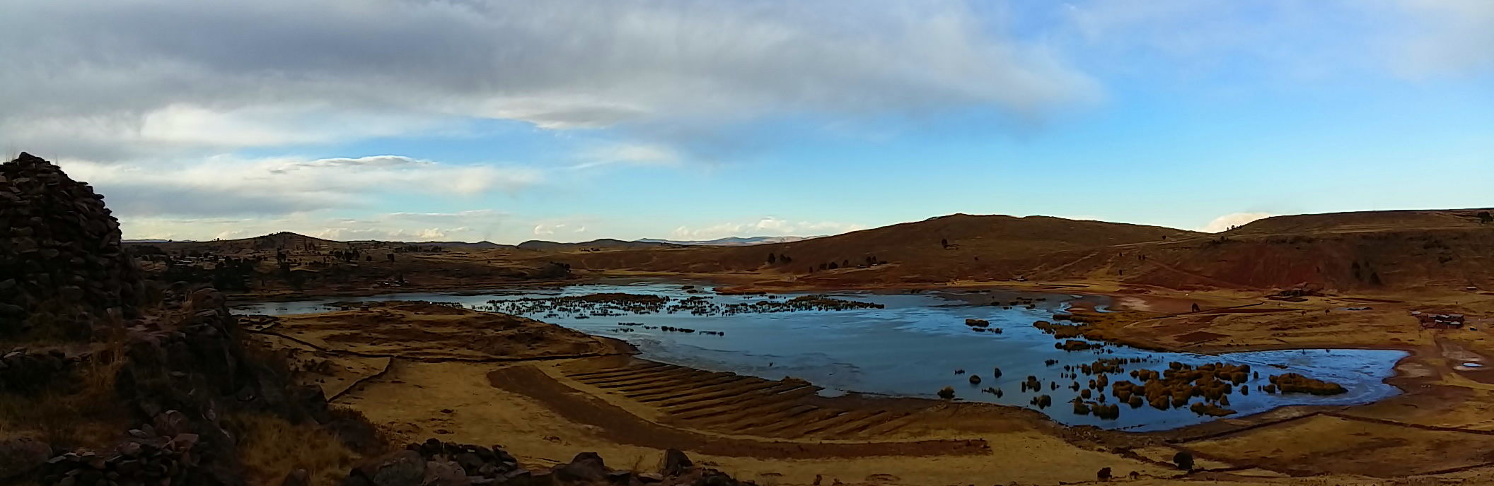 So as we were saying… there is little difference between the Bolivian and the Peruvian sides of Lake Titicaca, at least that is the case for a while. But as you drive north up the western shore, the snow-capped high peaks of the Bolivian Cordillera Real drift into the far distance and the Peruvian background takes shape around the Lake. The Peruvian Titicaca skyline is not unattractive, but it’s less remarkable and less dramatic than the Bolivian skyline. Although we sit on the altiplano at around 3,700m, the Peruvian scenery could easily be British: Scotland or the Lake District maybe.
