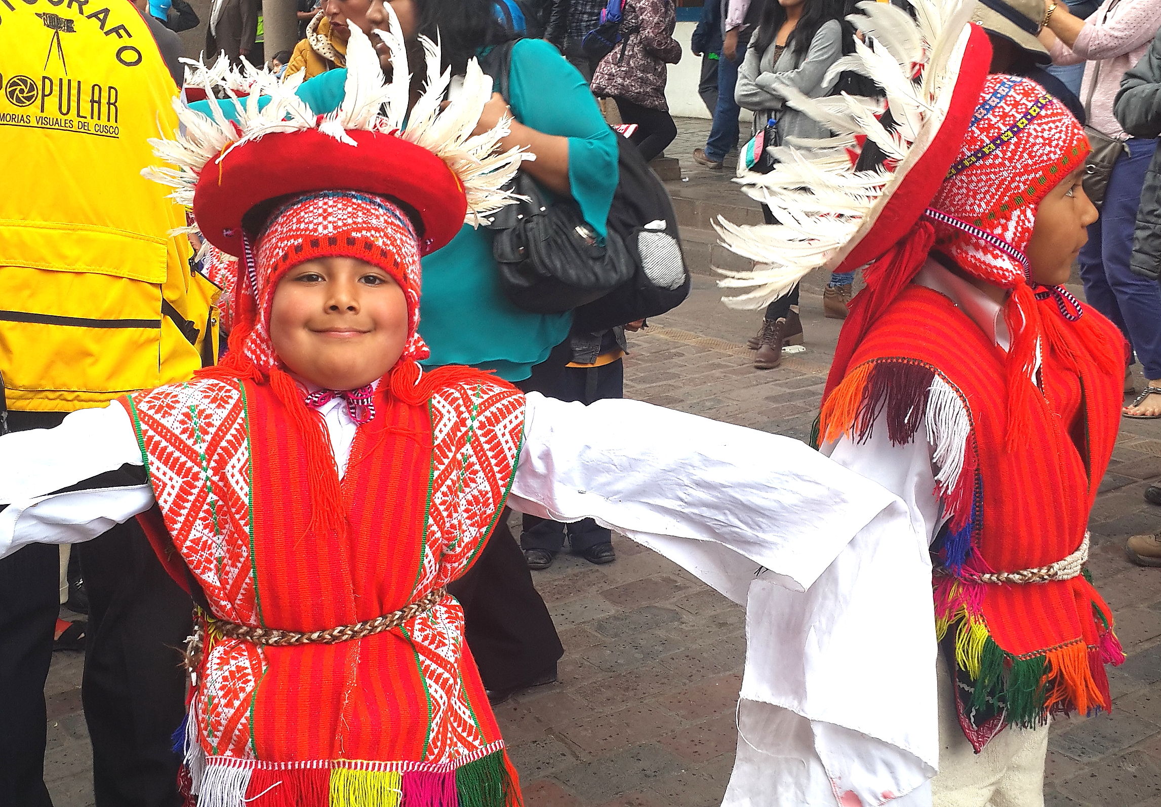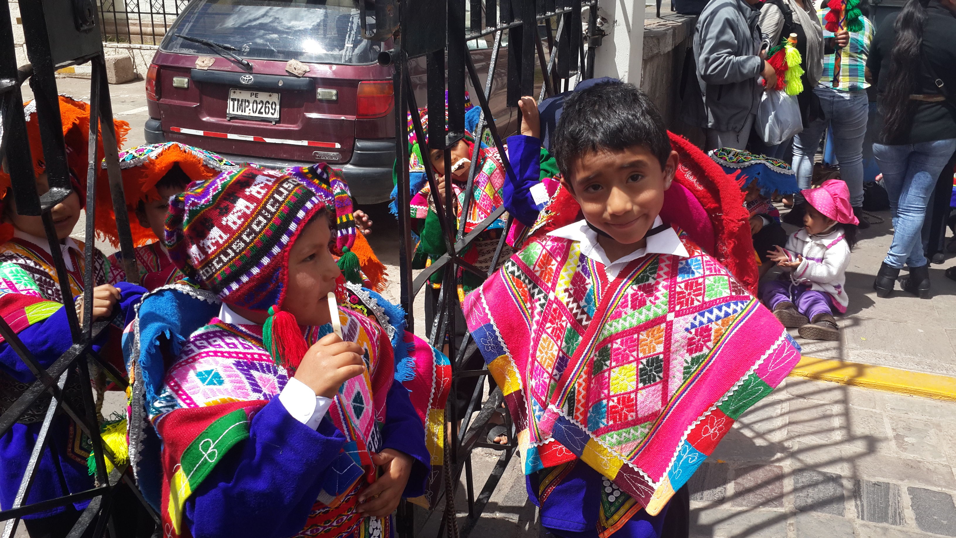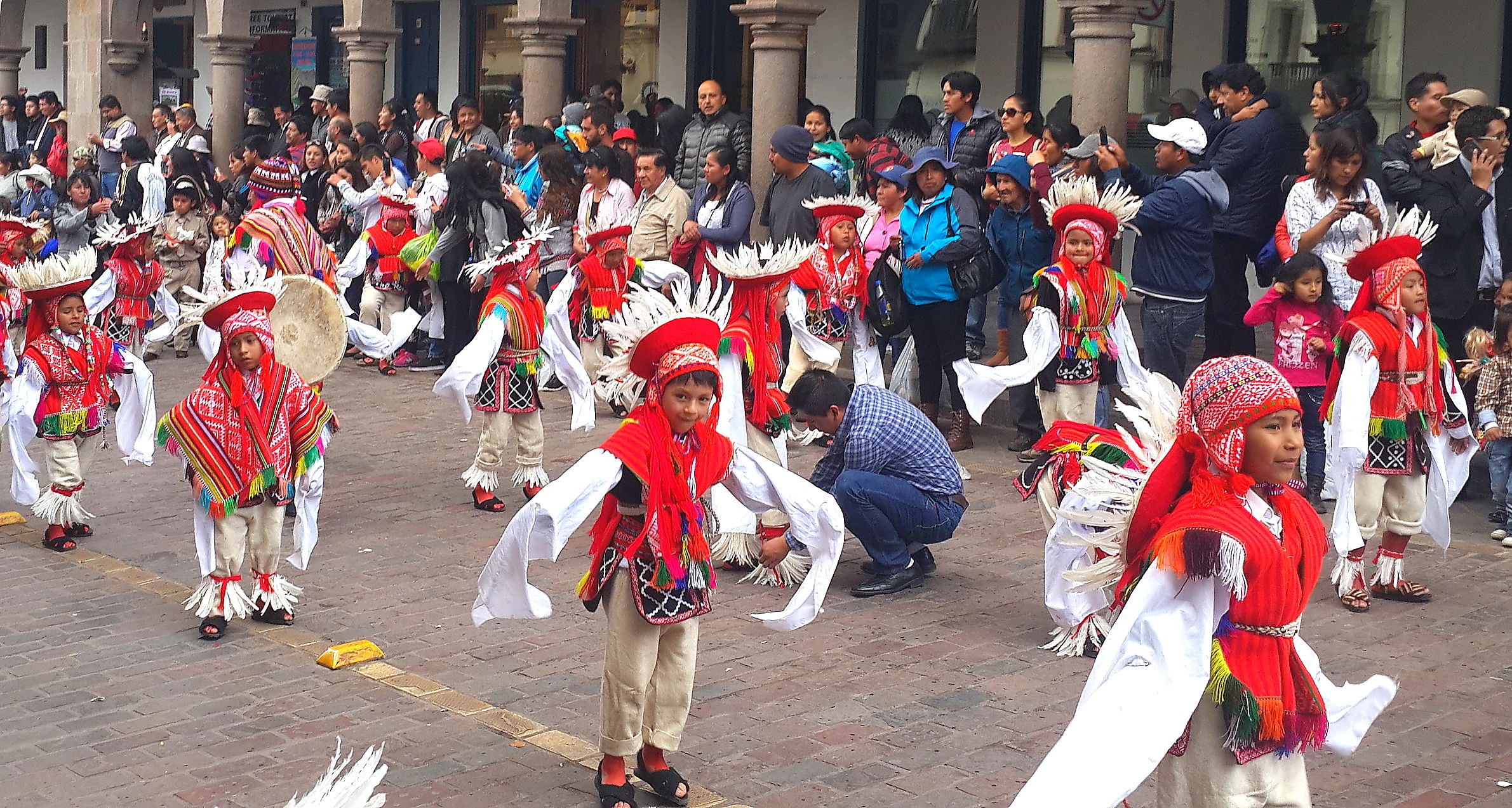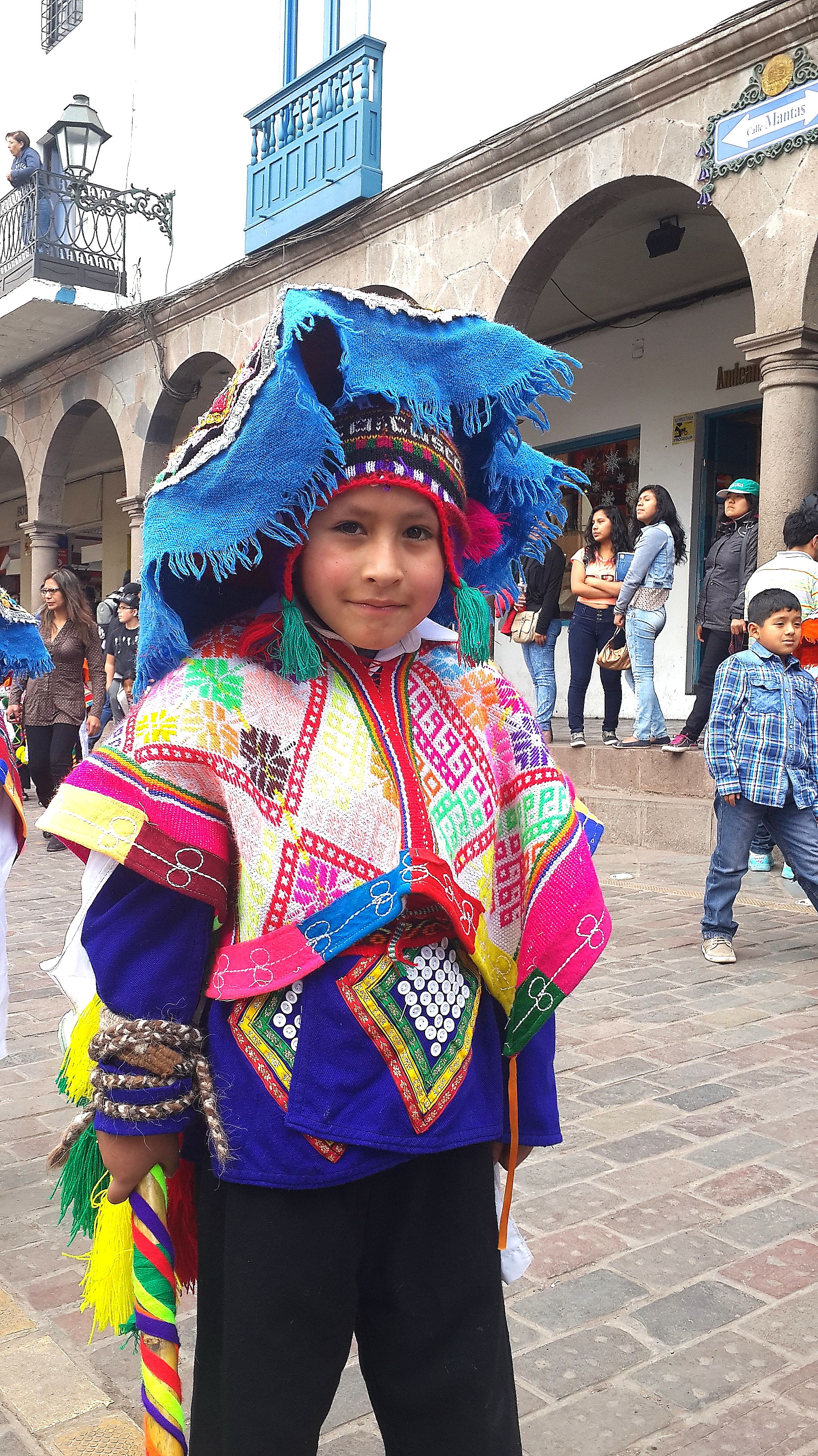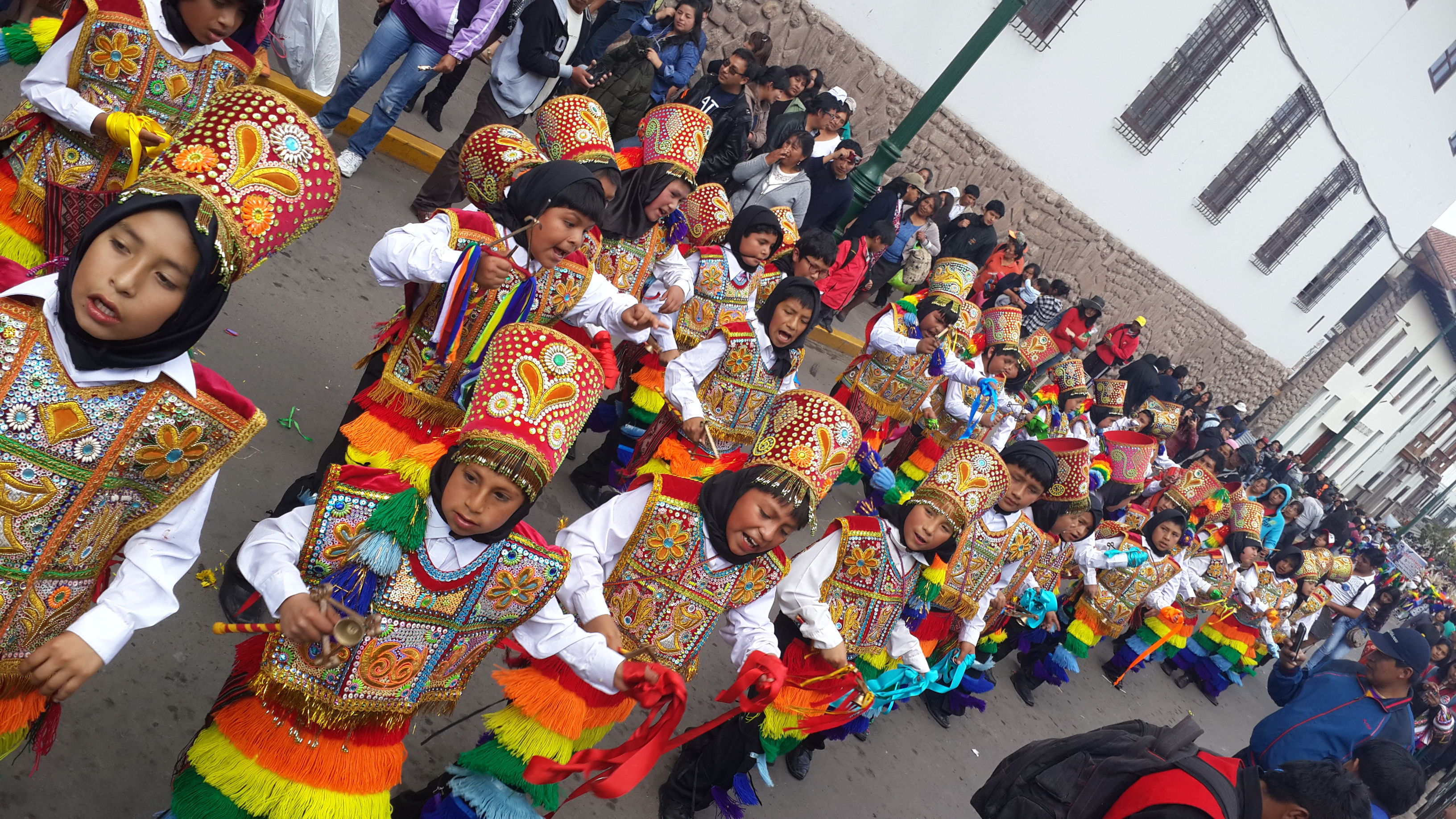 Arrival in Cusco and we find another fiesta taking place. Not sure whether we have an uncanny knack for unwittingly finding these random events or whether they are ubiquitous across this part of South America; I suspect the latter is more likely. Cusco did not have the spangled street-party that we found in Sucre, or the military march that we found in Puno, but a loooong afternoon procession of dancing kids. We realised after a while that it was curiously all little boys, aged between around 8 and 12 years old. Like many little boys of that age, they were not all wholly enthusiastic about dancing through the street in brightly coloured traditional outfits. What is it with ambitious parents of the world??? As with the famous soccer-mums of the western world, the less enthusiastic of these little boys were shuffling awkwardly, followed all the way through the town by red-faced mothers screaming wildly over the band-music “Juanito, baila, baila!!!” (dance, dance!).