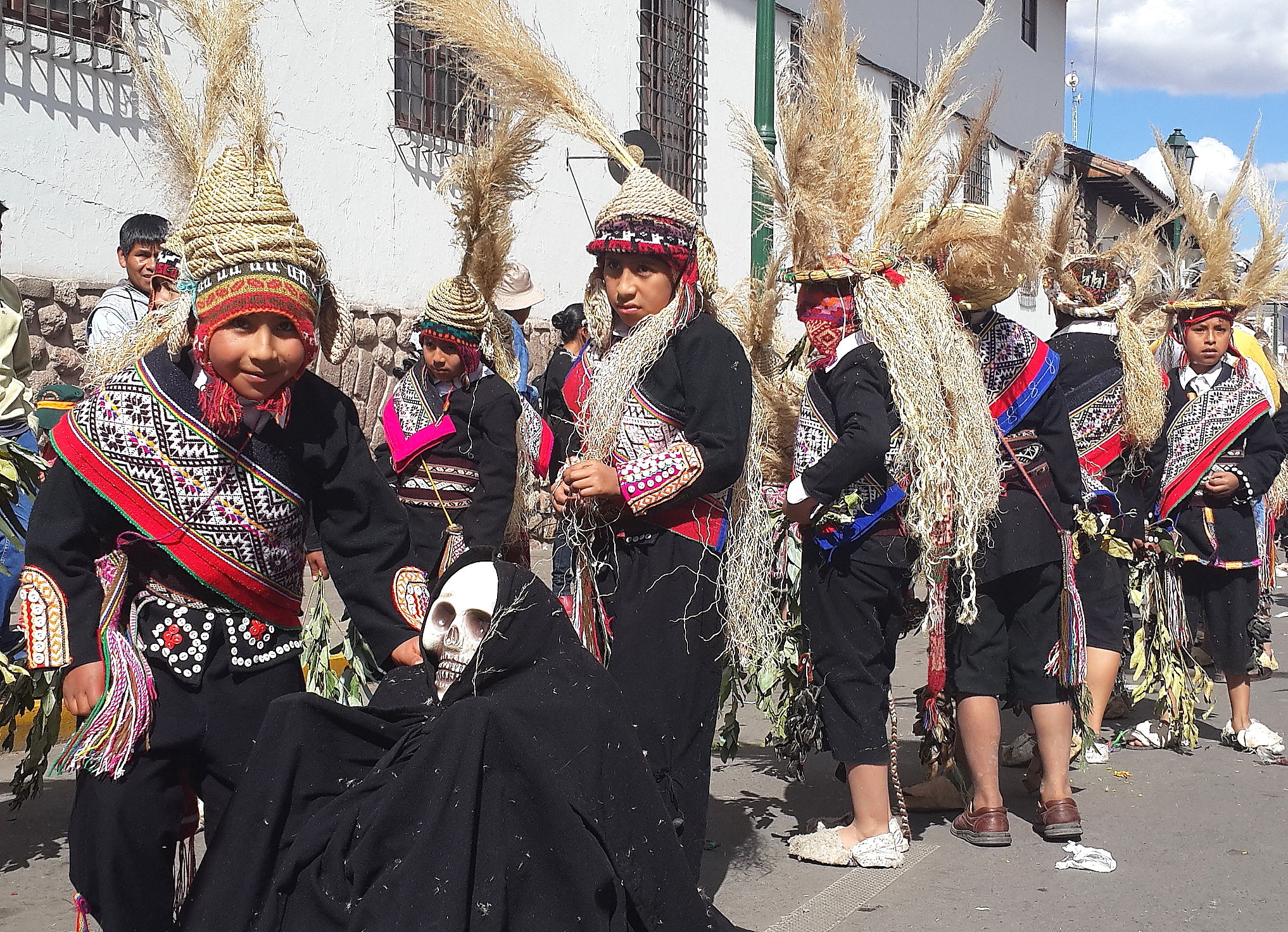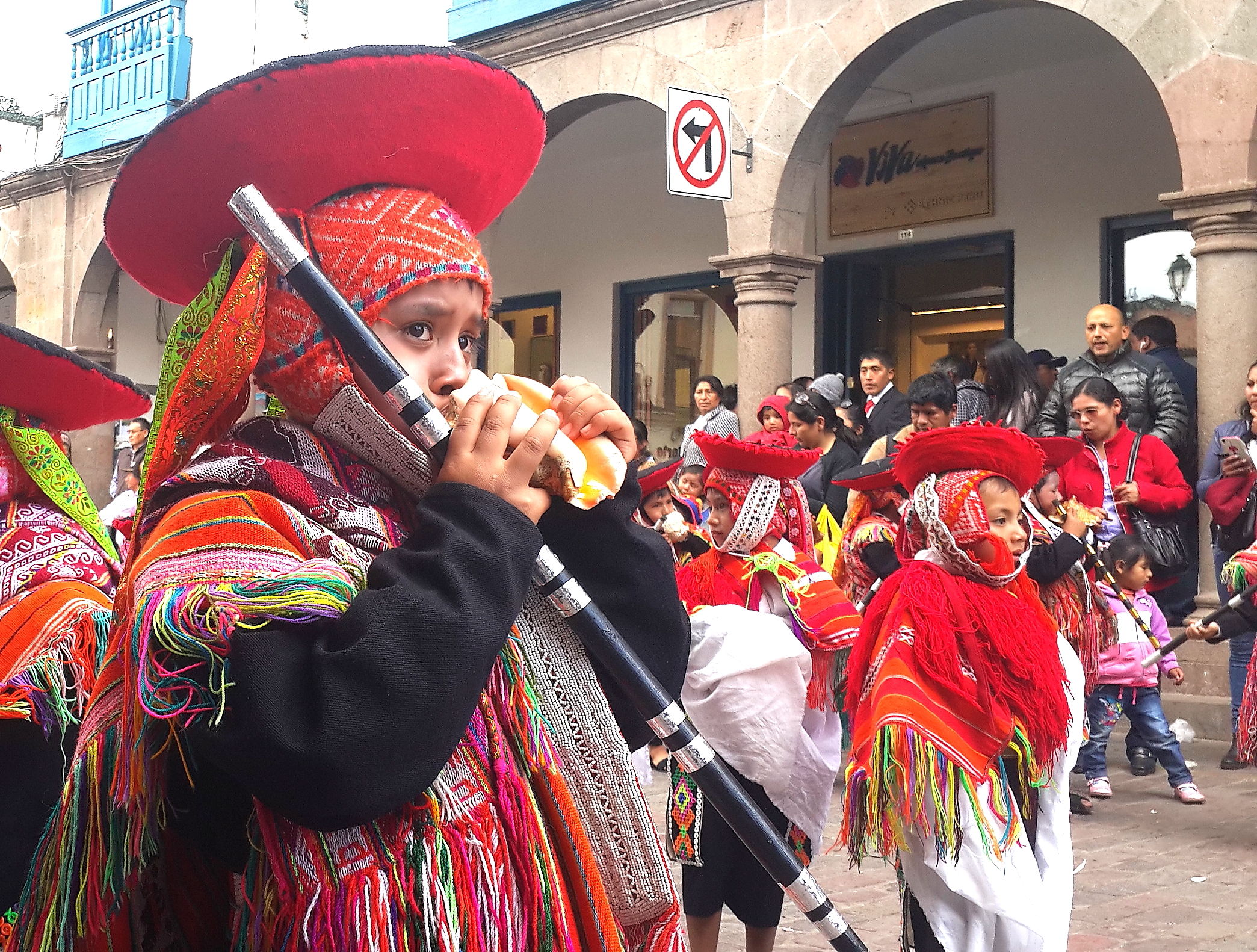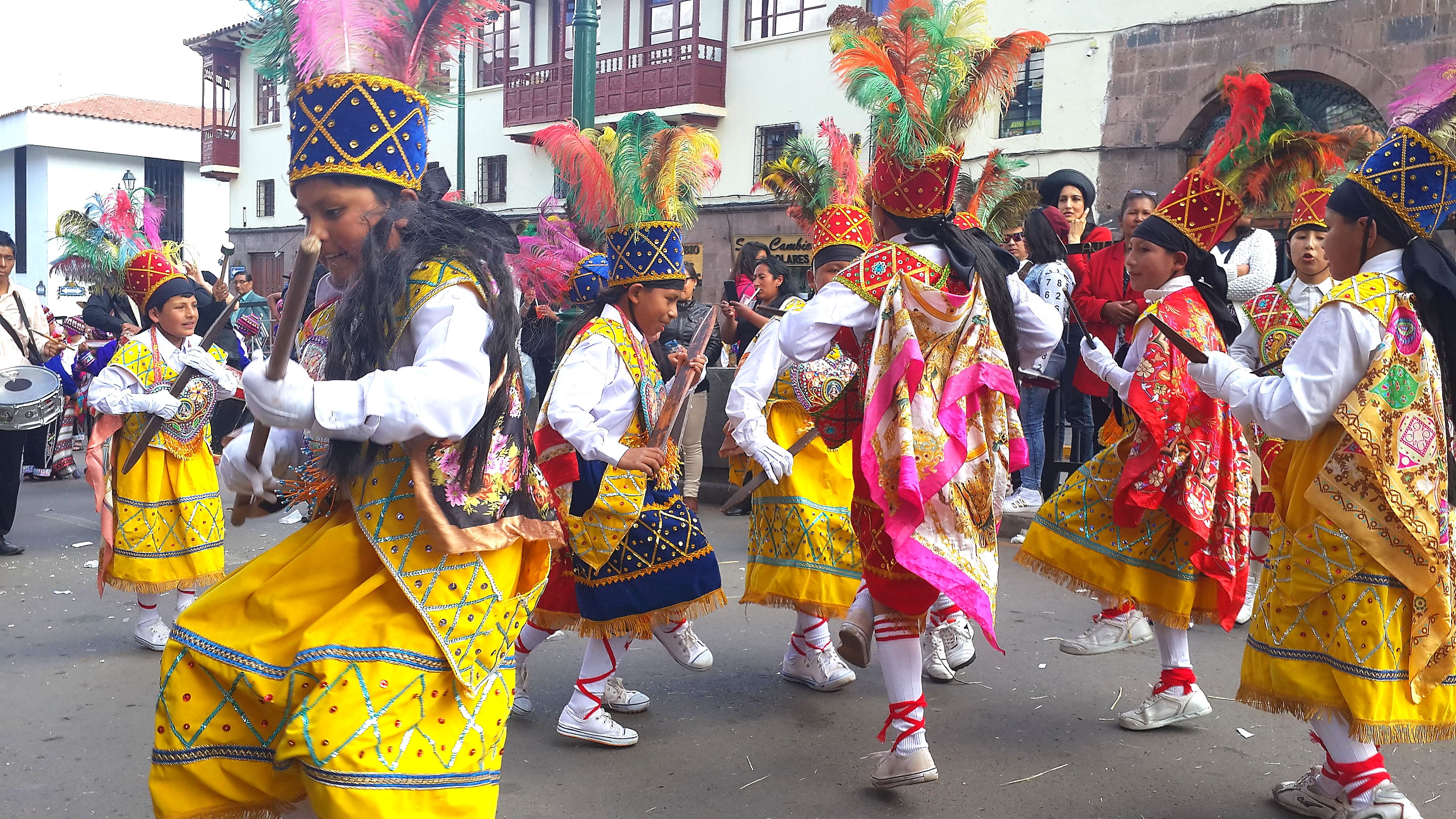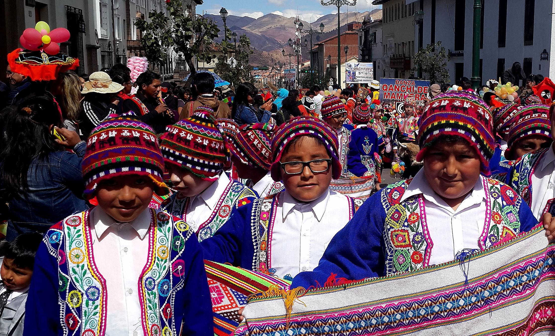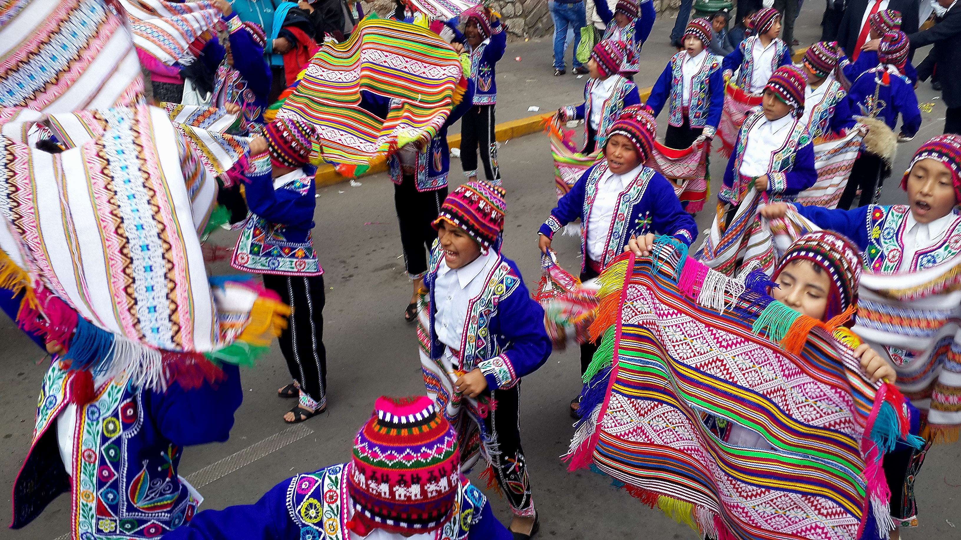 Arrival in Cusco and we find another fiesta taking place. Not sure whether we have an uncanny knack for unwittingly finding these random events or whether they are ubiquitous across this part of South America; I suspect the latter is more likely. Cusco did not have the spangled street-party that we found in Sucre, or the military march that we found in Puno, but a loooong afternoon procession of dancing kids. We realised after a while that it was curiously all little boys, aged between around 8 and 12 years old. Like many little boys of that age, they were not all wholly enthusiastic about dancing through the street in brightly coloured traditional outfits. What is it with ambitious parents of the world??? As with the famous soccer-mums of the western world, the less enthusiastic of these little boys were shuffling awkwardly, followed all the way through the town by red-faced mothers screaming wildly over the band-music “Juanito, baila, baila!!!” (dance, dance!).