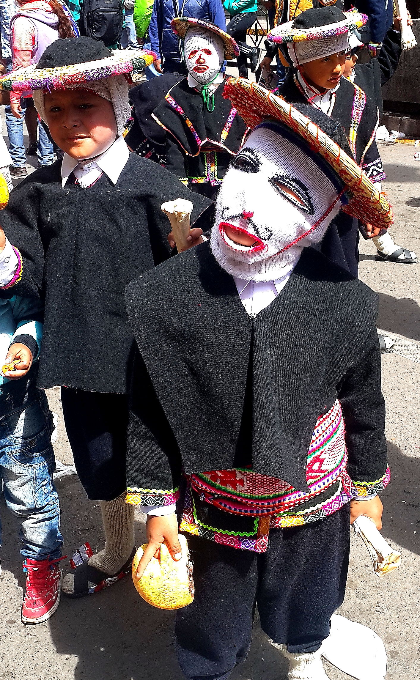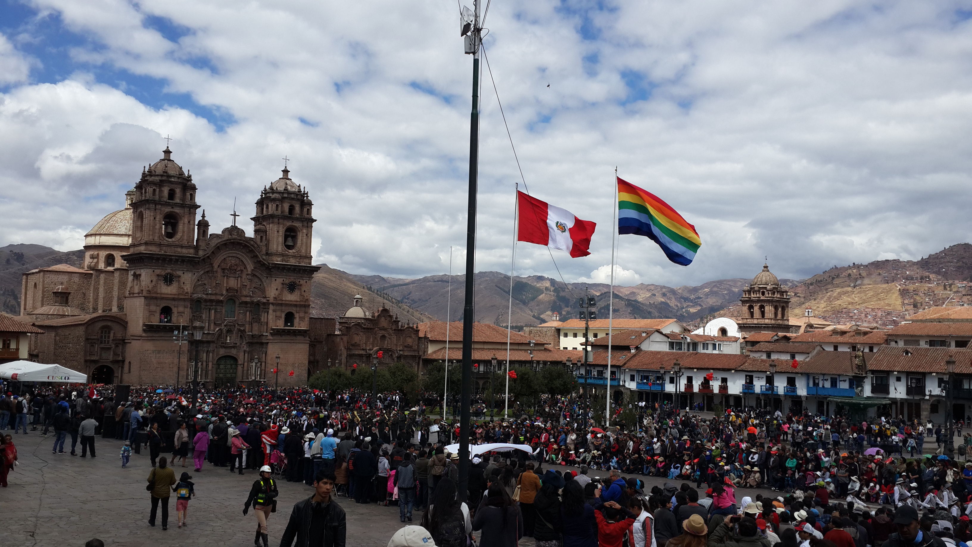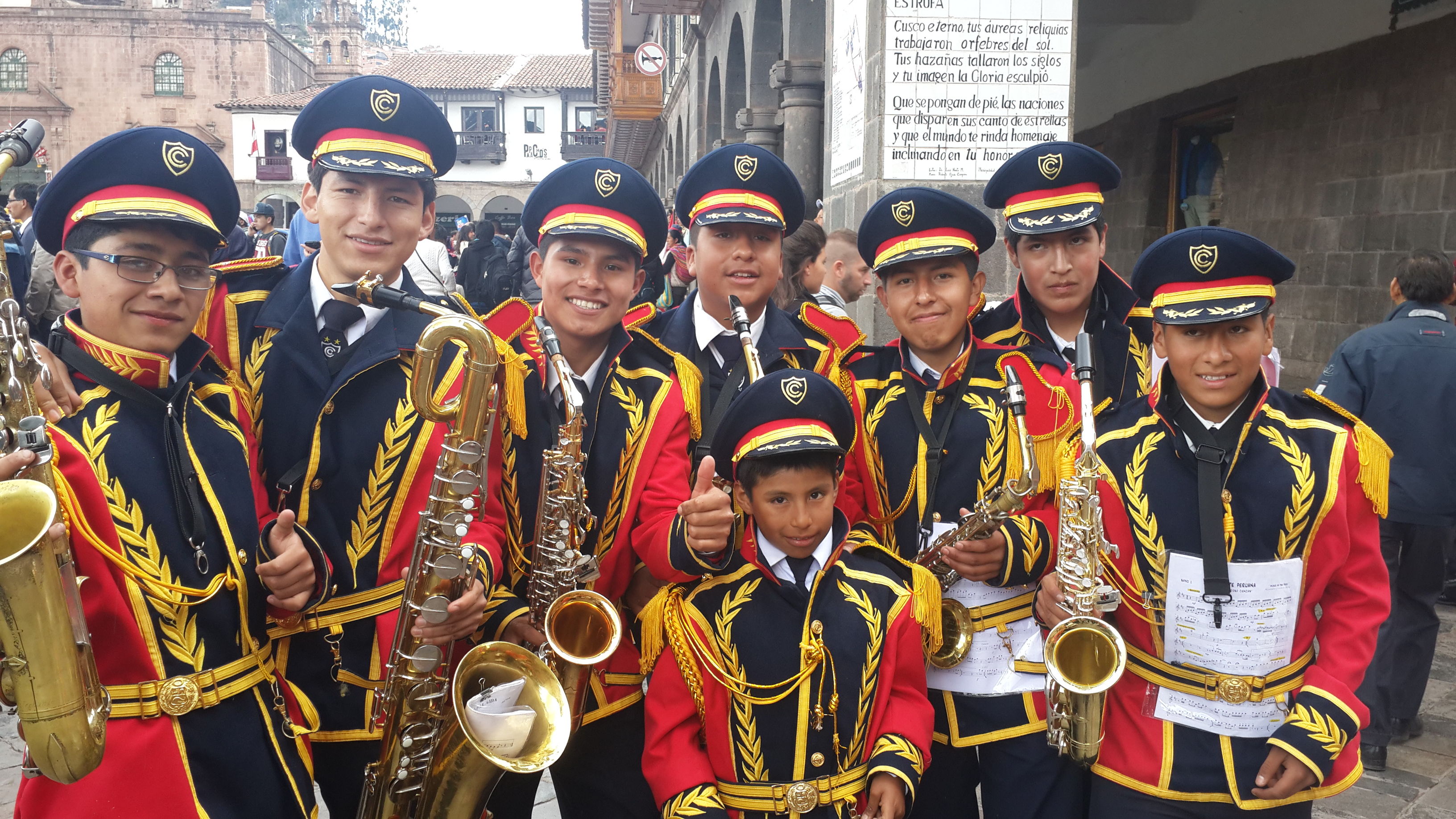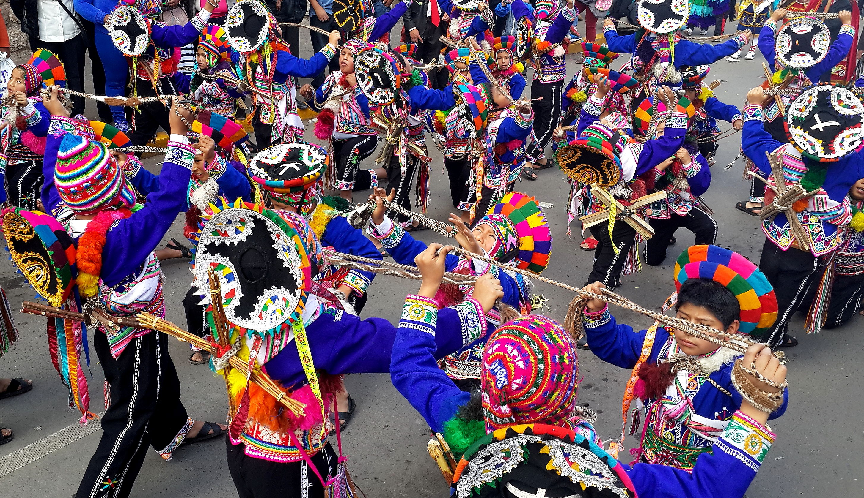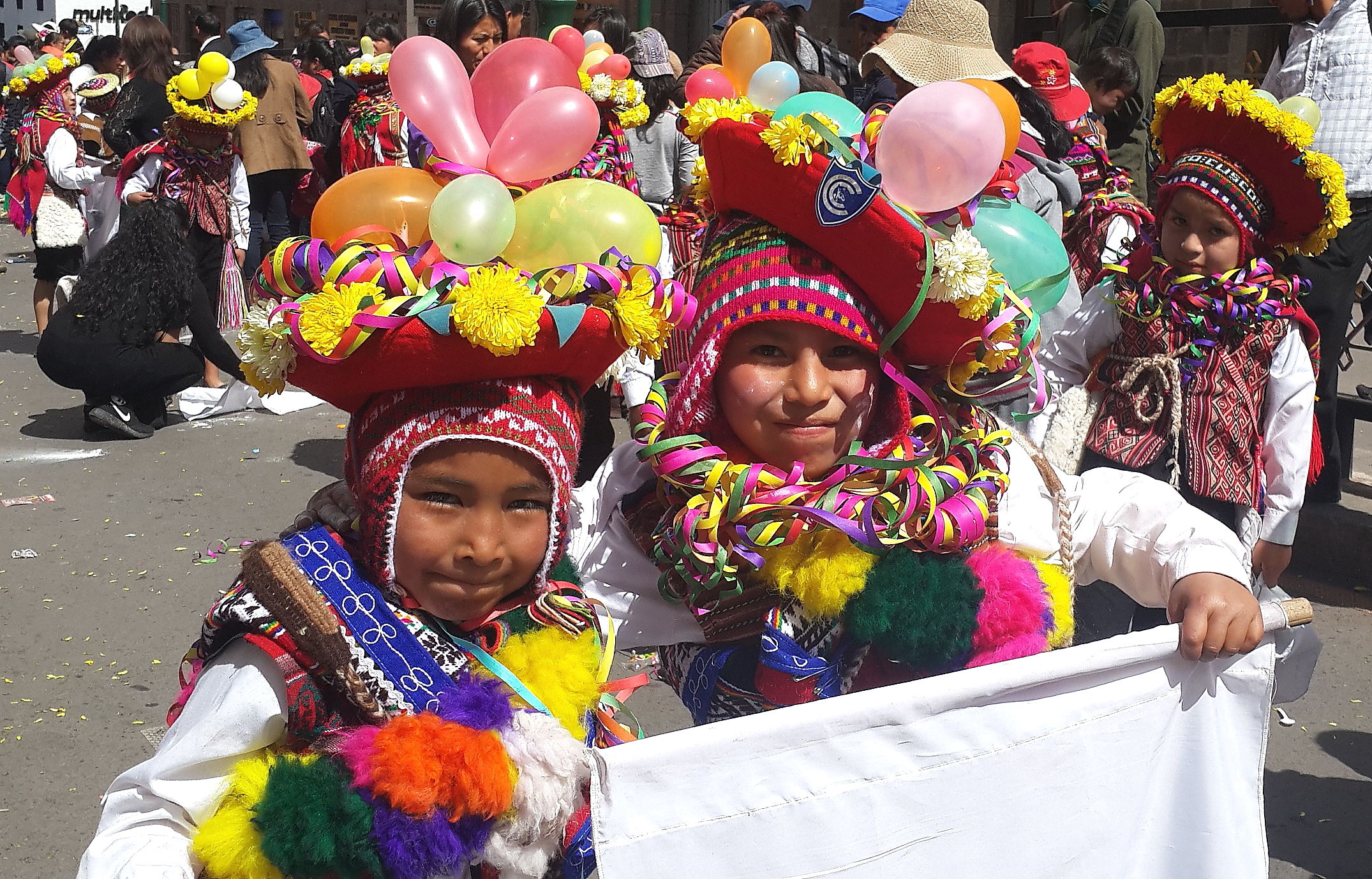 Arrival in Cusco and we find another fiesta taking place. Not sure whether we have an uncanny knack for unwittingly finding these random events or whether they are ubiquitous across this part of South America; I suspect the latter is more likely. Cusco did not have the spangled street-party that we found in Sucre, or the military march that we found in Puno, but a loooong afternoon procession of dancing kids. We realised after a while that it was curiously all little boys, aged between around 8 and 12 years old. Like many little boys of that age, they were not all wholly enthusiastic about dancing through the street in brightly coloured traditional outfits. What is it with ambitious parents of the world??? As with the famous soccer-mums of the western world, the less enthusiastic of these little boys were shuffling awkwardly, followed all the way through the town by red-faced mothers screaming wildly over the band-music “Juanito, baila, baila!!!” (dance, dance!).