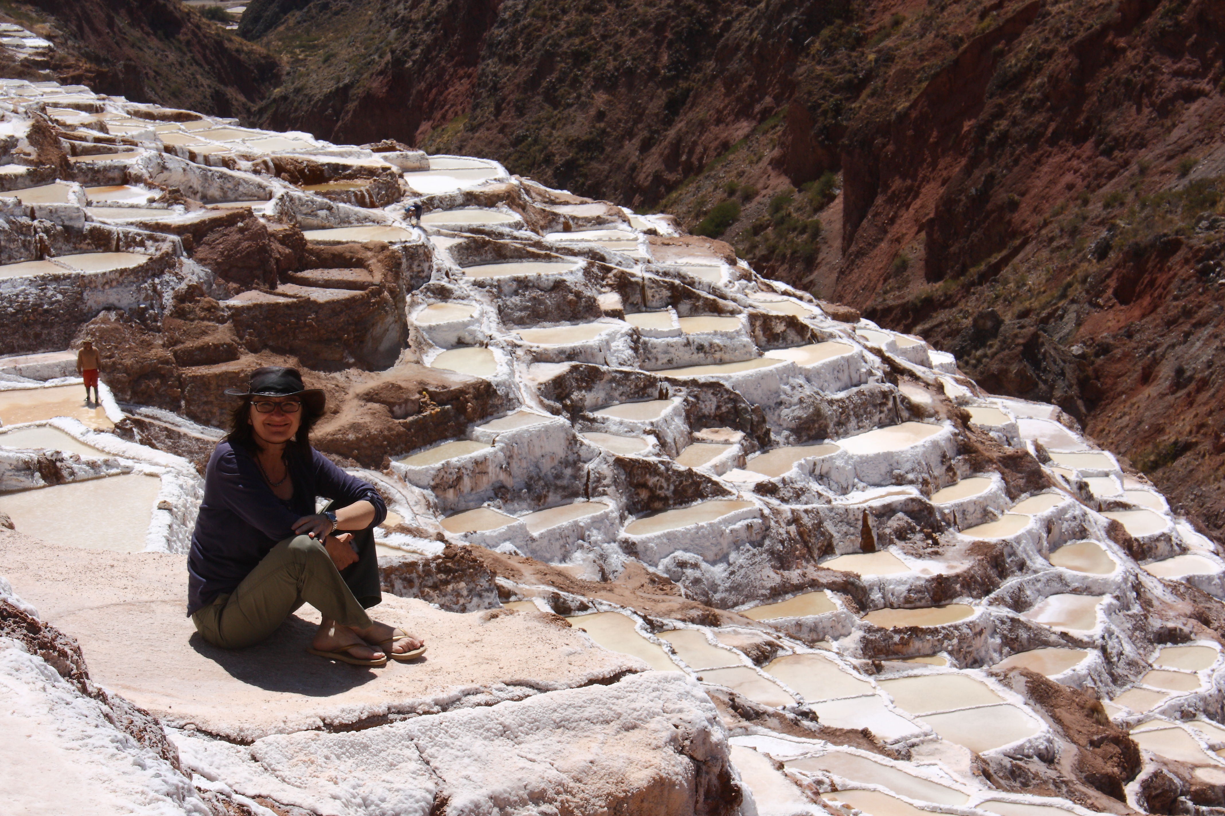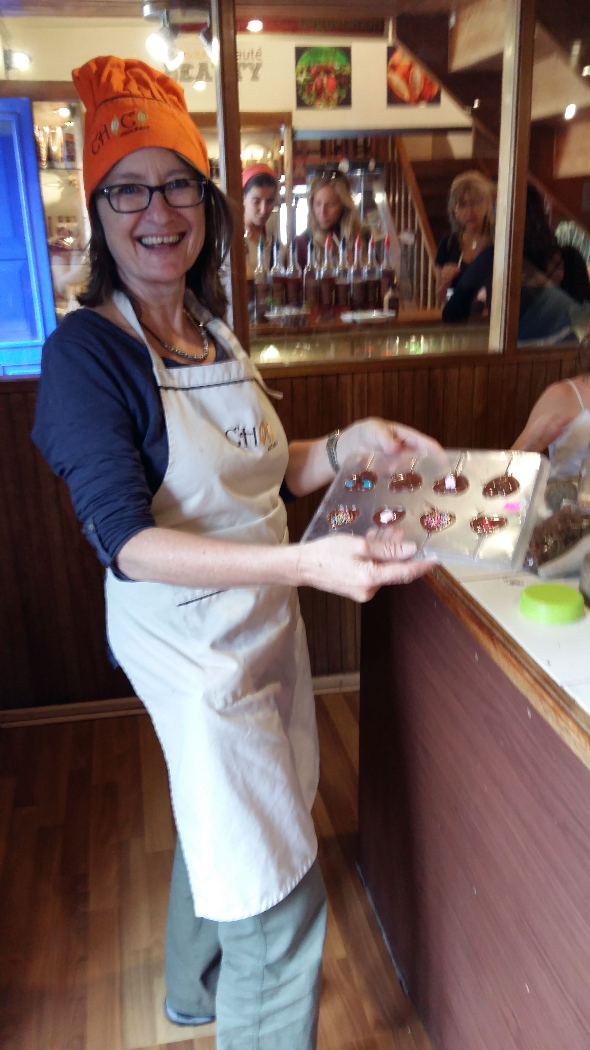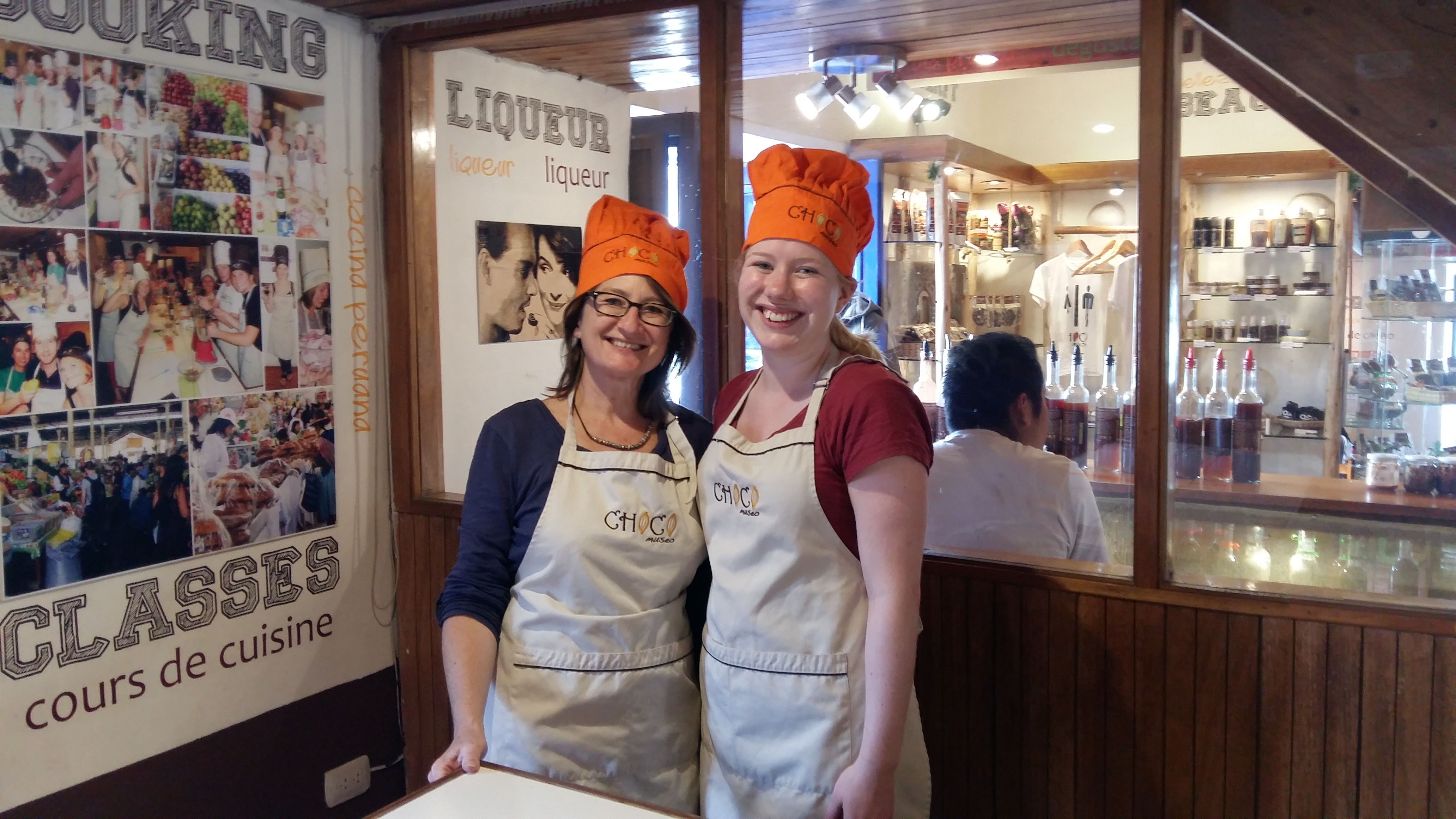 So there is Inca and colonial history and all that interesting stuff in Cusco, but there’s much else to do too. An advert for a chocolate course caught my eye. Not really Marcus’ thing, but never let it be said that I willingly decline any chocolate-related opportunity that presents itself to me. I turn-up to meet my co-student, Katie from England and the two of us have a great time with choco-maestro Miguel showing us the process, roasting and pummelling cocoa beans. We make a selection of yummy chocolatey things, but find the presentation-skills aspect not quite as easy as it looks! I am now, even more than ever, totally in awe of the skill of my friend Becky Taylor in UK, the chocolate-queen with her beautiful hand-made choccies (www.chocsaway.co.uk).