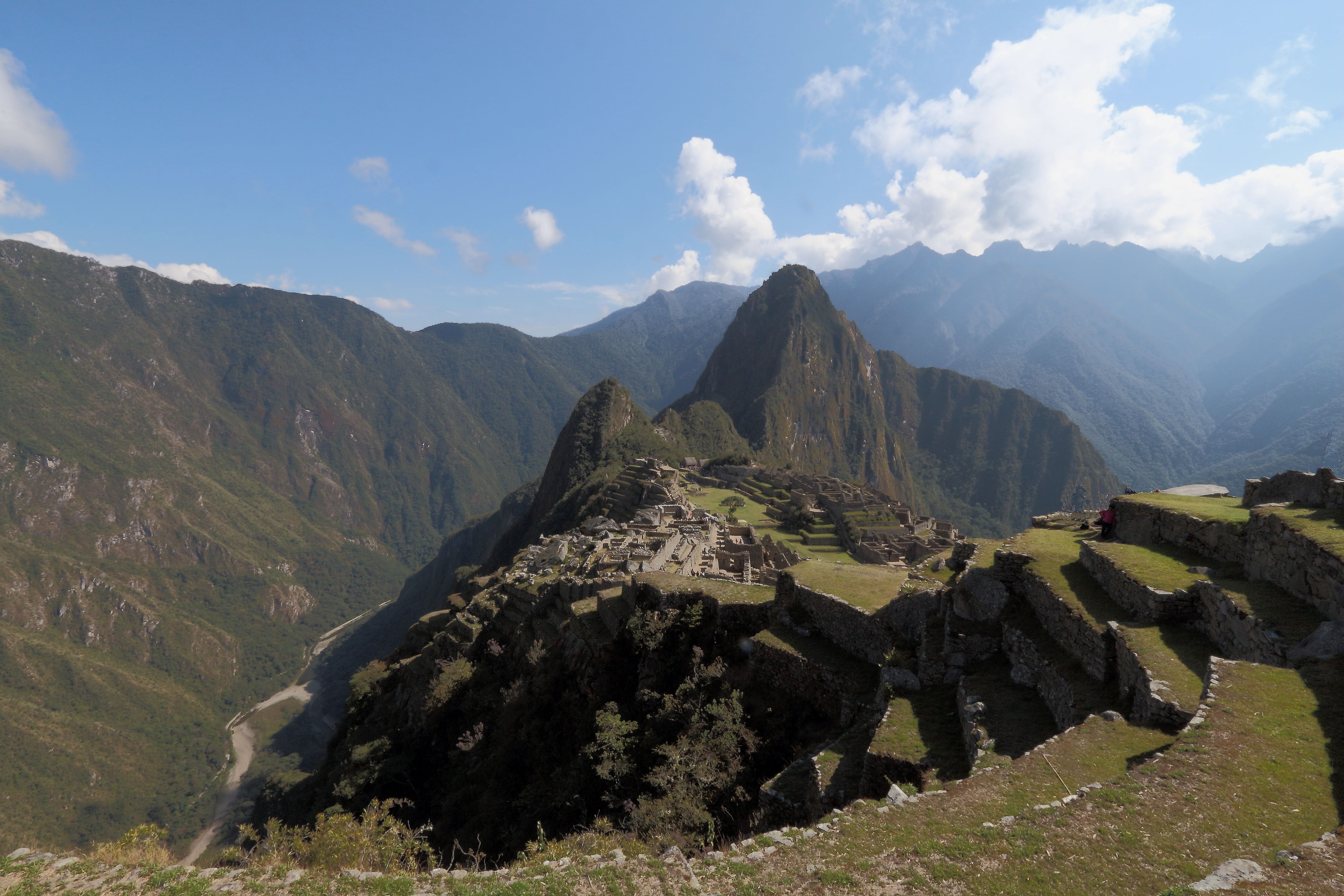 Getting to Machu Picchu can be done the easy/expensive way (by train) or, if you have the luxury of time and your own vehicle, the complicated/cheaper way. This involves some driving through stunningly scenic countryside and a lovely 2 hr (flat) walk down a beautiful winding valley, taking in views up to Machu Picchu from the side most visitors don’t get to see. We really enjoy the walk and decide to stay the night in a hotel in Aguas Calientes at the base of Machu Picchu mountain to give ourselves more time in the area. The entry to Machu Picchu is only around US$37 and we waited a total of less than 10 mins in queues. Not bad huh? In many western tourist attractions the queue is longer than that to get into the ladies’ loos! The ruins are very interesting and those Inca chaps certainly knew how to pick a spectacular location for their pads – it’s almost as if they had the 21st century ‘happy-snap’ selfie in mind when they built that place 🙂 All in all, a top-trip and we’re chuffed that we went.