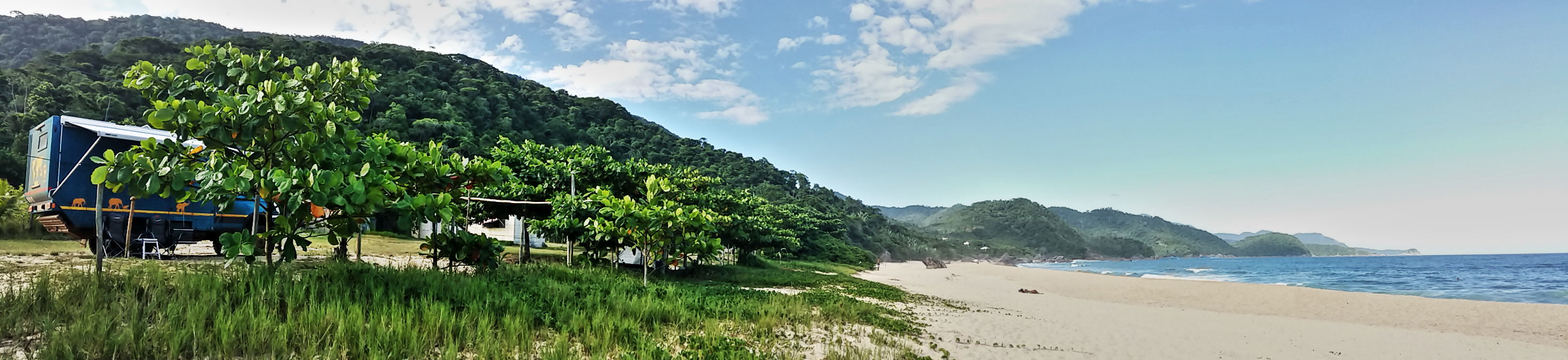 Circumnavigating Sao Paolo isn’t quite as bad as we feared and soon we’re past it, dropping off the high ground and looking out over the South Atlantic Ocean for the first time since Tierra del Fuego just over a year ago. Same ocean, same South American eastern coastline, but the sky and the sea are both a lot bluer up here in the mid-summer tropics. This section of coast for 350km south/west of Rio de Janeiro is known as the Costa Verde and it is indeed very green! Travel books say this is a beautiful drive with tiny islands and literally hundreds of stunningly beautiful beach coves cut into the rainforest shoreline. We can happily report that the books aren’t wrong. Our only problem is deciding which of the many beaches to stop and camp by – can’t do them all!