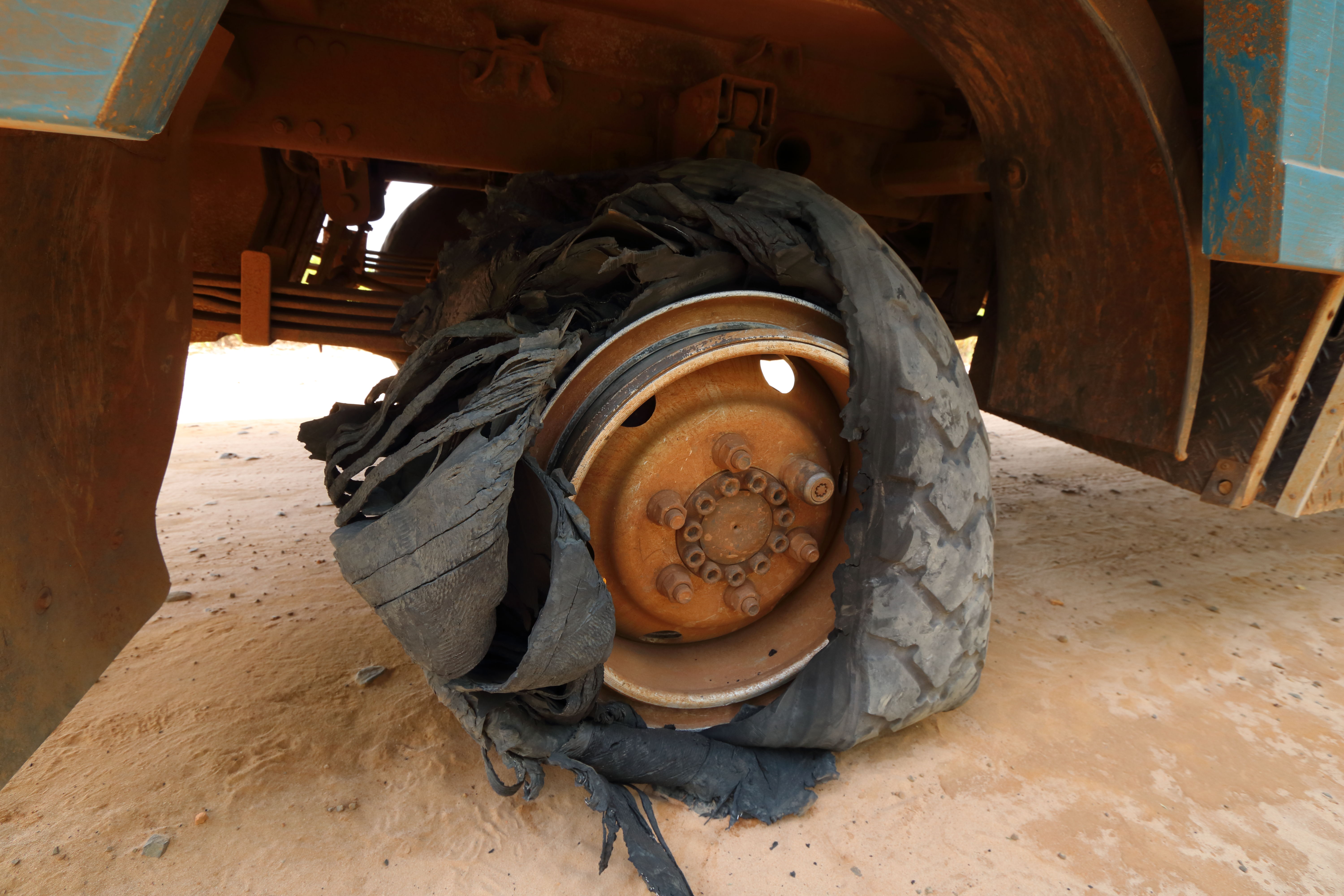 After around 800km we spot a small icon on the open-source mapping indicating some caves around 20km off the main road. At this stage of the journey, anything to break the tedium is attractive so we turn-off down a rough dirt track to investigate the site, optimistic that we might just discover a hidden and little known gem! Some way down the track we notice a strange sound from Cuthbert and Marcus feels unsteady steering. Uh-oh! Flat tyre? Hmmm… perhaps the term ‘mangled’ rather than ‘flat’ might better describe the tyre’s condition! Luckily, if such word can be used in these circumstances, it’s one of the tyres that is nearing the end of its life and was going to be replaced in a few hundred kilometres anyway. Marcus sweats away changing the tyre in the toasty 35C afternoon sunshine whilst an ancient, sun-wizened local farmer stands over him offering what we believe were intended to be helpful words of advice in rambling Portugese.