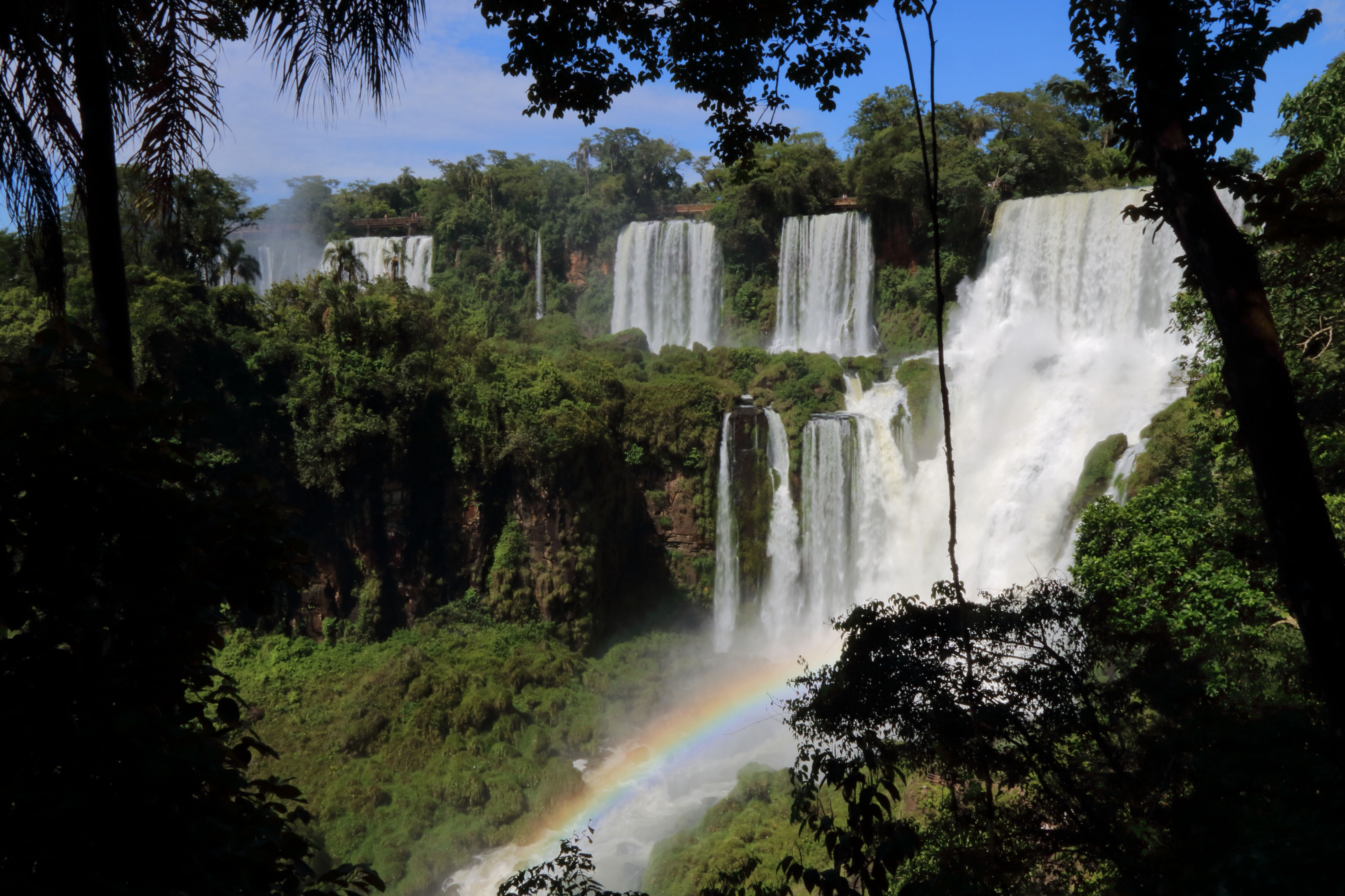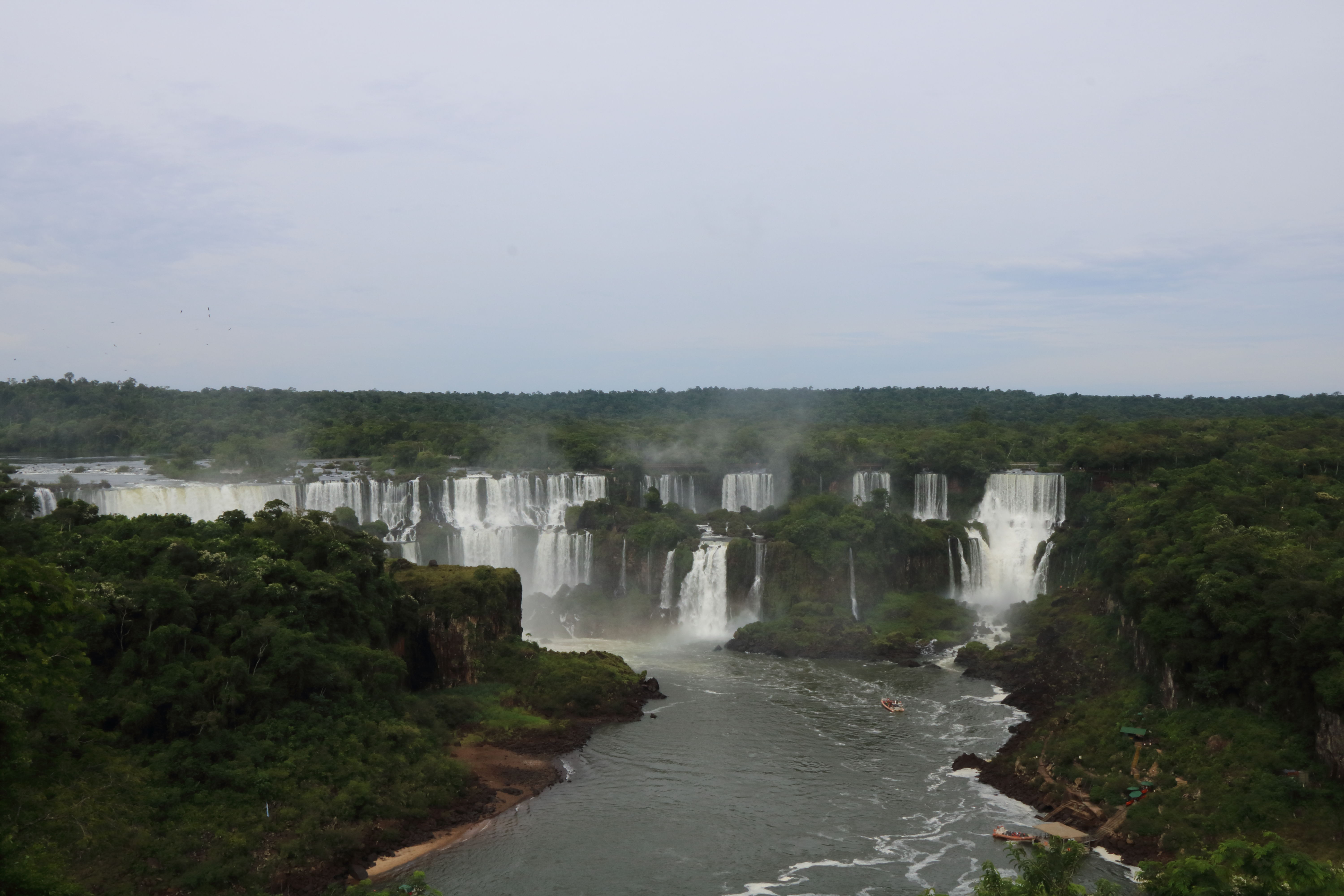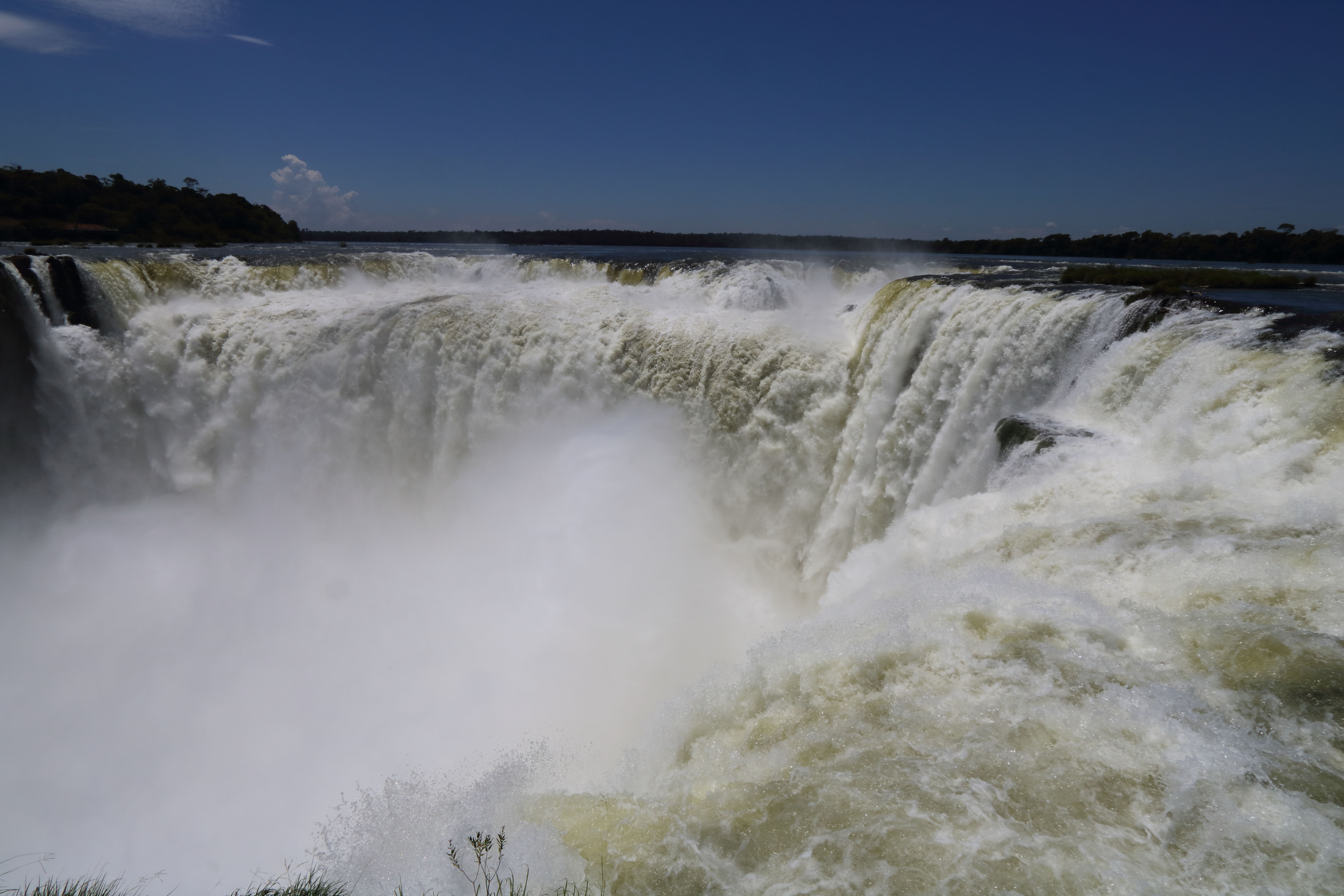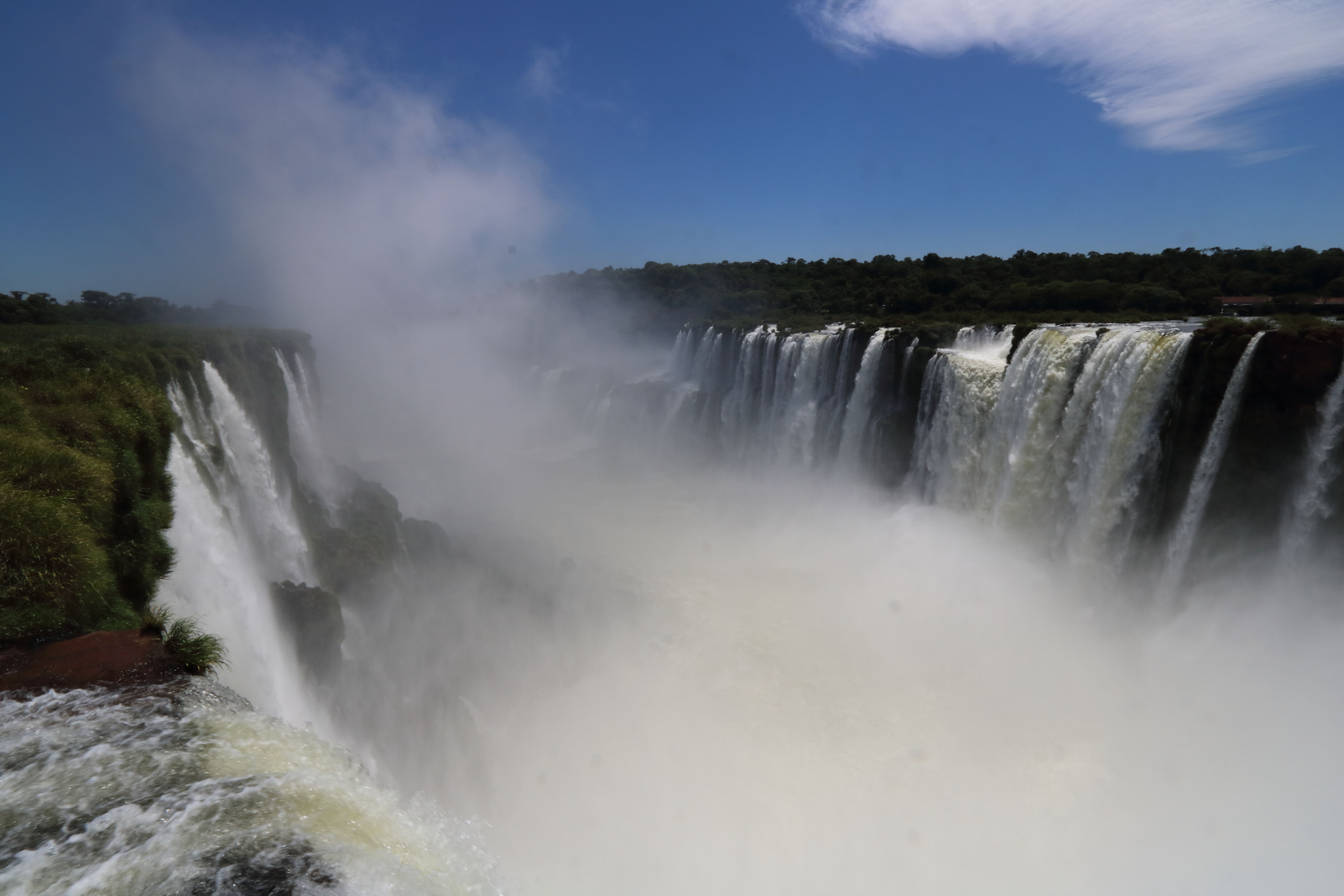 Iguazu Falls sits on the Rio Iguazu on the border between Argentina and Brazil. As with Victoria Falls sitting between Zimbabwe and Zambia, at Iguazu there are very different views from each side of the river, so it’s worth the effort to cross the border and visit from both sides. On the Argentina side we have fabulous sunshine and clear skies. Next day, on the Brazil side we have dull, grey, overcast skies. We’ll leave you to guess which photos are taken on which side of the river 🙂