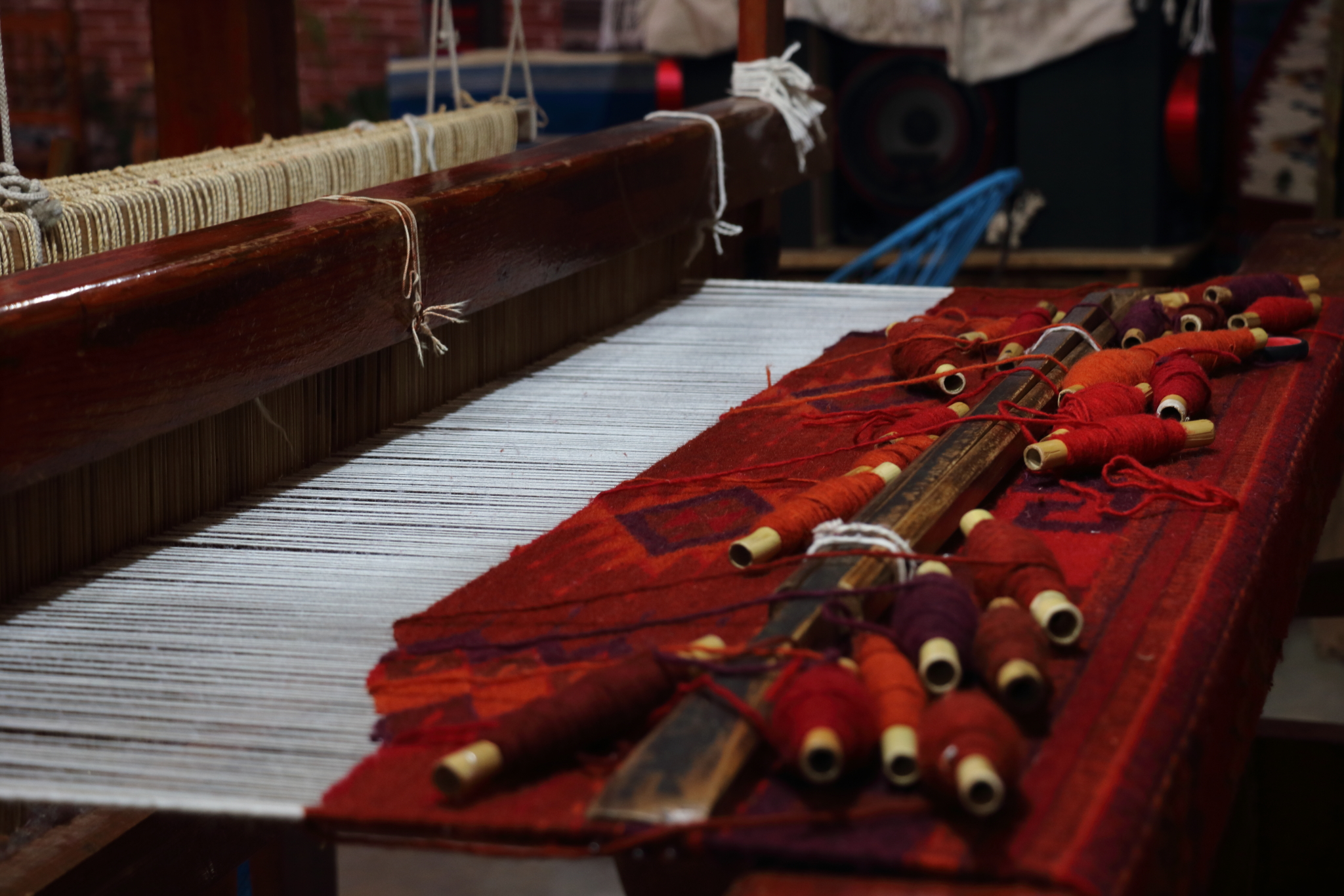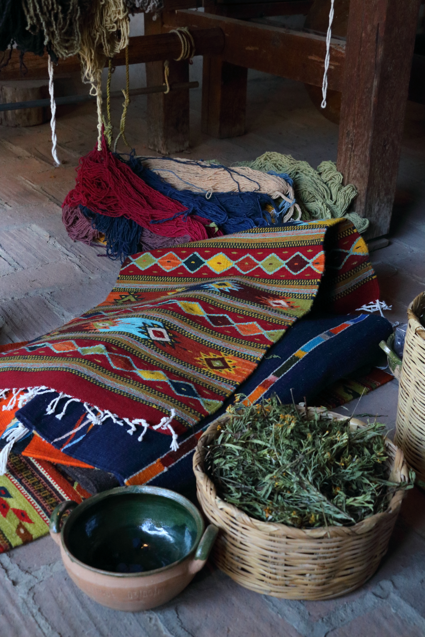 With a micro-finance loan, Soledad and her mother invested in the materials to make their own dyes. They use natural substances like indigo, cochineal and pomegranate. With the dyes made by her mother, Soledad showed us the importance of precise timing (to the second!). Immersing yarn into buckets of dye will bring out different shades and depths of the same colour. There is both an art and a real science to the skill of these ladies. The rugs they ultimately produce are exquisite in both pattern (some traditional, but many her own designs), colour and weave quality.