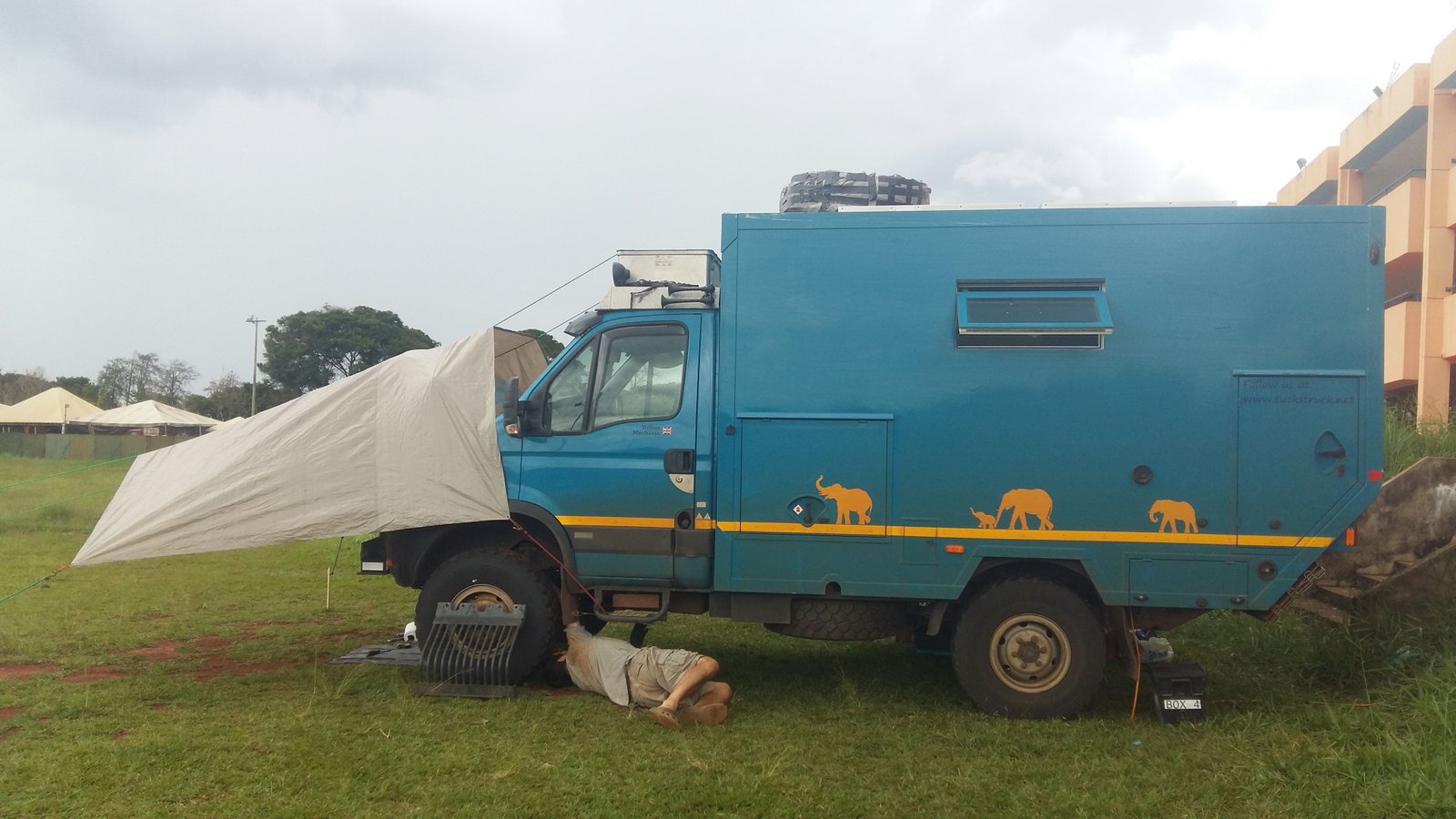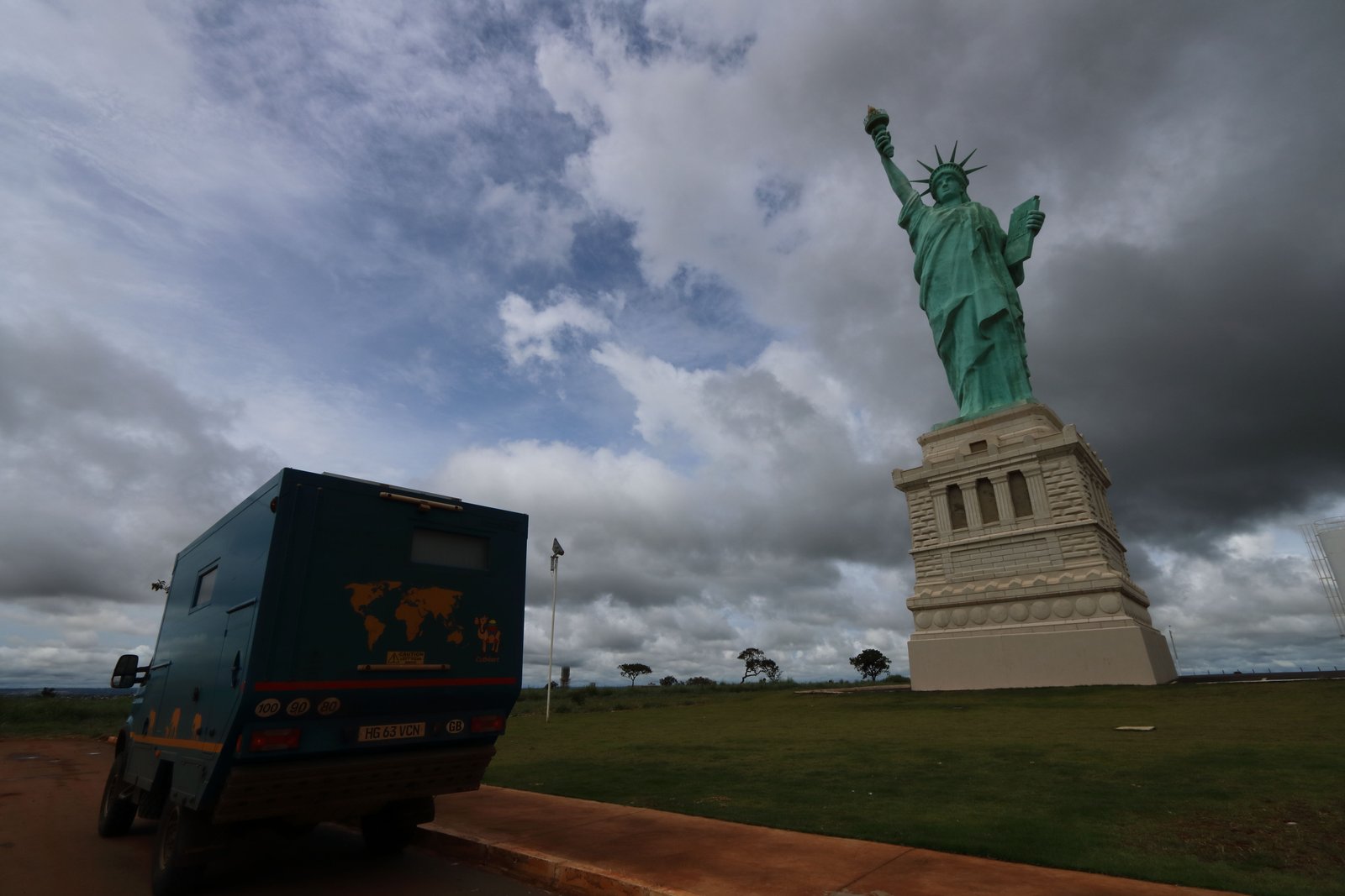 Just before Brasilia, Cuthbert had passed his milestone 120,000 km, so parked-up in a quiet field behind the city’s Youth Hostel seems as good a place as any for Marcus to do Cuthbert’s routine health-check. The 120K is a biggie service, so it’s going to take a couple of days. There’s quite a lot of rain at the moment, so Marcus erects a make-shift tent over Cuthbert’s bonnet to work in the dry. Ingenious! All goes well except that one of the glow-plugs refuses to come out of its hole (yes, I’ve got all the technical jargon here 🙂 ) and needs a special tool to extract it. We take Cuthbert to a nearby workshop, but have you ever tried explaining such a task in Portugese? We find the only way to clarify the issue is for Marcus to strip the engine in front of the mechanic to physically show him the problem, but the chap concludes that we’re unlikely to find such a tool in Brasilia. Helpfully, he suggests that we might find such a tool in Sao Paulo maybe. Yeah… thanks for that… it’s only 1,000 km away!!! In the end, Marcus decides that we can carry the snag for now. It’s only likely to be a problem in very cold weather and we’re not going to see any of that for a loooong time!
