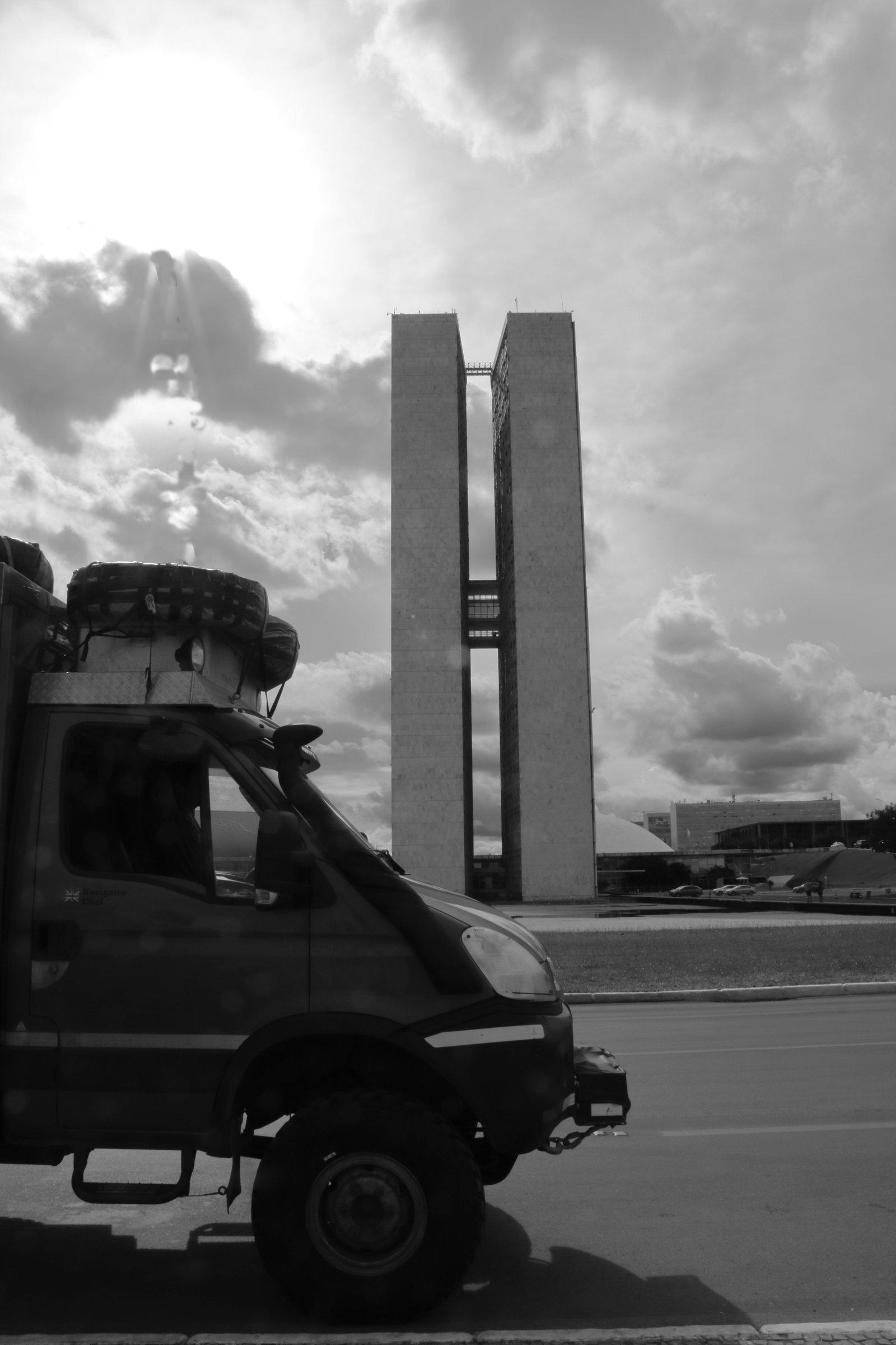 One the alleged ‘must-see’ tourist-ticks of Brasilia is the monument bearing the eternal flame. Unfortunately, we find said flame to be not so eternal and it looks as though its eternity ended some time ago. After visiting the not-so-eternal flame, we wander back to Cuthbert and two police officers approach us “You’re Julie and Marcus… right?” OMG… what on earth have we done? 🙁 “We looked at your blog-page… we love Cuthbert” Phew… the website is written on the truck! Diana and Rodrigo turn out to be the friendliest cops in Brazil and insist on taking a selfie to share on Facebook. Later we see that the PR department of the Tourist Police of Brazil is also sharing the pic on their official FB page. Brilliant!