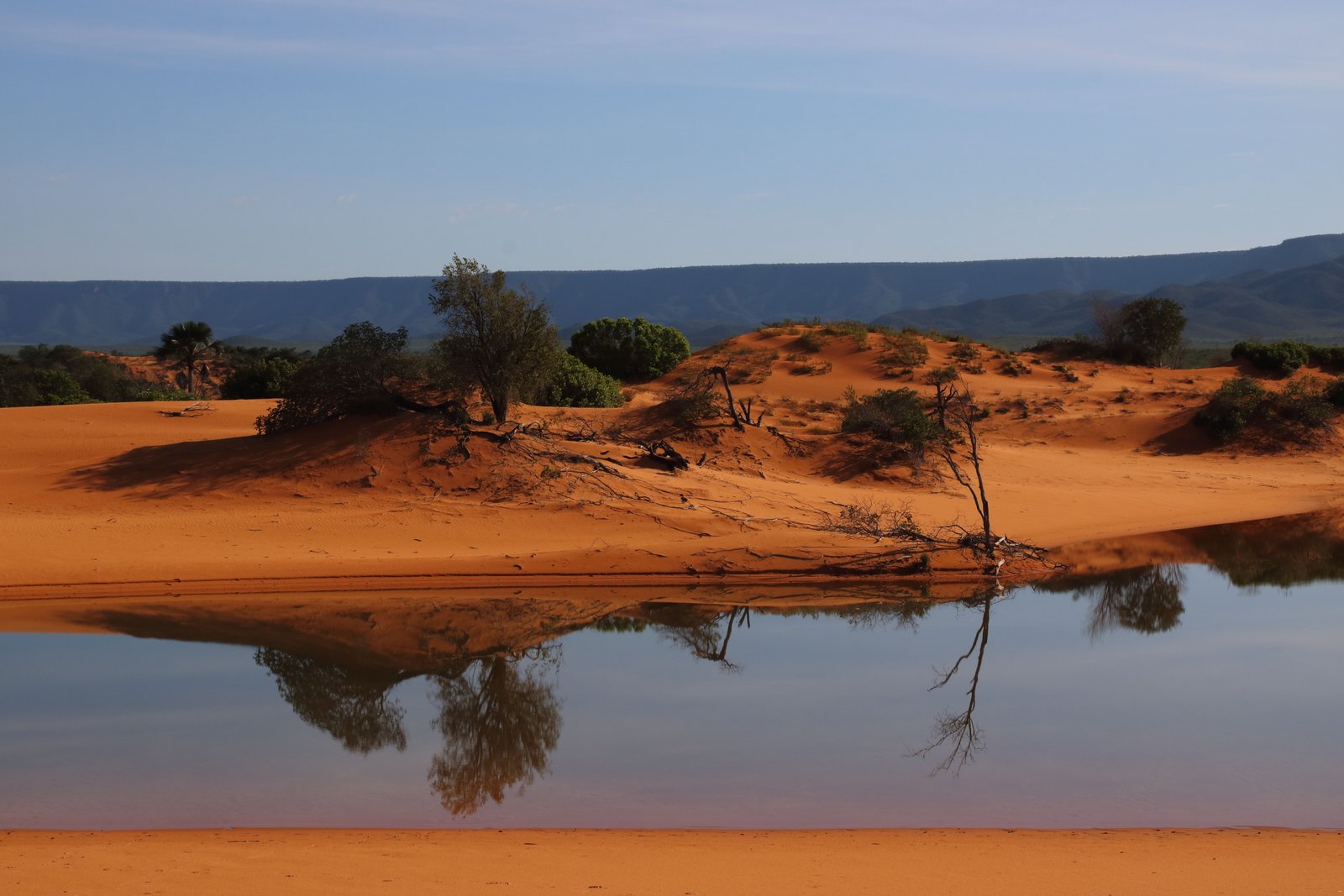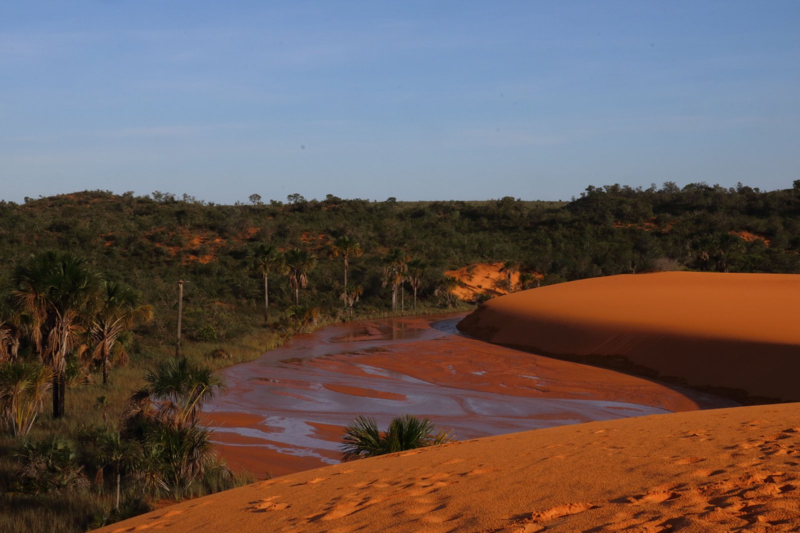 Over 800km north of Brasilia (another long tootle up the road) is the national park of Jalapão. It’s remote, and the last 100km to reach it are on rough tracks. But we are reliably assured by locals in Brasilia that it’s the up-and-coming, destination-of-choice for adventurous Brazilians and far less touristy than the popular Chapada Diamantina Park over to the east. They show us beautiful photos on their phones of desert dunes with sparkling fresh-water lagoons; waterfalls into natural swimming holes with crystal-clear turquoise water. Okay… they convince us… we’re doing an 800km detour to see Jalapão.