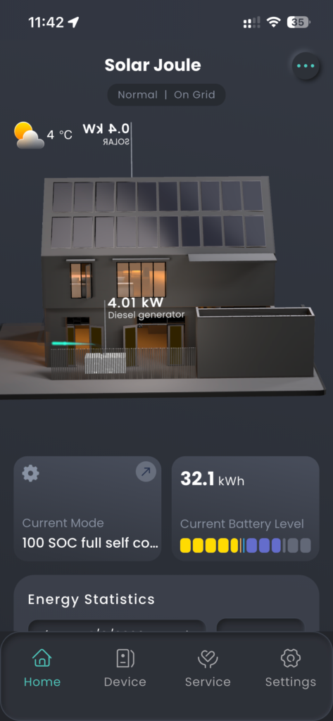 However, managing it manually is tricky with a 5.5 kW inverter, you must adjust the car charge rate if using kettle/etc. to prevent overload. Now, with the DC EV charger fully integrated, this isn’t needed – DC charging pulls directly from solar/batteries without inverter load.