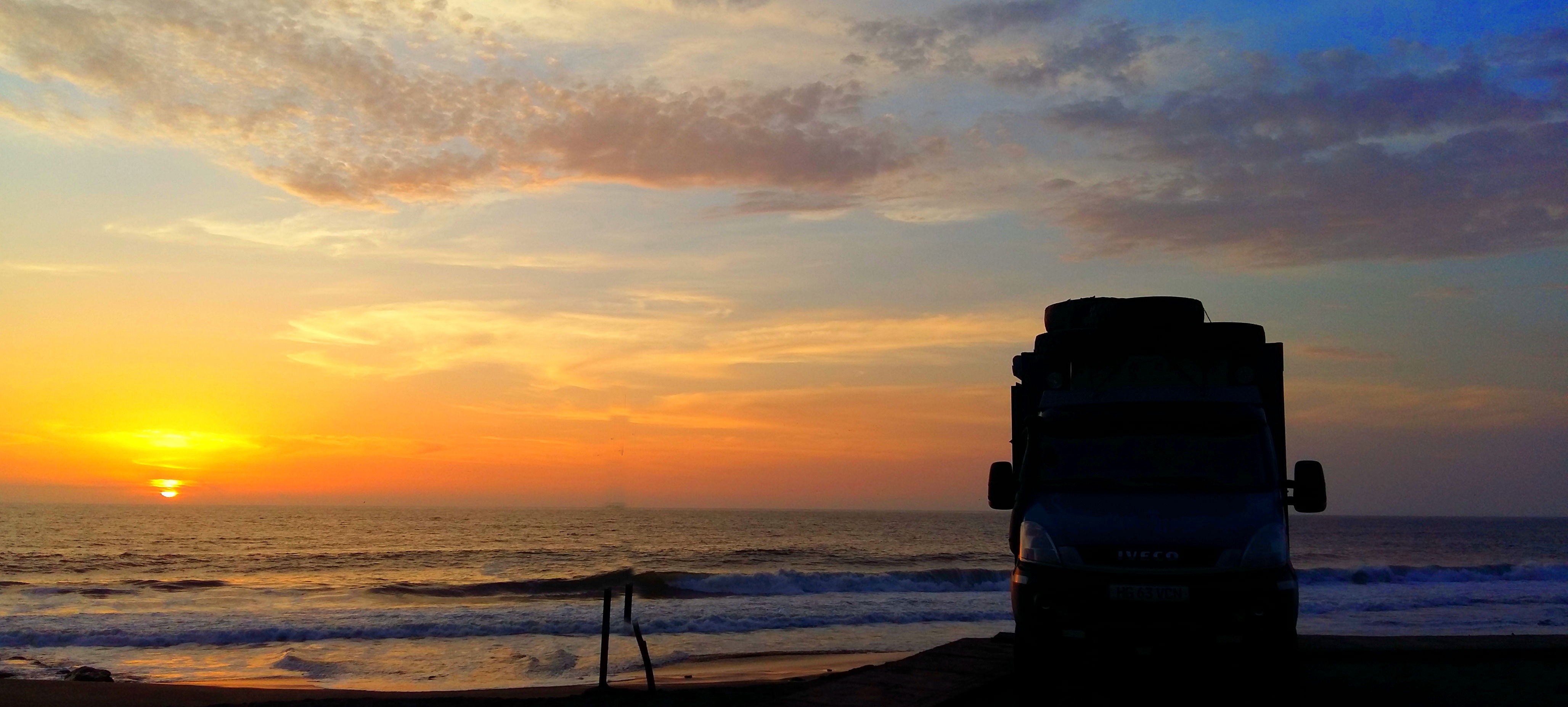 After stocking up with yummy goodies in Arica on Christmas Eve, we head down the coast to a small beach south of town. A lovely spot, perfect to park-up for a Christmas. We settle-in to our Christmas camp and put up a few bauble-decos in Cuthbert for the seasonal spirit. It’s a beautiful warm evening and as the sun sets we sit out on the sand with a pile of freshly grilled garlic prawns and a bottle of bubbly whilst watching seals in the surf in front of us. After mince pies for pud, we settle down for the night, falling asleep to the sound of the waves and keeping one eye open for a sleigh heading in over the Pacific 😉 All is calm… that is, until around 05:30 hours.