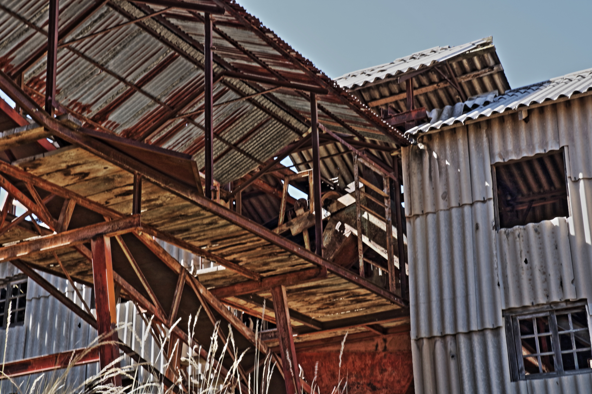 The fences have fallen in many places, so we scramble through to have a look around this fascinating relic. An old, toothless chap approaches us with his herd of llamas. He has lived on the hillside all his life and used to work in the mercury section of the mine. We offer him a cup of our Yorkshire Tea (which he politely declares to be delicious!) and he tells tales of the mine’s history. There was once an attempt at restoration for posterity, but a party of students came up from the city and smashed the place up in a drunken brawl! That was the end of that 🙁