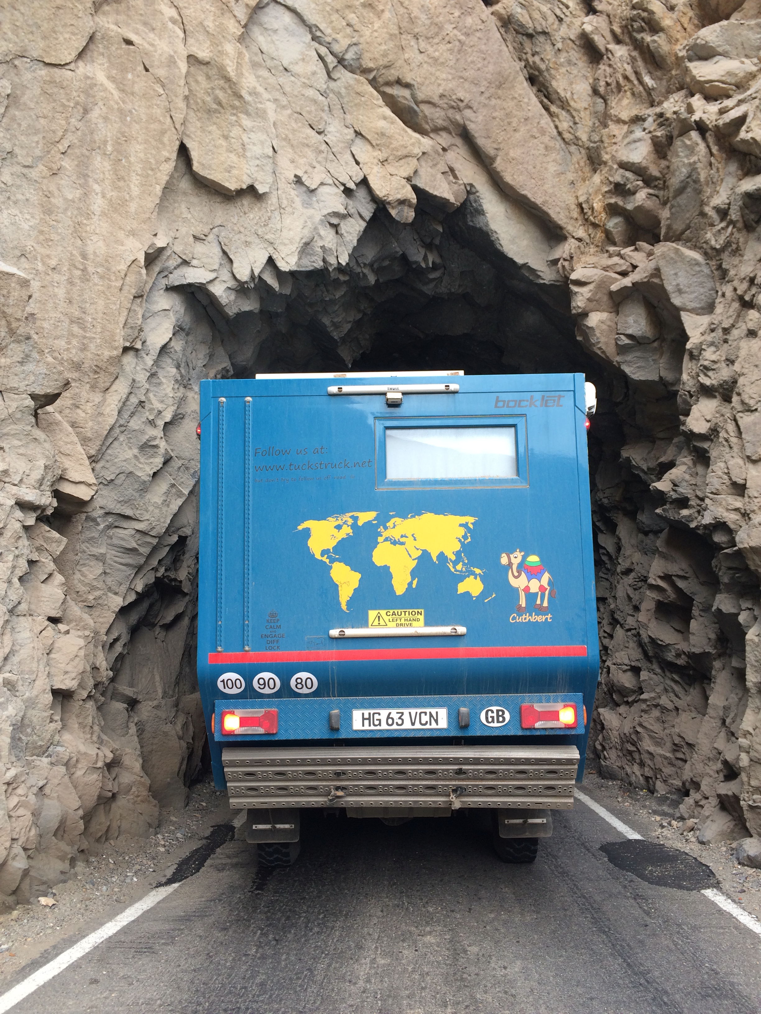 We mentioned it’s slow on them-there tracks of north Peru. Is it slow because it’s rough? No, not really. Or very steep? No. It’s slow because the road has been precariously cut as a ledge into a mountainside. And although it is (in theory) a two-way road, they didn’t waste much effort in cutting out space for vehicles to pass. In places, it is extremely narrow with sheer drops of hundreds of metres off the side. And for that added measure of excitement, there is a sprinkling of blind bends so you can’t even see if you’re going to meet another vehicle head-on around the corner. That’s why it’s slow going! On the descent sections, Marcus spends much of the time extolling the virtues of Cuthbert’s ‘amazing’ retarder braking system that he installed before we came to the Andes and he explains frequently how much more difficult it would be to handle these roads in Cuthbert without it. Meanwhile, I spend much of the time looking down the sheer drops feeling relieved that it is not me manoeuvring Cuthbert around the bends… but I should not have ‘counted my chickens’! The slow-going is about to get even slower.