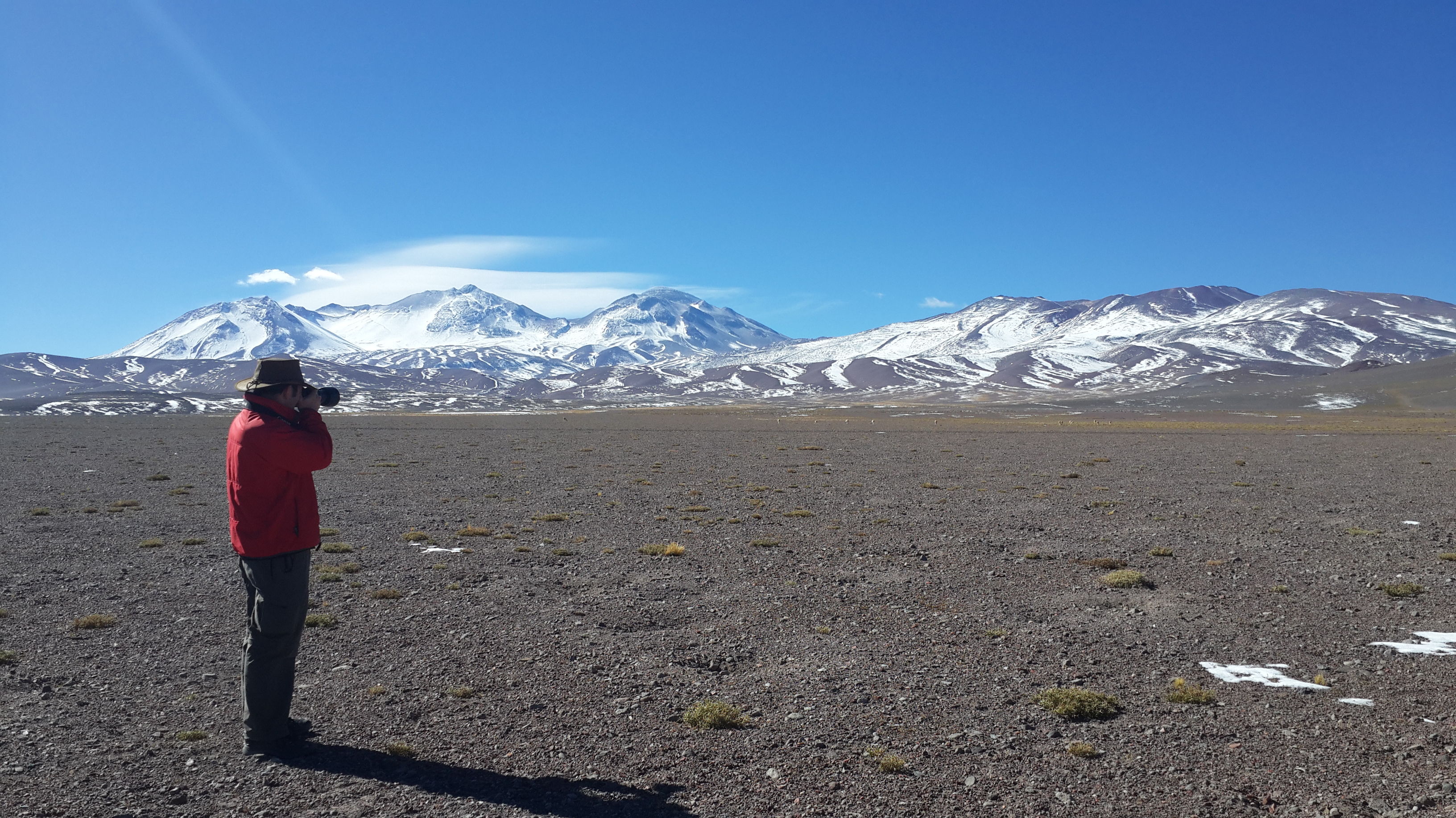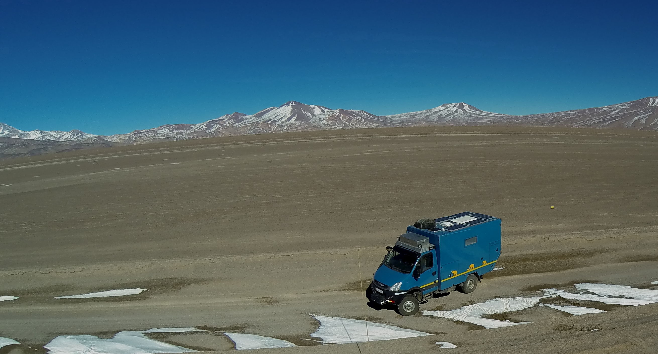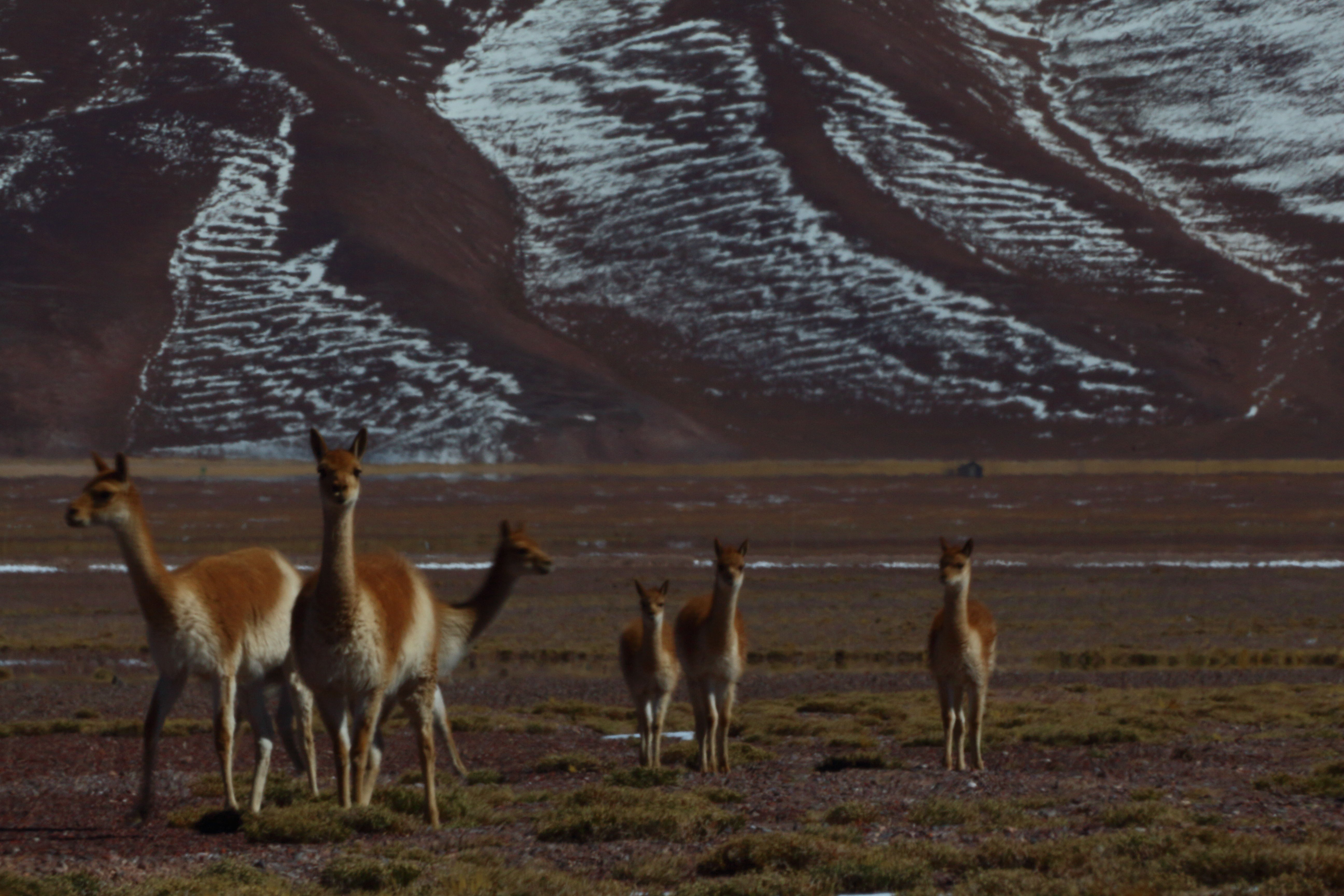 Remember we mentioned above that this is advertised as a ‘year-round’ border crossing…? Well the person who announced this should now be finding an extinguisher for their proverbial ‘pants on fire’! At the border-post a friendly police chap explains that due to snow some 40 km further towards the Pass, the border is not open today. They are apparently working hard to clear the snow and the Pass may open tomorrow. It is already late Thursday afternoon, so parking-up for the night on the lakeshore with stunning views of the surrounding mountains would not be any great hardship. Next morning we are told that it will not open until Saturday or Sunday, but there is some amazing countryside to explore with glorious sunshine and clear blue skies, so we are happy to hang around and explore the area for a couple of days. At around 13,000ft the thin air makes it a challenge for us to undertake any steep walks in the mountains, but we visited the nearby Nevada Tres Cruces National Park and found some gentle walks across the flat plains. We loved sitting in the sunshine on the high Andes plains, watching a small herd of vicuñas (the llama’s smaller and cuter relative) which wandered up to about 10 metres from us.