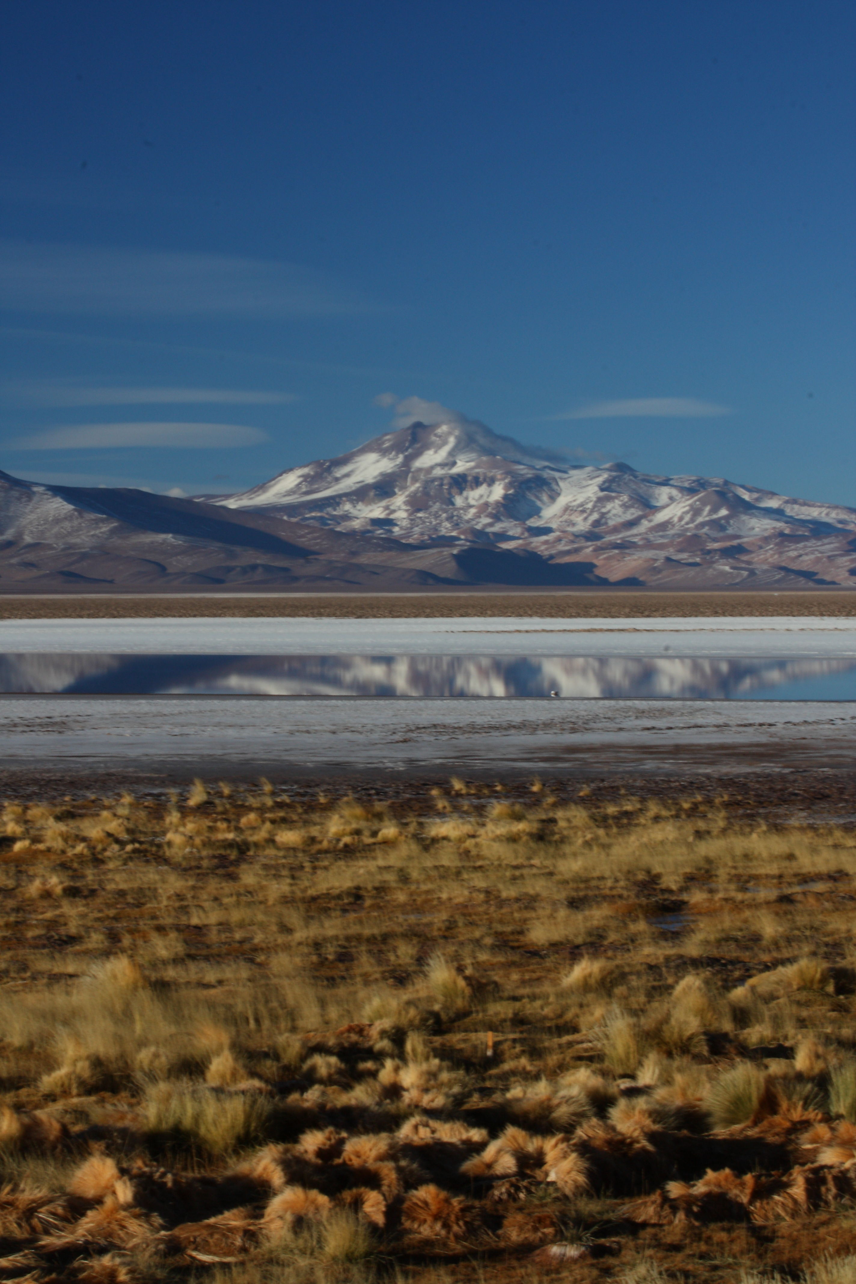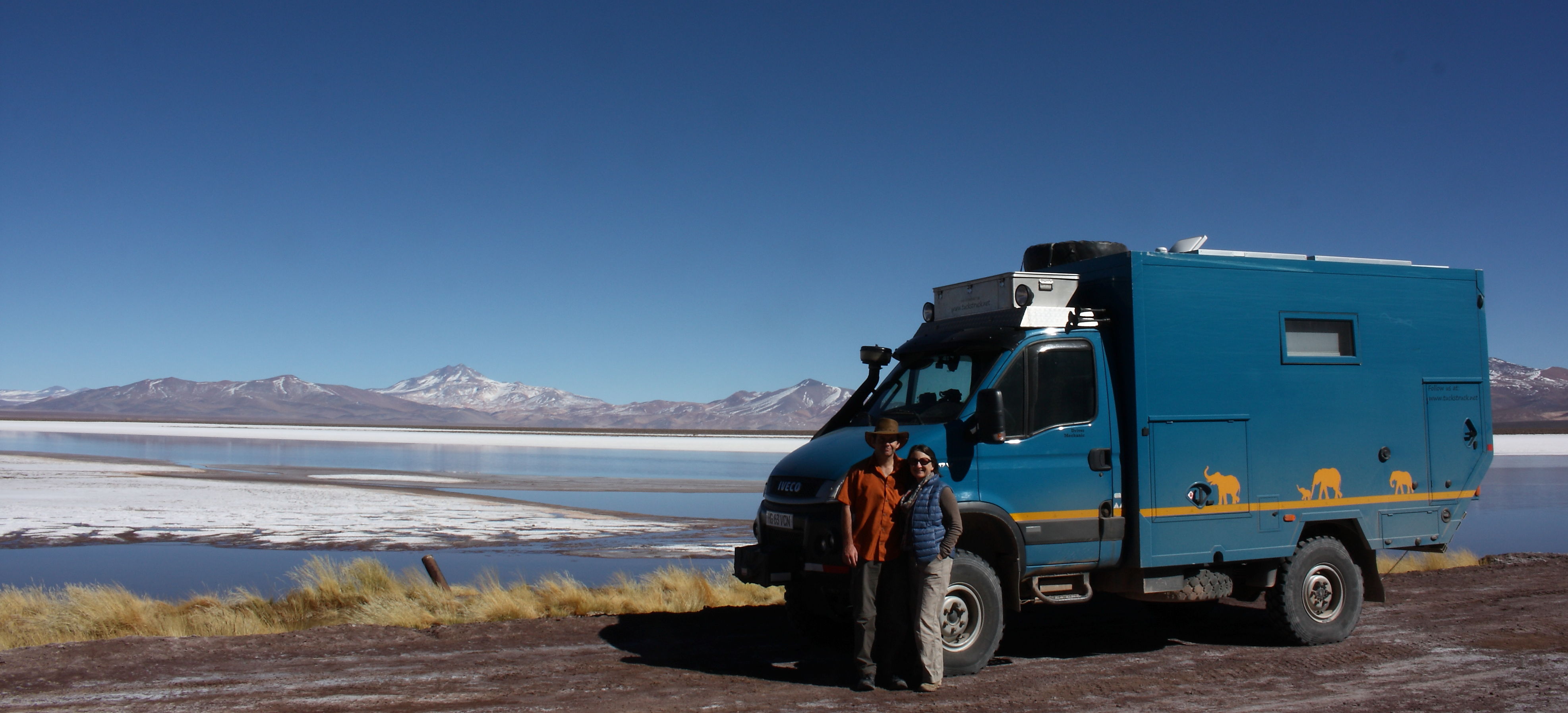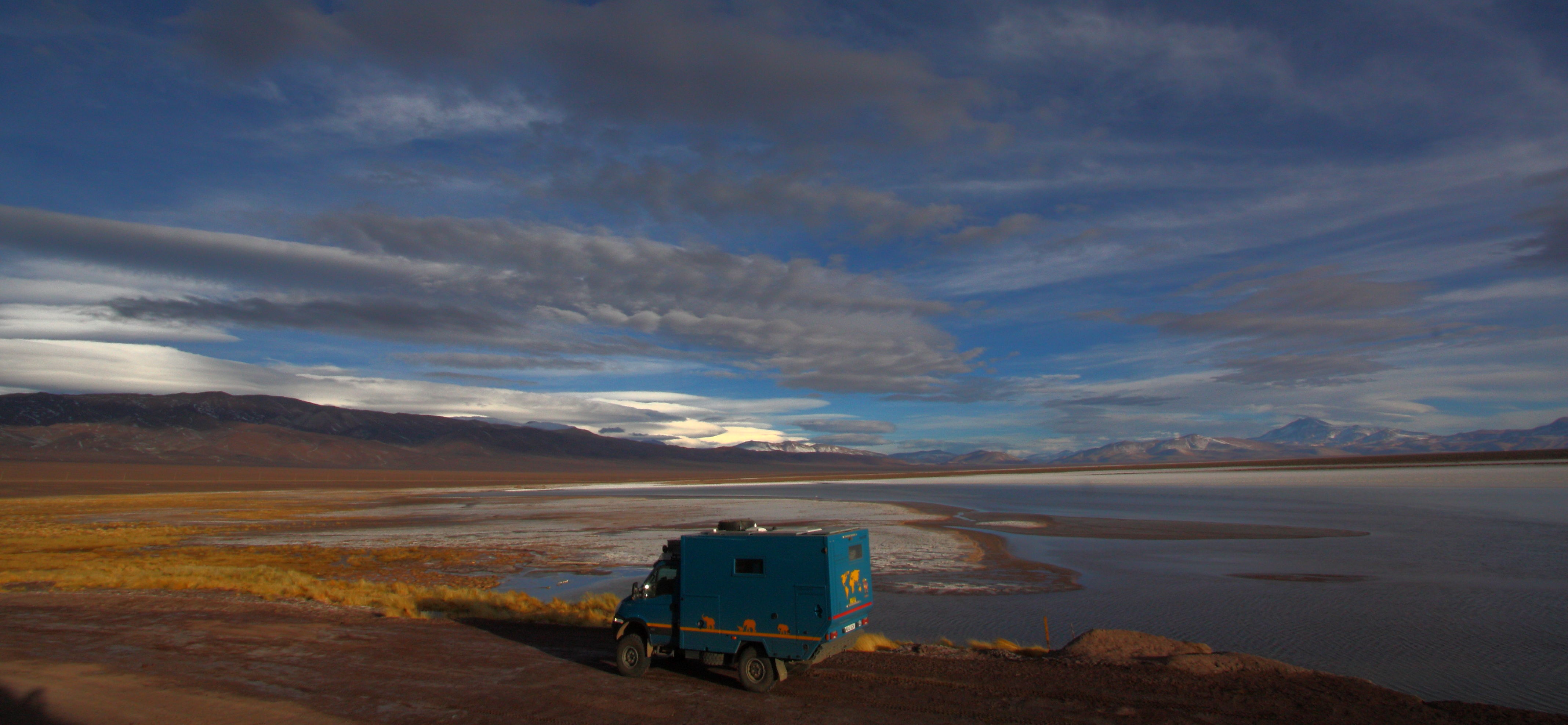 Eventually at around 4,000 metres a.s.l. we rounded a corner and our jaws dropped open… before us was the Chilean border post sitting by the huge Maricunga salt-lake, in the bottom of a huge shallow valley surrounded by snow-capped mountains. This ranks with the Sani Pass (South Africa to Lesotho) as one of the most beautiful border posts that we have crossed in our travels so far. After manually closing our dropped jaws, we continued down into the valley to exit the border.