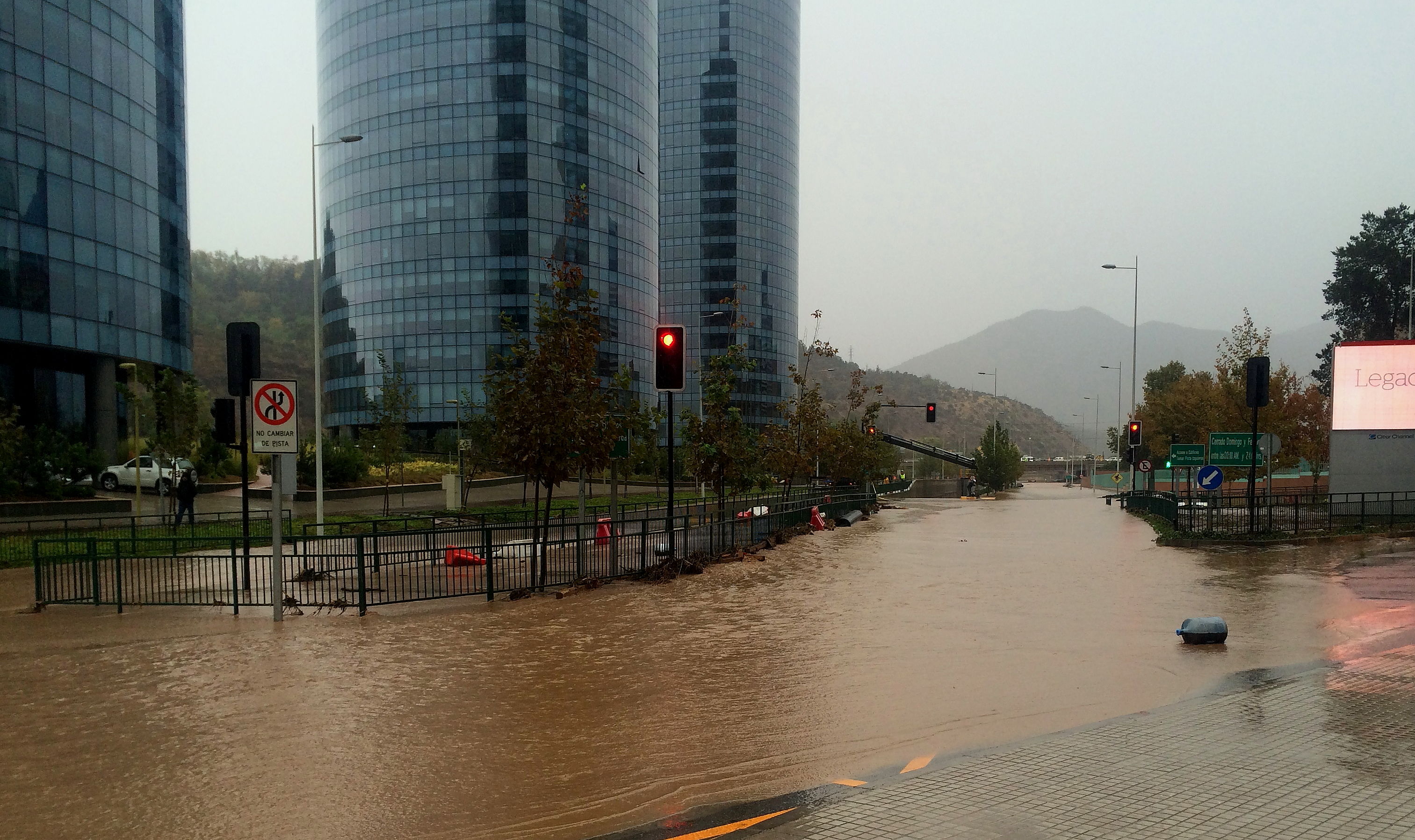 We were aware that on arrival back from Easter Island we would be in for a bit of a soggy time in Santiago – some serious rain was forecast. The rain that came however, was a few drops worse than predicted. Then there was the additional factor that the temperature was slightly warmer than is normal for the first rains of the season, so the precipitation didn’t settle as snow on the mountains. Instead, it washed down the slopes bringing mud-slides into the Mapucho River and the city. The city’s water system very quickly became contaminated with un-treated mud-slide water and the authorities switched off the water supply to over 80% of the city’s population. For over 48 hrs heavy rain continued and while the people struggled to cope without water supply, the city’s drainage system struggled to cope with the muddy floods. The few shops that could open, quickly sold-out of bottled water and all the cafes, bars and restaurants were forced to close. Soon the electricity also had to be switched off to several areas of the city. It was, to put it mildly, all a bit of a pickle. But there was more pickle to come!