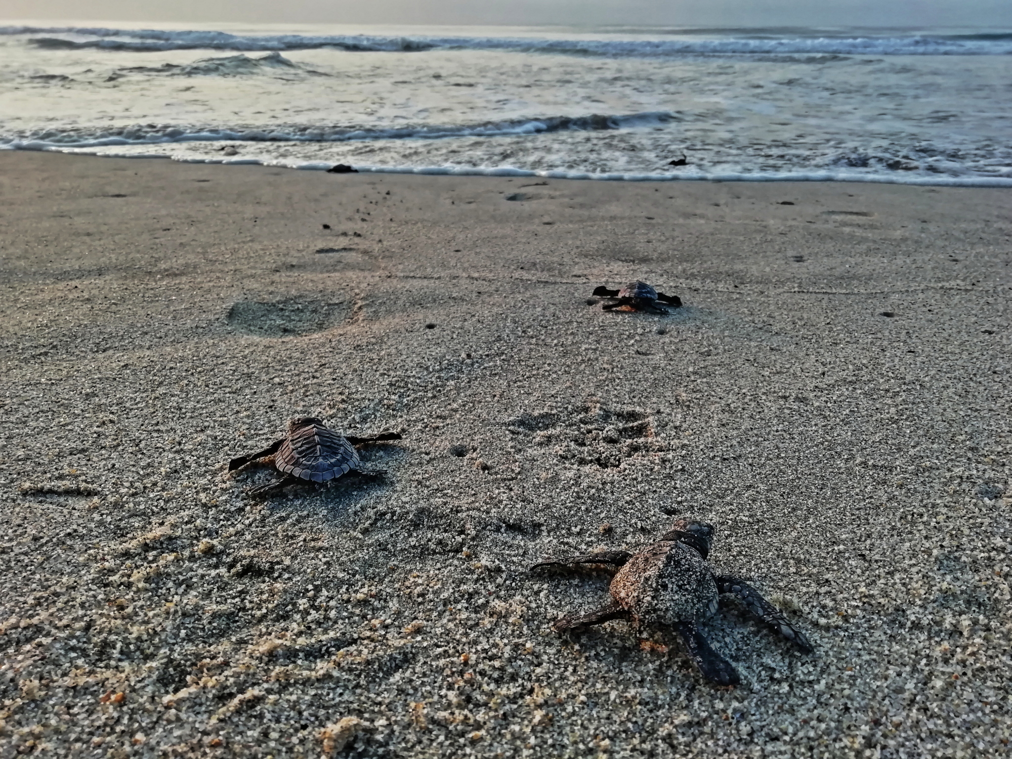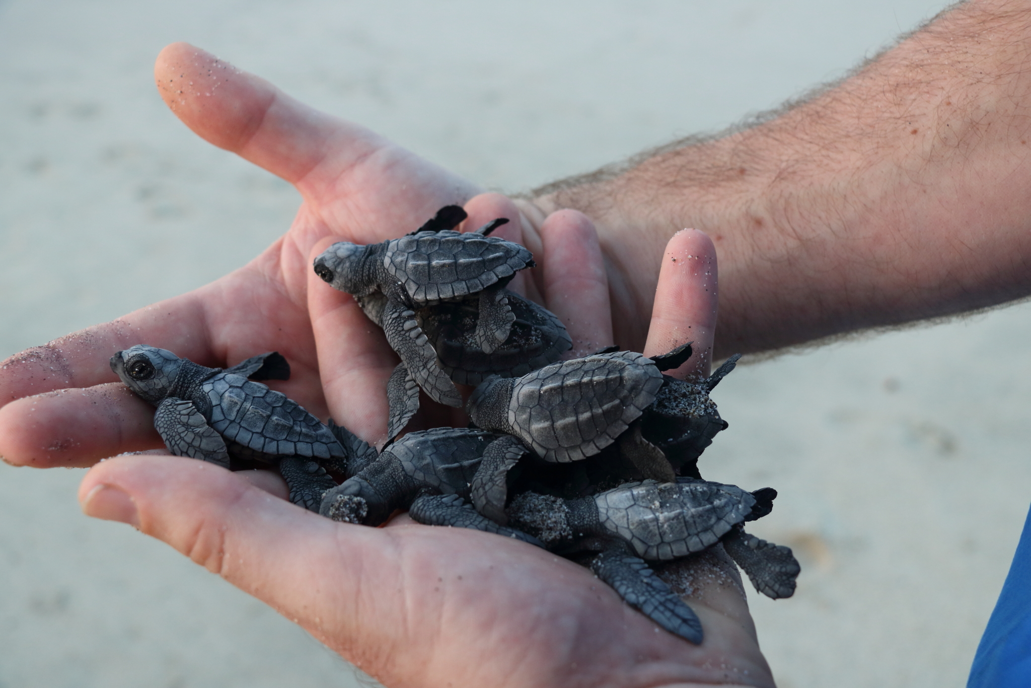 As we ferried the weaker ones across the beach, more and more and more were emerging out of the sand around us. It was such a joy to witness so many cute little faces pushing and shoving each other out the way, heaving themselves out of the sand nests. The sad bit was that at least half of the hatchlings seemed to have used all their energy just to reach the surface. They struggled into the light, flopped onto the sand and never moved an inch. We helped as many as we could, but even when introduced to the ocean, the little weaklings simply didn’t have the energy to battle with the water.